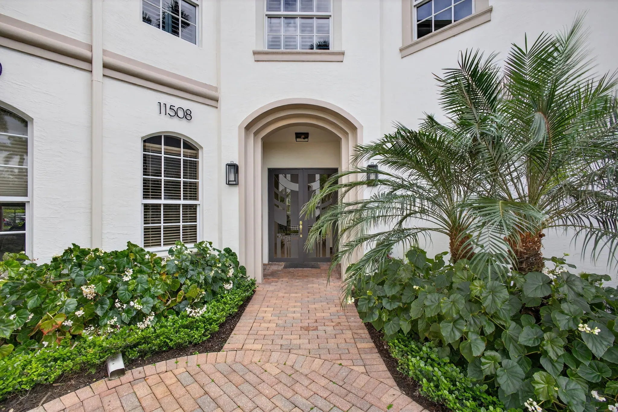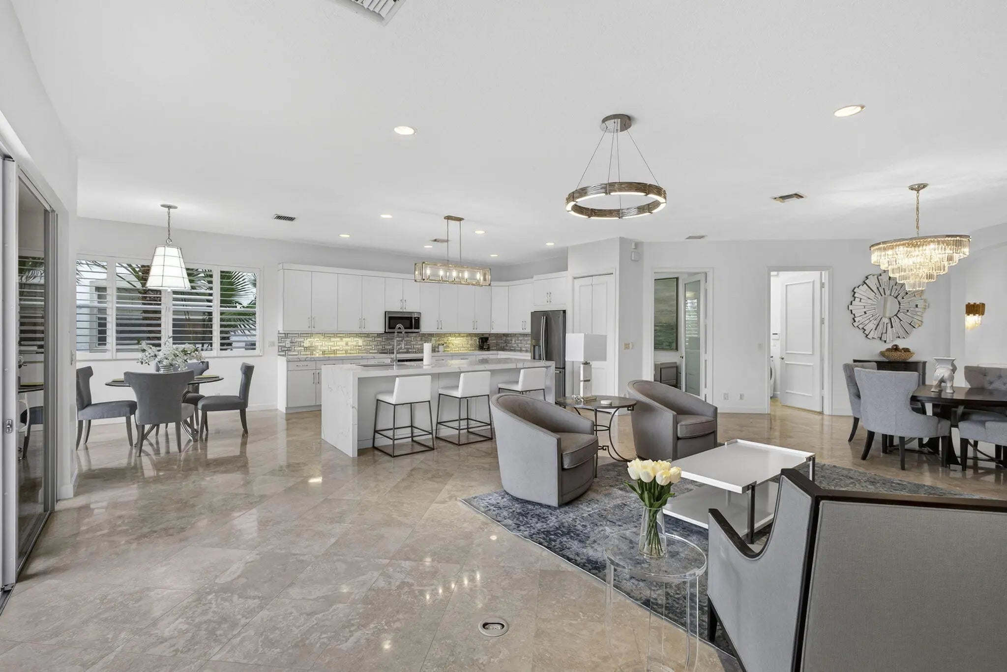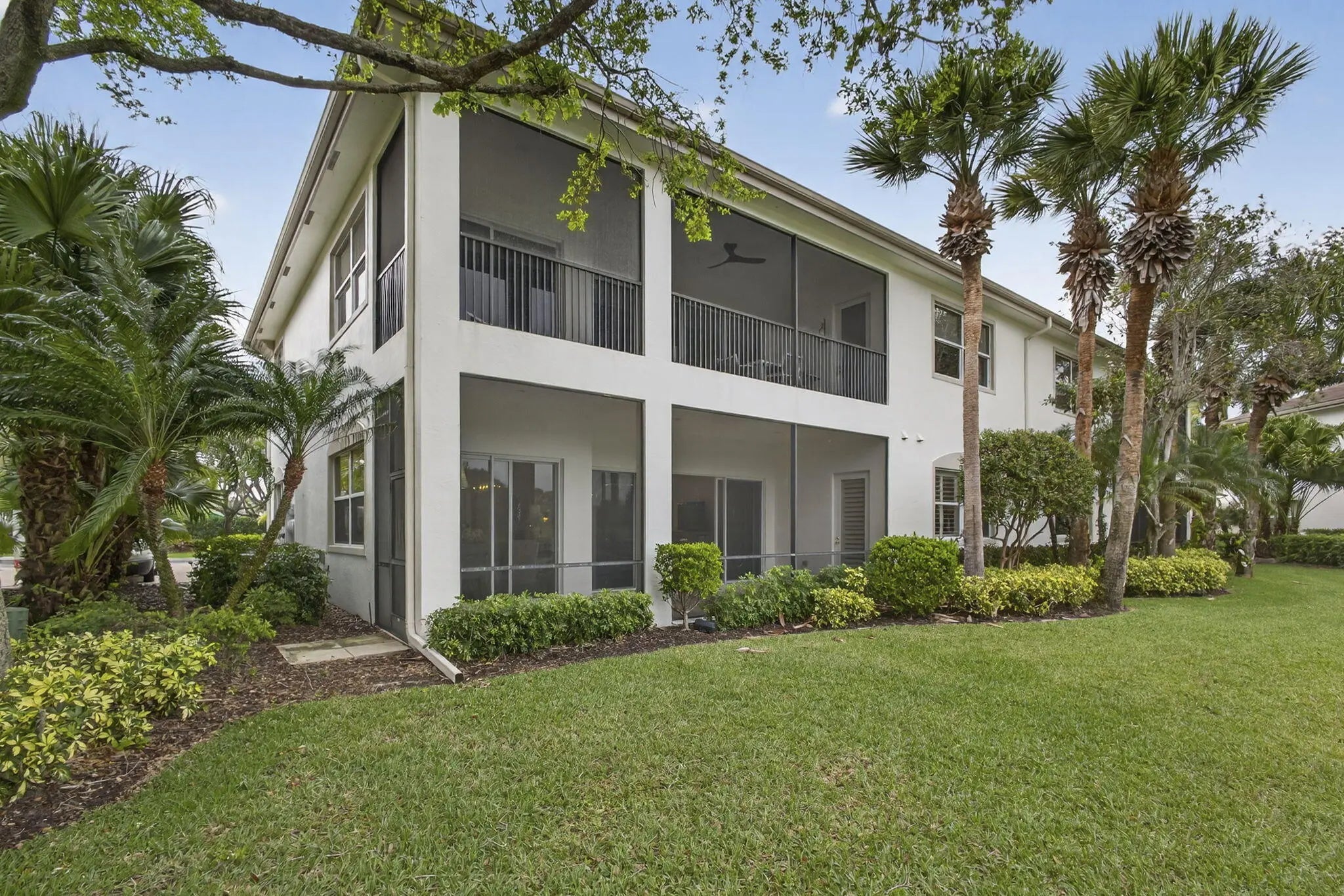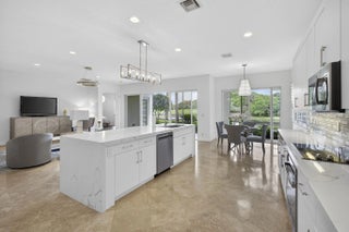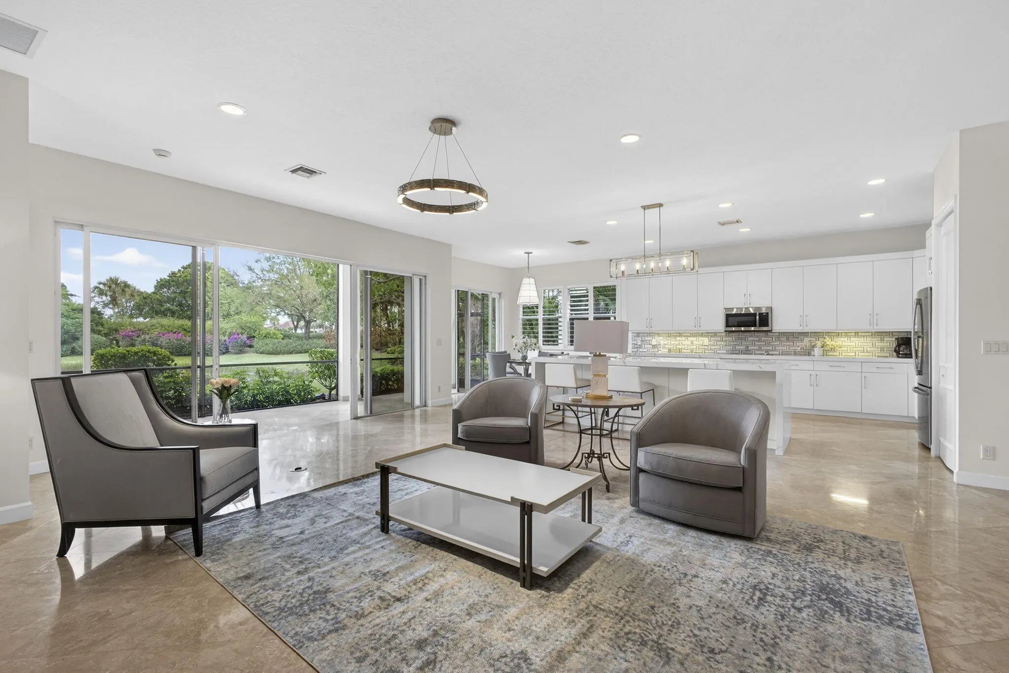 Enjoy spectacular wide lake and golf views of the first hole on the Arthur Hills Sunset Course from this beautifully updated coach home in The Country Club at Mirasol. Perfectly positioned to capture expansive water and fairway vistas, this residence offers a peaceful setting and exceptional outdoor living from its spacious screened patio overlooking the lake and golf course. This bright and spacious two-bedroom, two-bath residence with a private office and two-car garage features a popular great room style floor plan designed for comfortable living and entertaining. Large windows with plantation shutters allow natural light to fill the home while framing the beautiful outdoor scenery. Sports Membership The renovated kitchen is the centerpiece of the home and features new cabinetry, elegant countertops, a custom redesigned island with seating, and a stylish tile backsplash. Contemporary lighting and LED lighting enhance the open living space and add a sophisticated modern touch. The primary suite offers a relaxing retreat with engineered wood flooring and built-in closet systems. The updated primary bath includes dual vanities and a soaking tub. A comfortable guest suite and beautifully updated bath featuring a striking vanity and designer finishes provide privacy for visitors. A separate office/den with engineered wood flooring offers the perfect space for working from home or enjoying a quiet reading room. Added features include full impact windows and doors, plantation shutters throughout, engineered wood flooring in the bedrooms and office, marble flooring in the main living areas, a separate laundry room with cabinetry and utility sink, and a large storage closet in the garage area. Enjoy the expansive screened patio, providing a wonderful setting for outdoor dining or relaxing while taking in the tranquil long lake and golf course views that make this property so special. Villa Vasari is ideally located in close proximity to the club's main amenities and consists of only 32 residences, making it one of Mirasol's most desirable and intimate coach home communities. Sports Membership.