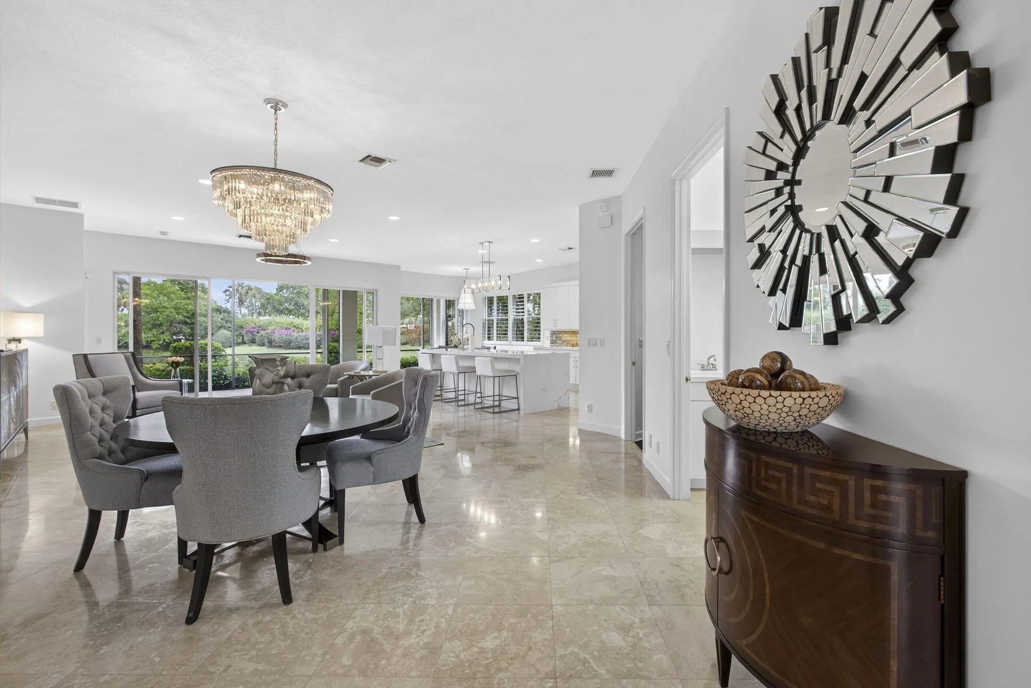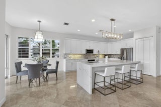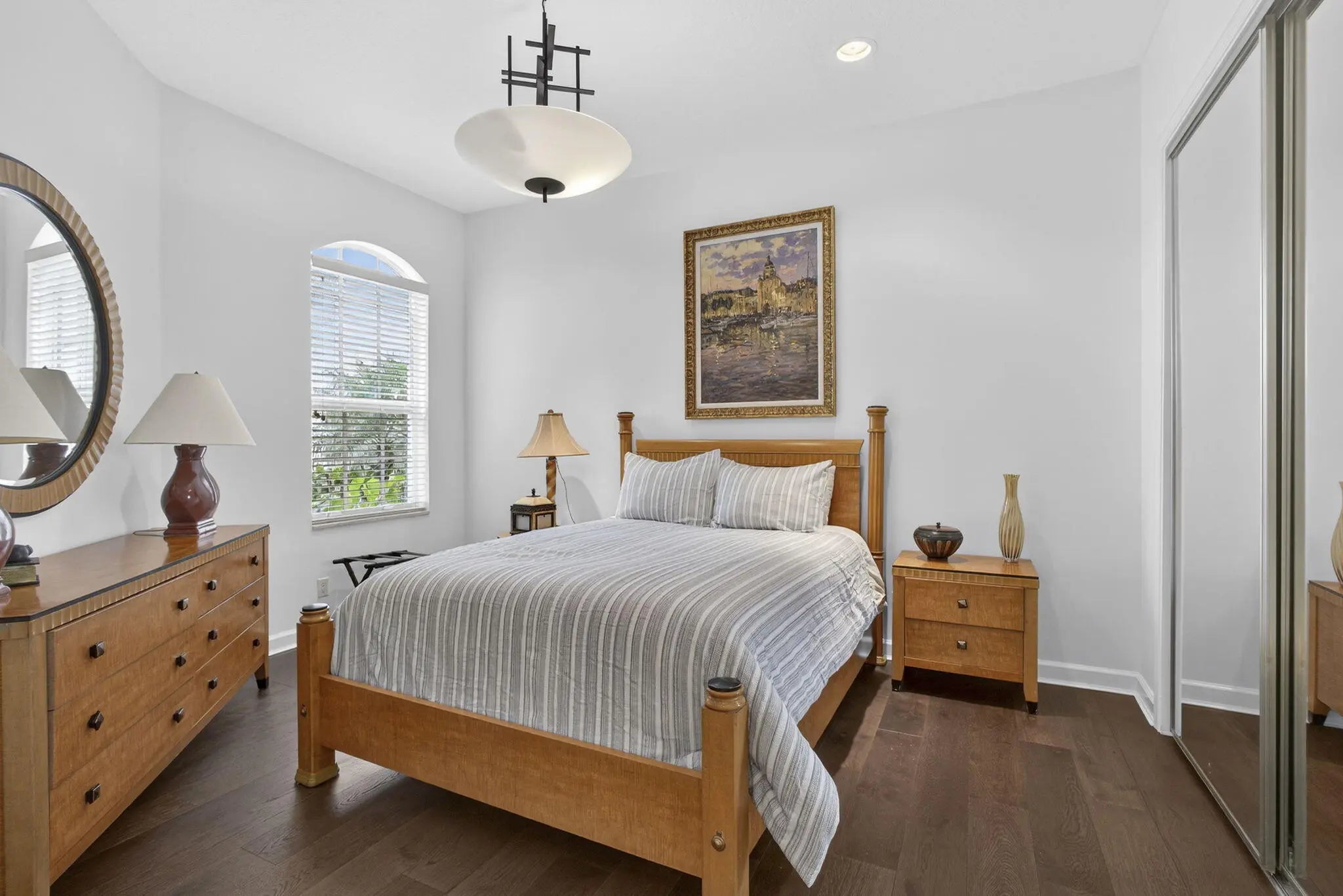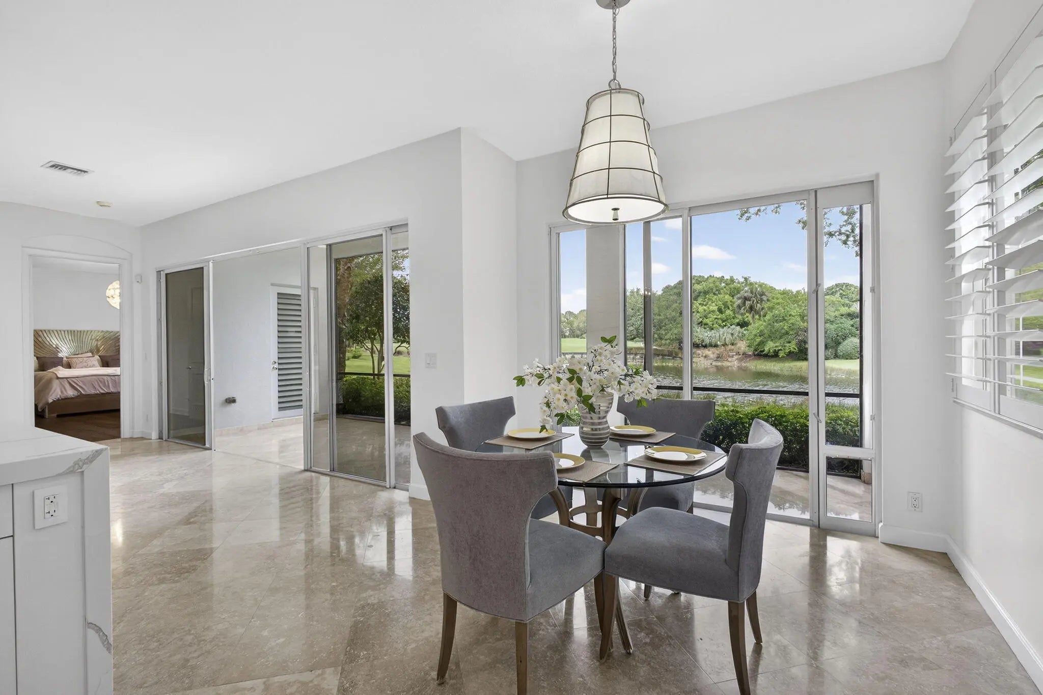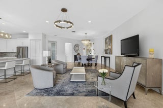 Enjoy spectacular wide lake and golf views of the first hole on the Arthur Hills Sunset Course from this beautifully updated coach home in The Country Club at Mirasol. Perfectly positioned to capture expansive water and fairway vistas, this residence offers a peaceful setting and exceptional outdoor living from its spacious screened patio overlooking the lake and golf course. This bright and spacious two-bedroom, two-bath residence with a private office and two-car garage features a popular great room style floor plan designed for comfortable living and entertaining. Large windows with plantation shutters allow natural light to fill the home while framing the beautiful outdoor scenery. Sports Membership The renovated kitchen is the centerpiece of the home and features new cabinetry, elegant countertops, a custom redesigned island with seating, and a stylish tile backsplash. Contemporary lighting and LED lighting enhance the open living space and add a sophisticated modern touch. The primary suite offers a relaxing retreat with engineered wood flooring and built-in closet systems. The updated primary bath includes dual vanities and a soaking tub. A comfortable guest suite and beautifully updated bath featuring a striking vanity and designer finishes provide privacy for visitors. A separate office/den with engineered wood flooring offers the perfect space for working from home or enjoying a quiet reading room. Added features include full impact windows and doors, plantation shutters throughout, engineered wood flooring in the bedrooms and office, marble flooring in the main living areas, a separate laundry room with cabinetry and utility sink, and a large storage closet in the garage area. Enjoy the expansive screened patio, providing a wonderful setting for outdoor dining or relaxing while taking in the tranquil long lake and golf course views that make this property so special. Villa Vasari is ideally located in close proximity to the club's main amenities and consists of only 32 residences, making it one of Mirasol's most desirable and intimate coach home communities. Sports Membership.