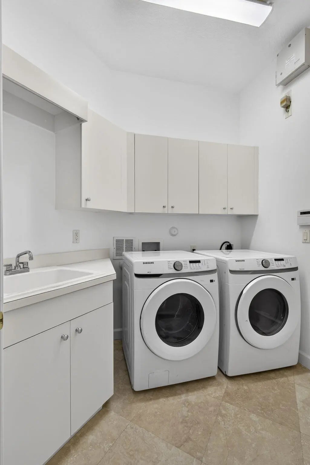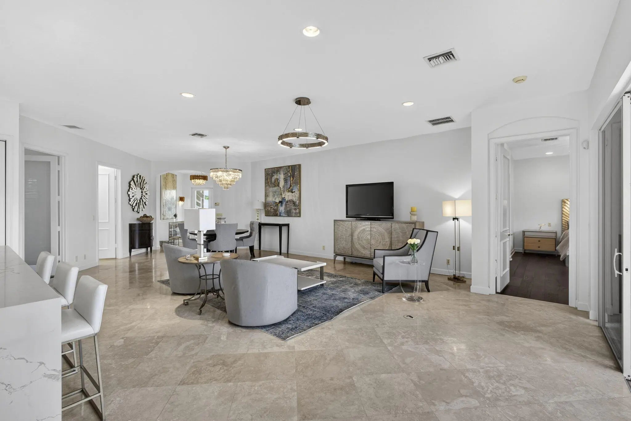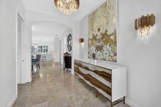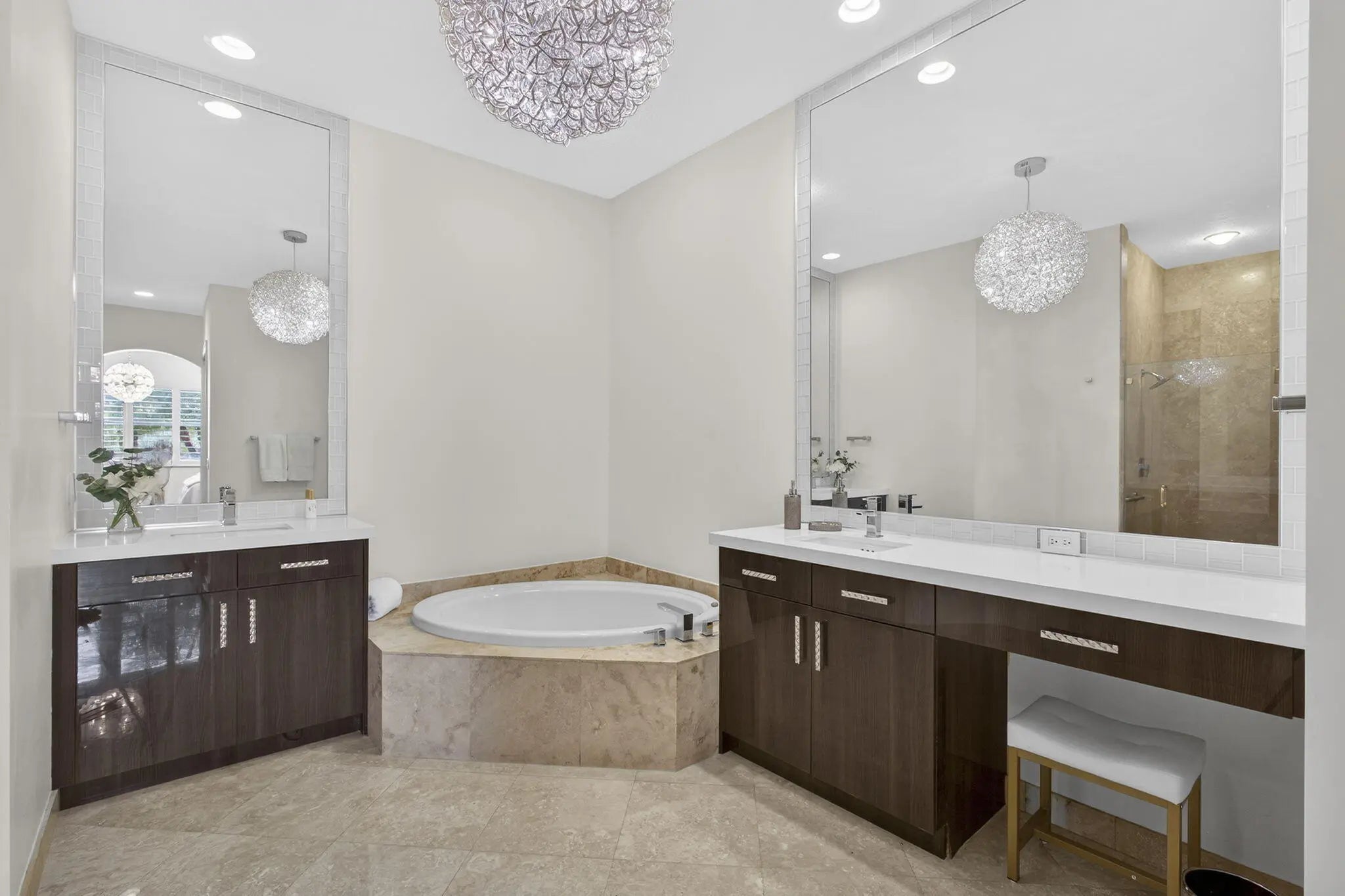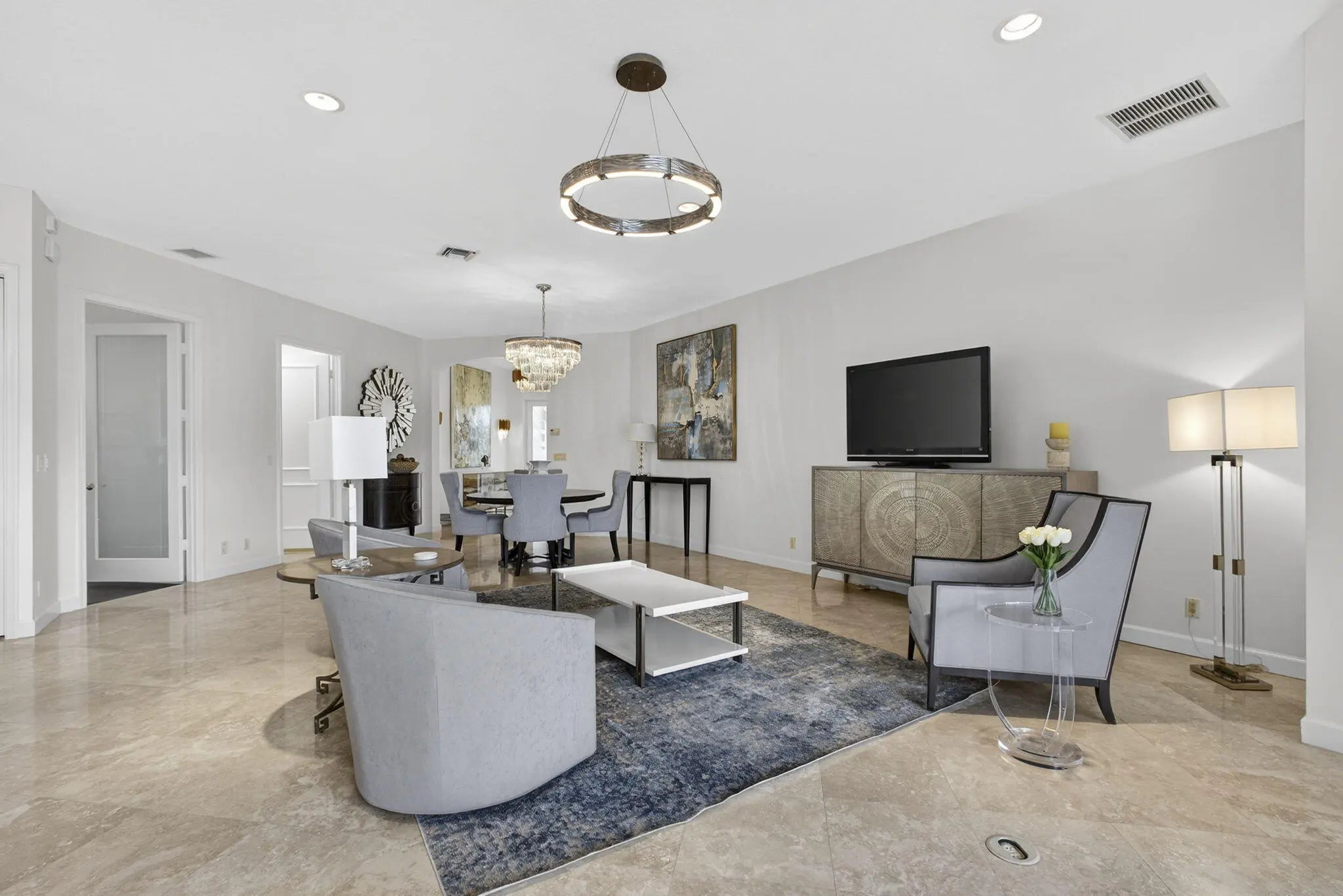 Enjoy spectacular wide lake and golf views of the first hole on the Arthur Hills Sunset Course from this beautifully updated coach home in The Country Club at Mirasol. Perfectly positioned to capture expansive water and fairway vistas, this residence offers a peaceful setting and exceptional outdoor living from its spacious screened patio overlooking the lake and golf course. This bright and spacious two-bedroom, two-bath residence with a private office and two-car garage features a popular great room style floor plan designed for comfortable living and entertaining. Large windows with plantation shutters allow natural light to fill the home while framing the beautiful outdoor scenery. Sports Membership The renovated kitchen is the centerpiece of the home and features new cabinetry, elegant countertops, a custom redesigned island with seating, and a stylish tile backsplash. Contemporary lighting and LED lighting enhance the open living space and add a sophisticated modern touch. The primary suite offers a relaxing retreat with engineered wood flooring and built-in closet systems. The updated primary bath includes dual vanities and a soaking tub. A comfortable guest suite and beautifully updated bath featuring a striking vanity and designer finishes provide privacy for visitors. A separate office/den with engineered wood flooring offers the perfect space for working from home or enjoying a quiet reading room. Added features include full impact windows and doors, plantation shutters throughout, engineered wood flooring in the bedrooms and office, marble flooring in the main living areas, a separate laundry room with cabinetry and utility sink, and a large storage closet in the garage area. Enjoy the expansive screened patio, providing a wonderful setting for outdoor dining or relaxing while taking in the tranquil long lake and golf course views that make this property so special. Villa Vasari is ideally located in close proximity to the club's main amenities and consists of only 32 residences, making it one of Mirasol's most desirable and intimate coach home communities. Sports Membership.