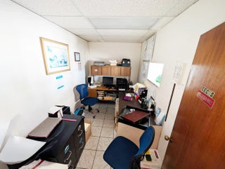 This professional medical suite at 734 Belvedere Road offers a versatile layout ideal for a community-based clinic or private practice. The interior features a dedicated reception and administrative area, multiple examination rooms equipped with essential medical fixtures, and a private executive office. The facility is designed for high-volume patient care, featuring durable tile flooring throughout and ample wall space currently utilized for professional credentials and certifications. The property includes specialized clinical spaces such as a laboratory or triage room with an integrated sink and storage, as well as a large, ADA-accessible restroom. Additional square footage is dedicated to extensive on-site storage, including a "Storage/Private Room" currently used for medical supplies and equipment. The layout is functional and efficient, providing a clear separation between public-facing areas and private staff or examination zones. Centrally located in West Palm Beach, this commercial space provides high visibility and ease of access for local residents. The storefront entrance features classic French-style glass doors with a secure lockbox system, while the interior is characterized by traditional finishes and drop-ceiling lighting. This location represents a turnkey opportunity for a practitioner looking to establish or expand their presence in a well-trafficked medical corridor.