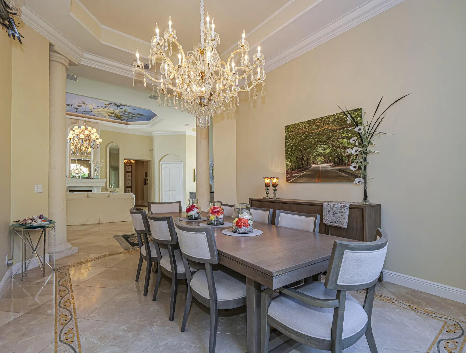Built-in Features, Central Vacuum, Entrance Foyer, Elevator, High Ceilings, Kitchen Island, Pantry, Vaulted Ceiling(s), Wet Bar, Walk-In Closet(s), Bedroom Layout - Split, Custom Mirrors, Roman Tub, Upstairs Living Area, Cabana Bath