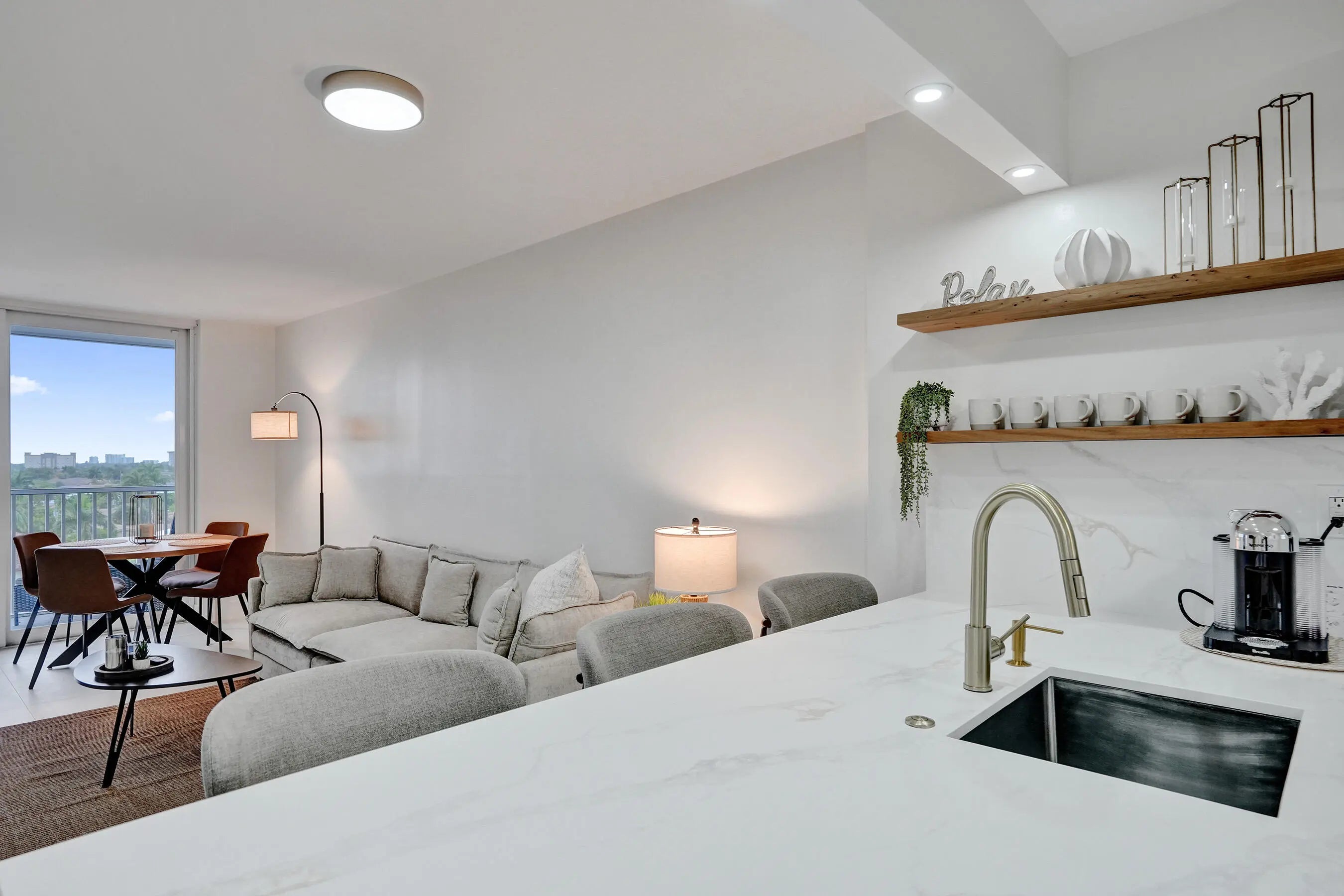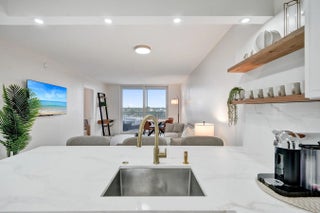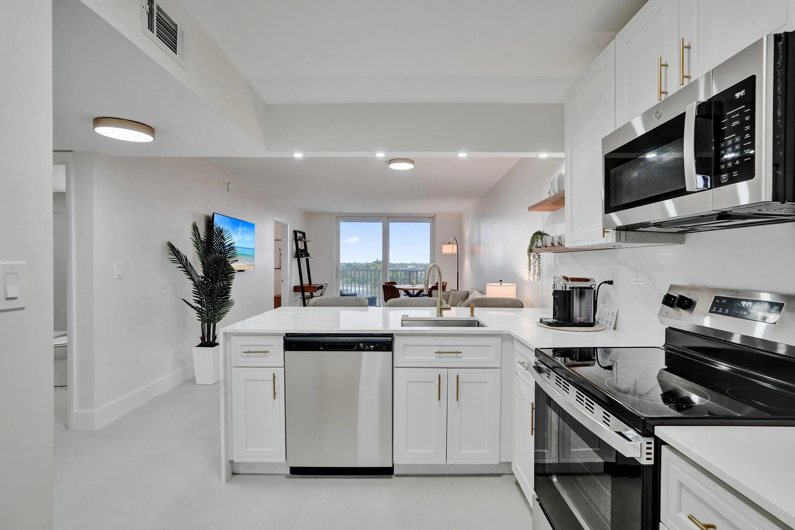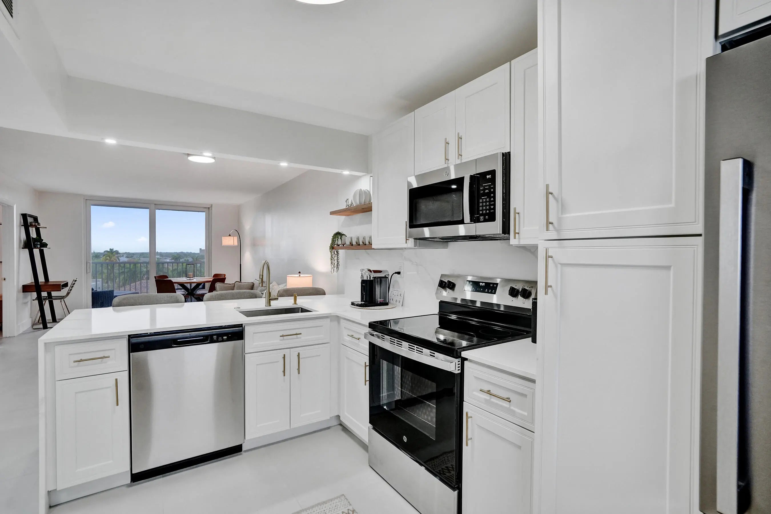 Stunning, fully updated 2BR/2BA condo offering ocean, city, and Spanish River waterway views from both east & west exposures. Next door to the New Ritz Carlton. This bright, beautifully furnished unit features ceramic tile throughout, an open kitchen with stainless steel appliances, white cabinetry, and a quartz waterfall island. Spacious primary suite with water views, elegant bath, & walk-in closet. Generous 2nd bedroom also includes a walk in closet. Impact windows and sliding doors, newer A/C, & a private balcony to enjoy incredible views. Private beach access with pavilion, grills, and picnic area just across the street. Secure lobby, resort style pool, community room, pet friendly building, and extra storage. Prime location near dining, shopping, pier, golf, and pickleball.