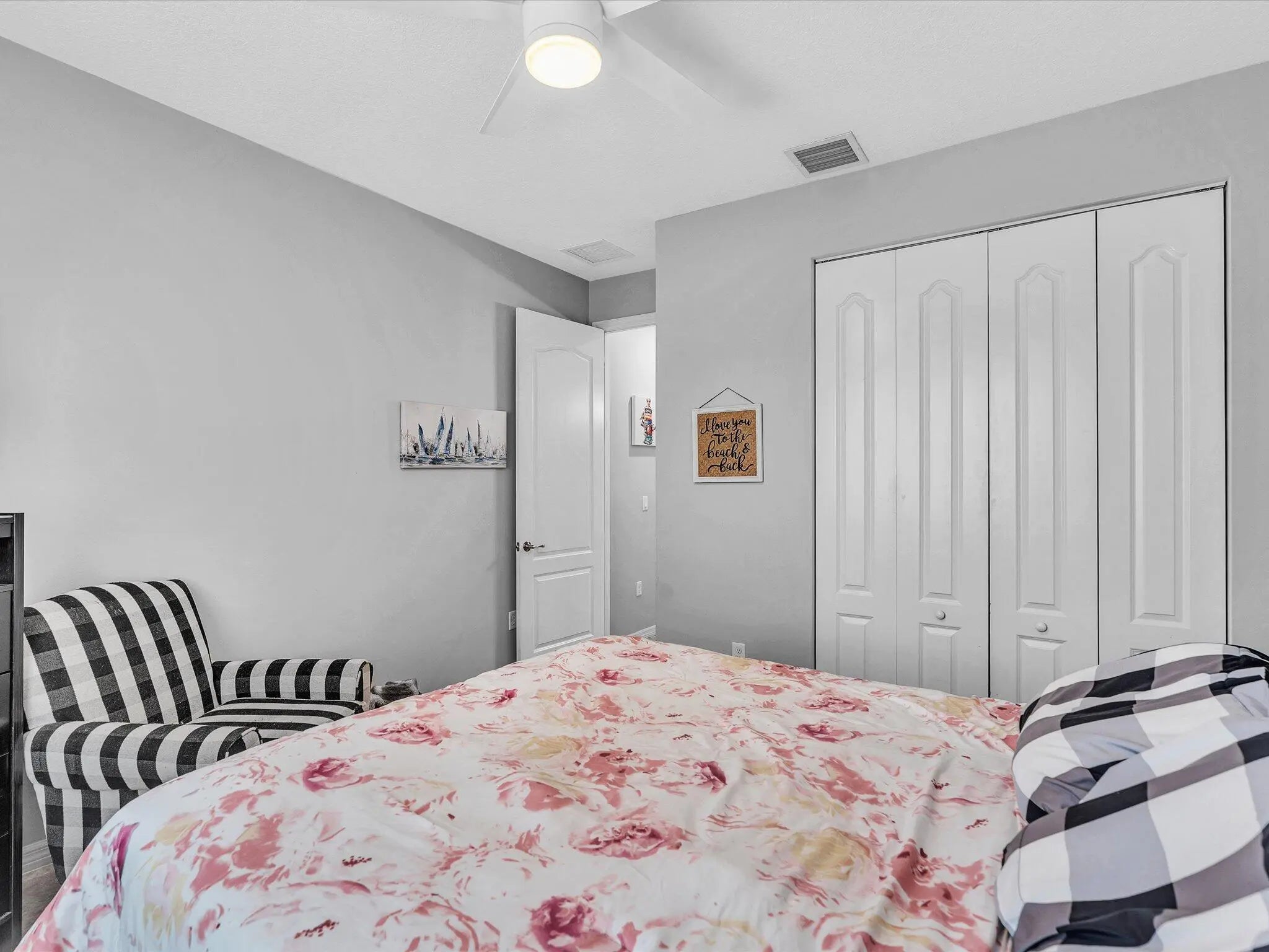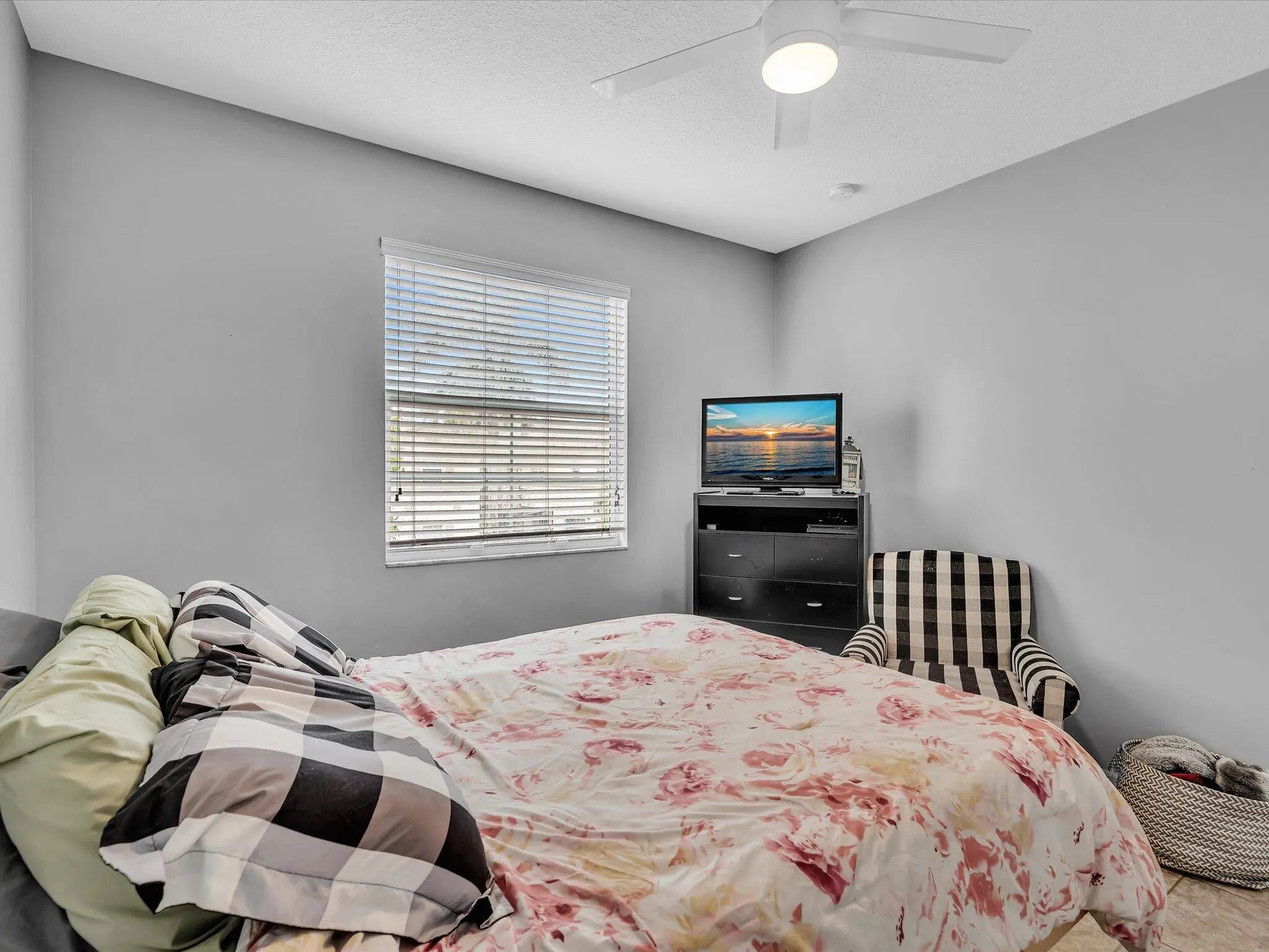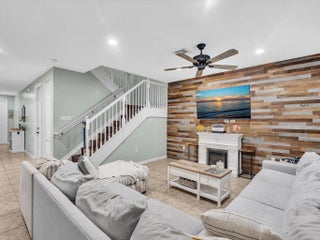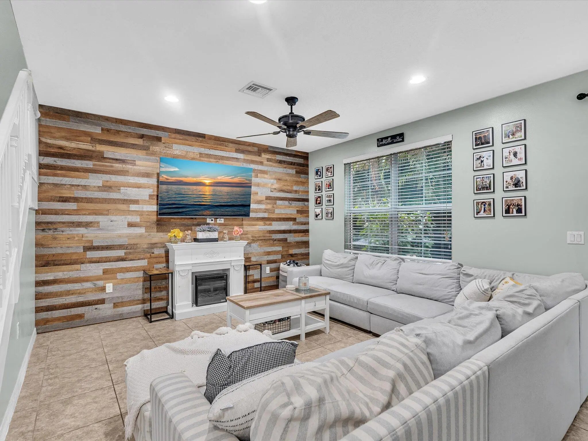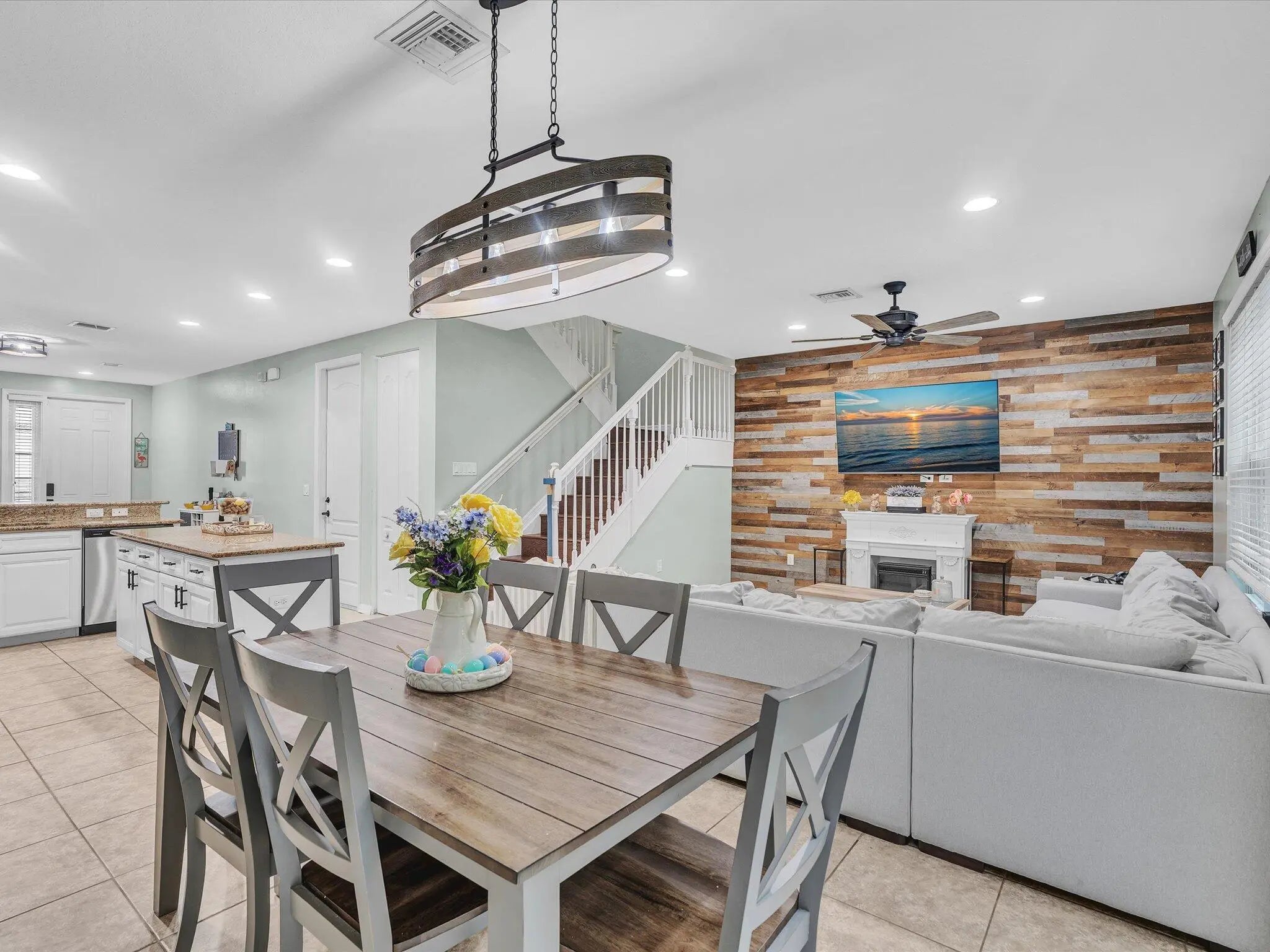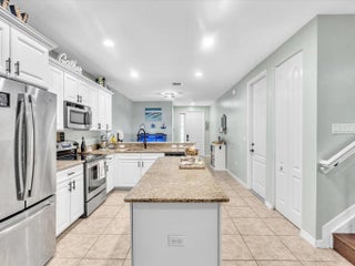 Beautifully updated 3-bedroom, 2.5-bath townhome with garage, offering modern upgrades throughout. This move-in ready home features impact windows and doors, tile flooring throughout, and an open-concept kitchen with island, 42" cabinetry, granite countertops, new French door refrigerator, touch less faucet, and a spacious walk-in pantry. The large primary suite includes a generous walk-in closet and a well-appointed bath with dual vanities, soaking tub, and separate shower. Upstairs laundry room includes new custom barn doors for added style and functionality. Enjoy a private fenced backyard with a newly installed deck—perfect for entertaining. The community offers a gated mail area, security cameras, and recently updated exterior features including fresh paint and new gutters. LOW HOA Additional upgrades include updated light fixtures and ceiling fans, modern door hardware, fresh interior paint, and a custom reclaimed wood accent wall with integrated electrical for a floating TV.