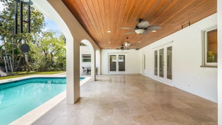 Plantation Golf Estates ranch with tranquil lagoon views and room for your boat! Lots of bright open space includes large kitchen, family room, formal dining all looking out to the huge back yard, pool & travertine deck. Massive 50' covered patio with wood ceiling brings comfortable living outdoors. Master quarters boasts an enormous closet with built-ins. Master bath features additional walk-in closet, separate tub & shower, door to pool. Guest bath is cabana too! Backyard complemented by natural landscape & lagoon packed with life including manatee, otters, tarpon, more! Concrete strip & gate for boat/RV & 50 Amp power. Generator connection, shed, lagoon-fed irrigation, outdoor shower. Near Golf, trails, parks, Whole Foods, Trader Joe's, dining, beaches, marinas, airport, highways