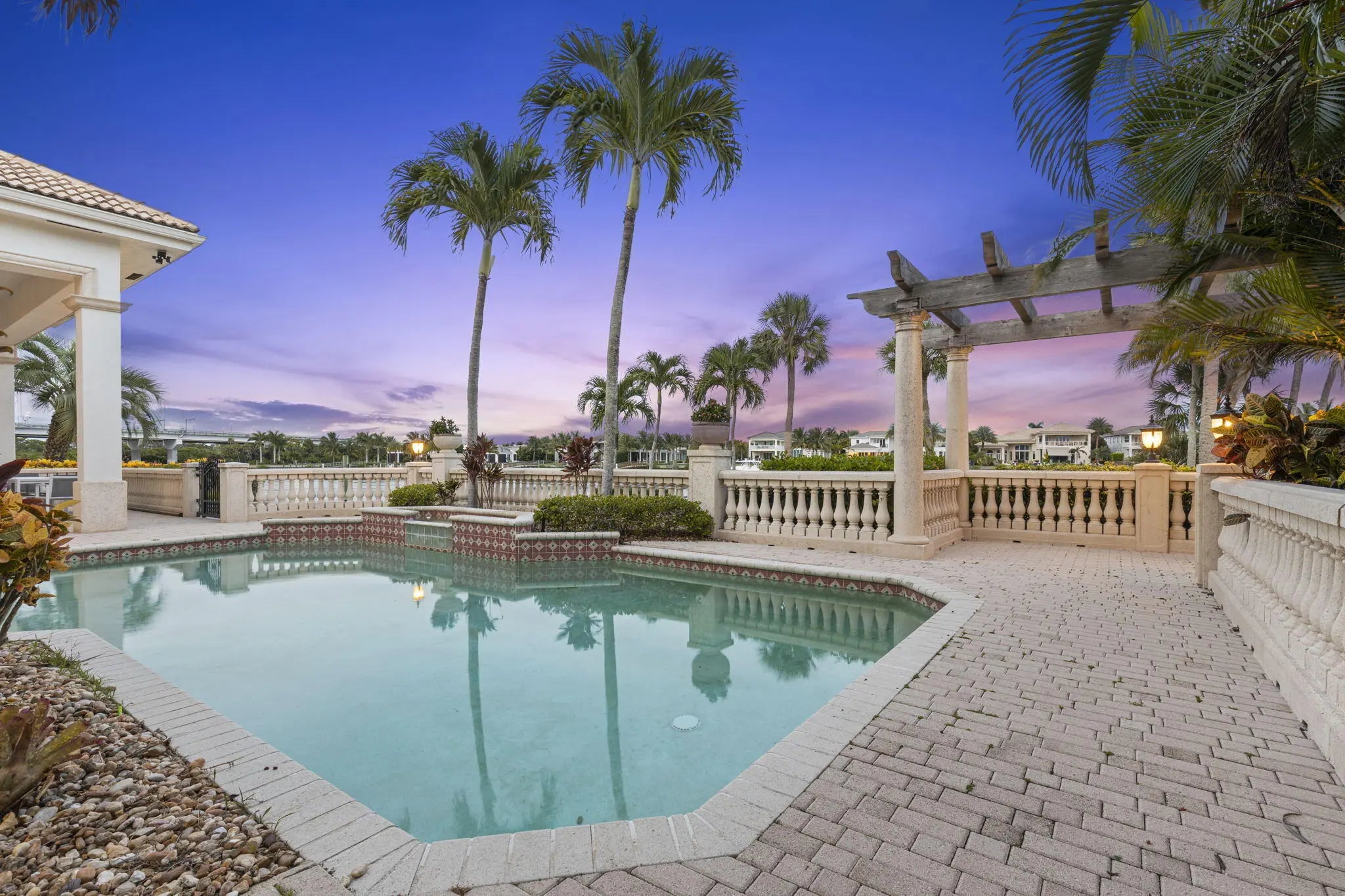 Exceptional waterfront property in a gated Palm Beach Gardens community with 230 feet of direct Intracoastal frontage and wide water views. This 3BR/3.5BA home offers approximately 3,300 SF of bright living space, spacious interiors, and a private pool overlooking the water. Existing dockage accommodates up to a 50-foot vessel, with a permit in process for a 72-foot dock with lifts. Proposed plans allow for expansion to accommodate up to a 100-foot vessel, offering rare long-term dockage potential. A unique opportunity to own substantial frontage with premier boating access in one of Palm Beach Gardens' most desirable locations. All information pertaining to the property is deemed reliable, but not guaranteed. Information to be verified by the Buyer. Be advised that cameras may exist recording audio and video inside/outside the property, such as ring doorbells. Photos are digitally enhanced and could be altered, please verify.