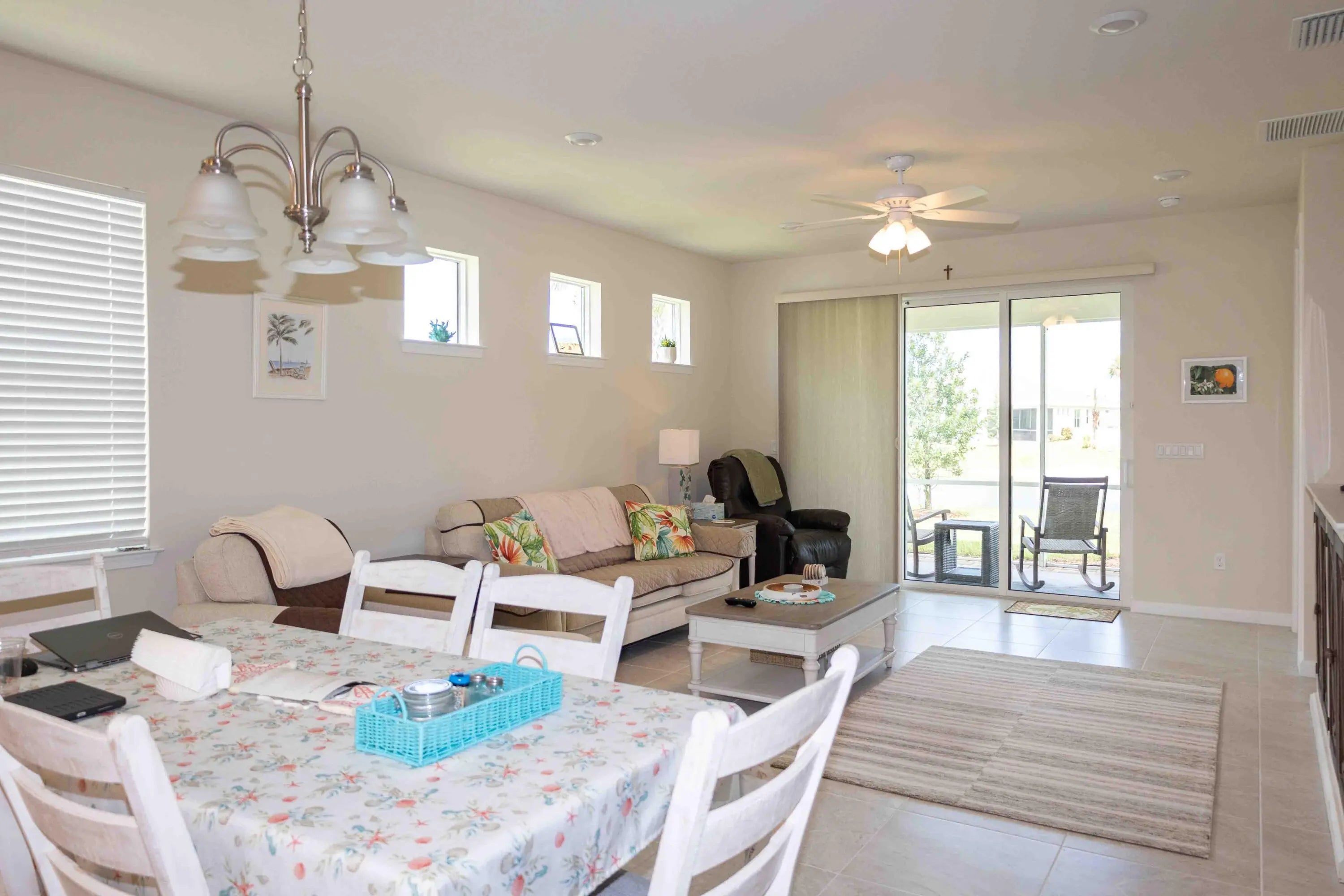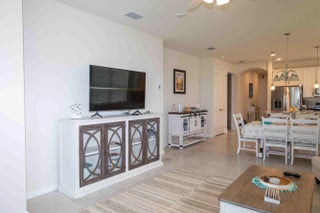 Furnished 2-bedroom, 2-bath villa with den in Del Webb at Tradition. The den is currently used as an additional sleeping area. This home features a split-bedroom floor plan, offering privacy for guests and a spacious primary suite. The open-concept layout includes a kitchen with stainless steel appliances, gas stove, and self-closing cabinetry, flowing into the main living area. Furnishings are included. Utilities such as water, gas, and electric are included per owner/lease terms. A golf cart is also available for tenant use. Located in a HOPA-compliant 55+ community with access to a clubhouse, pool, fitness center, tennis, pickleball, and organized activities. Conveniently located near shopping, dining, and medical facilities in the Tradition area. Available for immediate occupancy.
