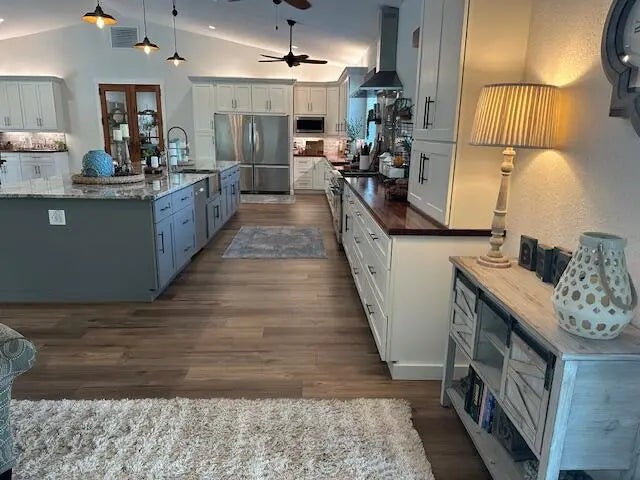 Set on 5 fully fenced and cross-fenced acres in Palm City Farms, this meticulously maintained estate pairs a substantial CBS residence with exceptional agricultural and workshop infrastructure. The main home spans over 3,500 sq ft under air with an effective year built of 2019, constructed with reinforced concrete block, integral poured supports, an expanded foundation footprint and Impact glass windows. Inside, the layout centers around a large great room with vaulted ceilings, anchored by a 15-foot island kitchen, featuring double stainless refrigerators, gas range with double ovens and an open flow designed for daily living and entertaining. The home offers 3 bedrooms and 3 full bathrooms, all updated. The primary suite features a fully renovated ensuite bath with a doorless walk-in shower with dual shower heads and a freestanding soaking tub within a shared tiled enclosure, dual vanities with vessel sinks, custom cabinetry, and LED backlit mirrors, creating a clean, modern spa-like environment. Beyond the residence, the property features a 2,880 sq ft steel shop (48' x 60') with multiple oversized 14-foot bay doors that accommodates RVs, equipment, or business use, with an additional 960 sq ft covered extension. Equestrian and livestock improvements include two barn structures totaling six stalls (4-stall and 2-stall), each equipped with electric, fans, and water, along with multiple paddocks, new fencing, and a livestock working chute with direct trailer access. A large pole barn provides additional covered storage. A separate air-conditioned building (with water) currently used as a "she-shed" overlooks a natural stocked pond with largemouth bass and tilapia, adding a private, scenic element to the property. Additional features include a tankless propane water heater, dual HVAC systems (2019), major well system upgrades completed in 2025, and a fully functional agricultural setup with pasture grasses already established. A rare combination of quality construction, beautiful upgrades, usable acreage, and turnkey infrastructure, maintained to a high standard and ready for immediate use.