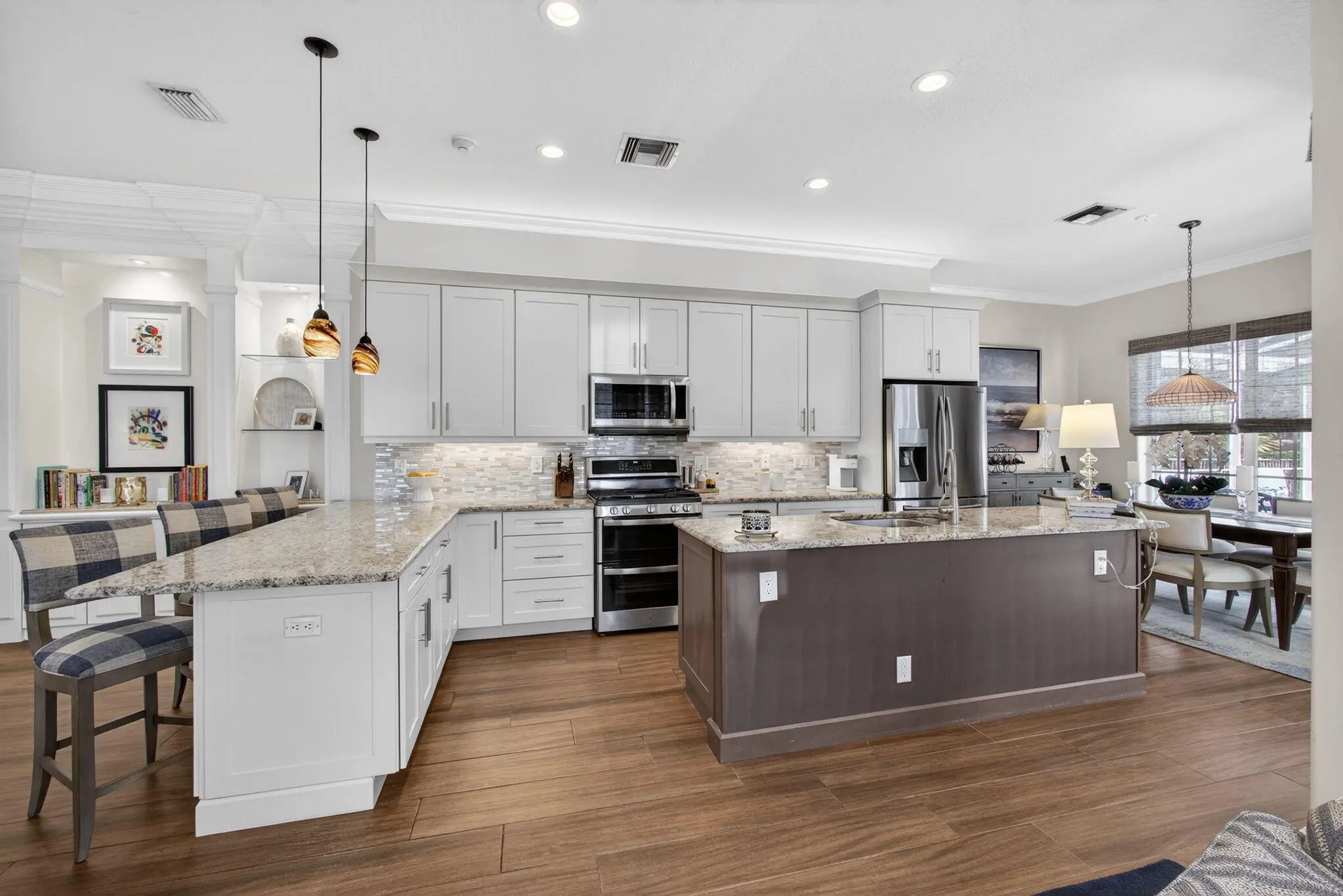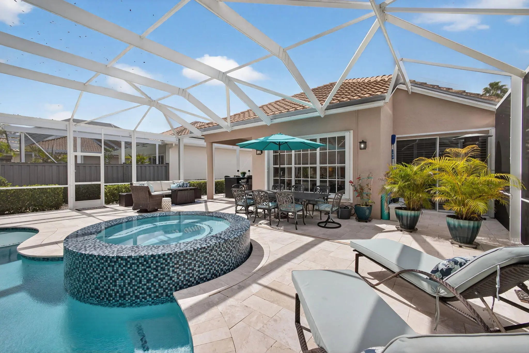Stunning residence located in the prestigious Pinehurst community, thoughtfully reimagined with high-end finishes and exceptional attention to detail throughout. This beautifully renovated home features an open-concept floor plan, elegant porcelain flooring, & a gourmet kitchen. Designed for both comfort and privacy, the home offers two well-appointed guest suites, each with its own ensuite bath. Additional enhancements include a 2020 roof, full accordion hurricane shutters, & a whole-house natural gas generator, providing both convenience & peace of mind. The expansive apprx 2,000-square-foot screened-in lanai serves as a true outdoor retreat, showcasing marble pavers, a resort-style pool with an infinity-edge spa, & a fully equipped outdoor kitchen complete with built-in grill & fridge. With multiple areas designed for entertaining and relaxation, this exceptional outdoor space embodies the best of Florida luxury living. Located within the prestigious PGA National community, residents enjoy a resort-style lifestyle surrounded by lush tropical landscaping, world-class golf, and a vibrant, welcoming atmosphere. The community is home to the renowned Cognizant Classic and offers optional club memberships with access to premier golf, tennis, fitness, and dining amenities. Conveniently situated near the shopping and dining of Palm Beach Gardens and just minutes from beautiful Atlantic beaches, the location provides both luxury and convenience. This home offers an exceptional opportunity to enjoy a relaxed yet refined lifestyle in one of the area's most established and sought-after communities.
