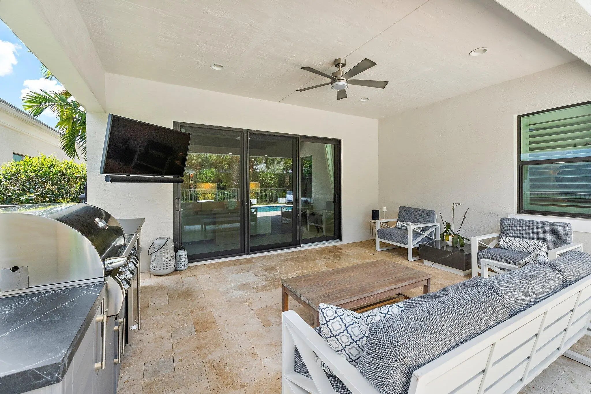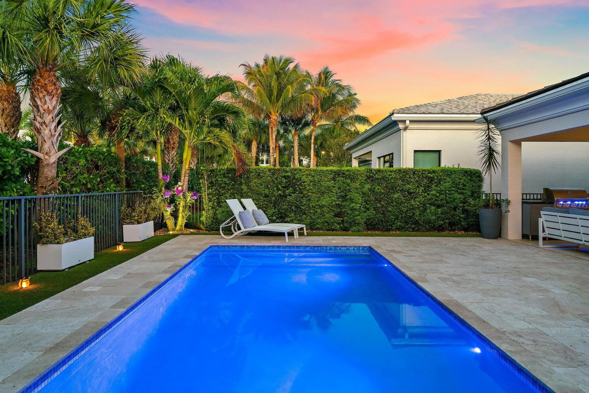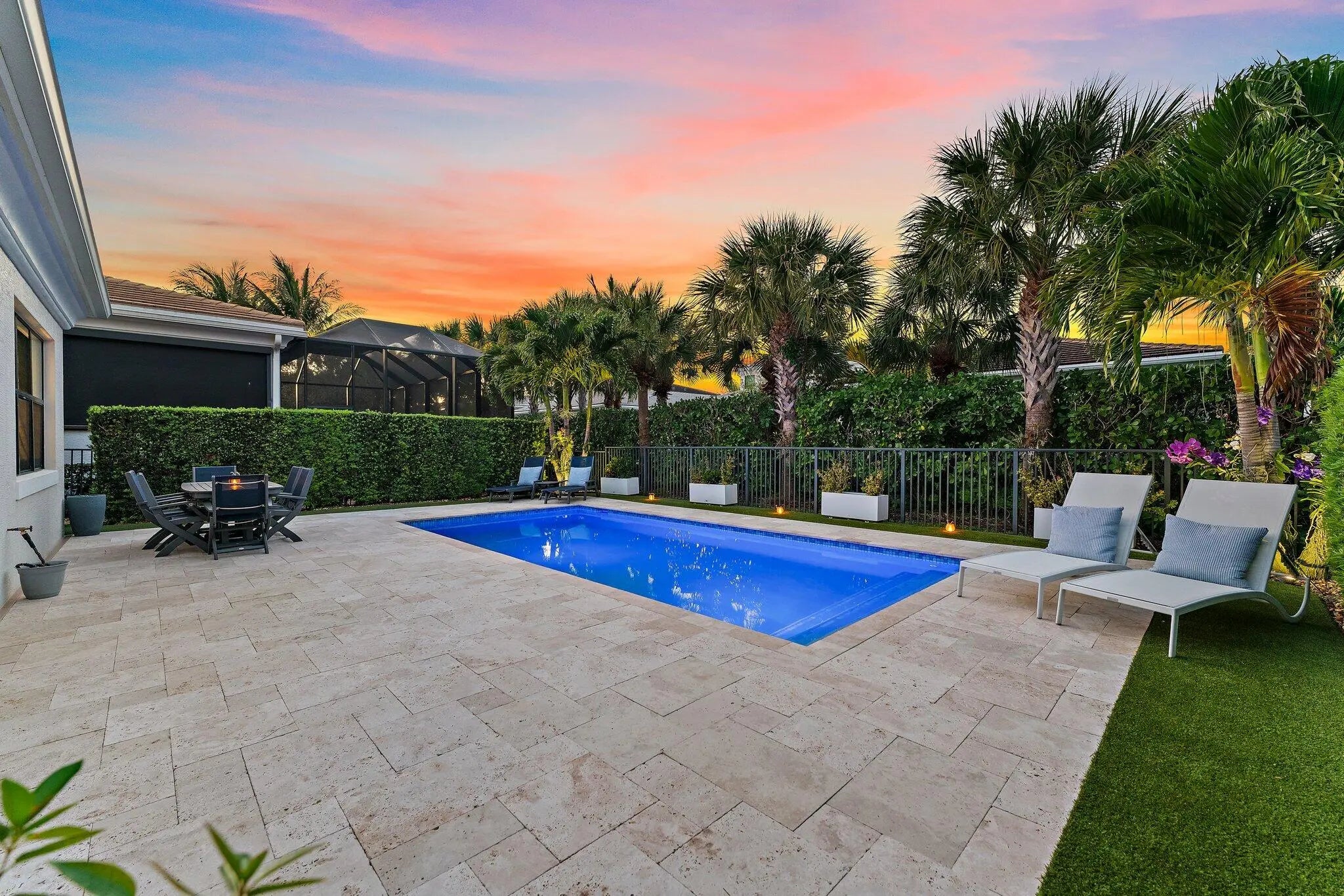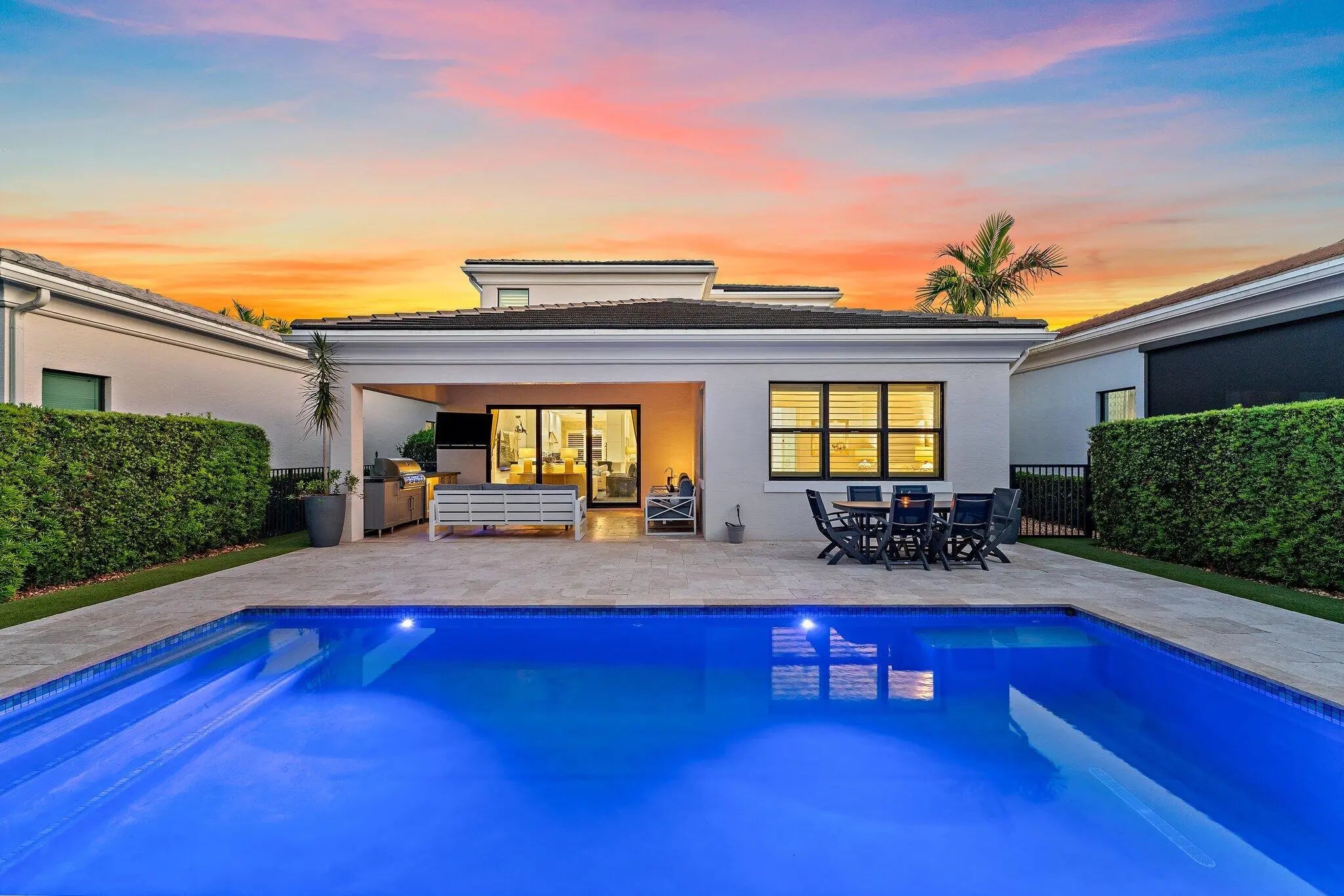 Beautifully appointed residence located in the prestigious 24-hour manned gated community of Artistry. This thoughtfully designed open floor plan features a newly renovated chef's kitchen & bar, a large indoor-outdoor living space and a spacious first-floor primary suite, offering both comfort and privacy. The second level hosts two generously sized bedrooms, each with its own en-suite bath, along with an additional living area, perfect for guests or a private retreat. Step outside to your own resort-style sanctuary, complete with a beautifully landscaped backyard and a heated pool, ideal for year-round enjoyment and entertaining. Just minutes from shopping, dining, world class golf and beautiful beaches. Don't miss your opportunity to own this stunning home.