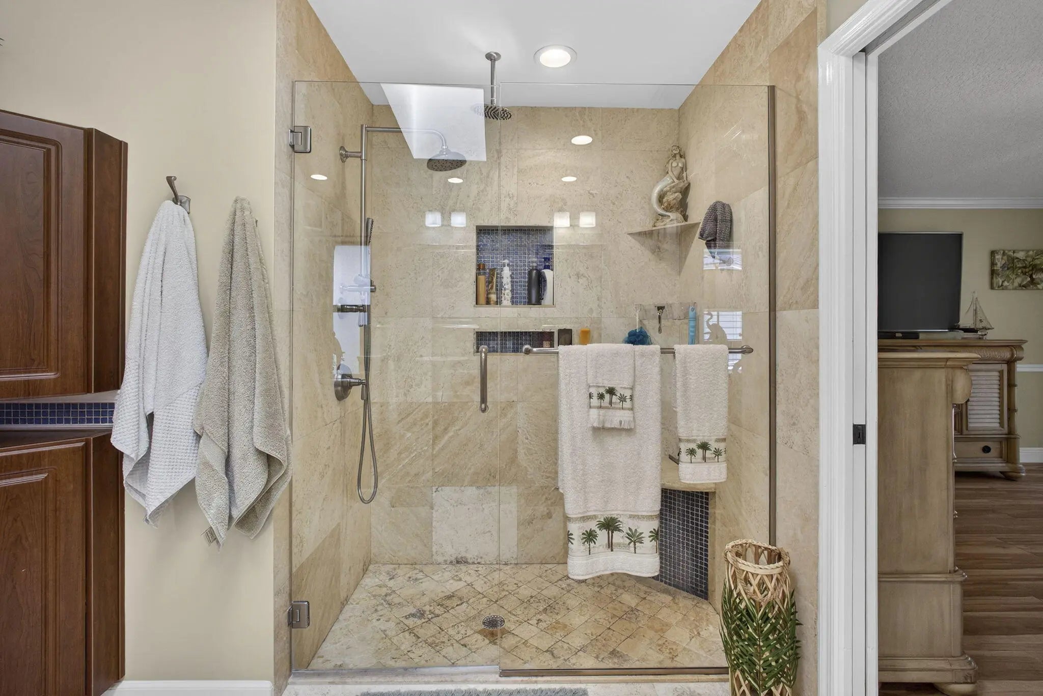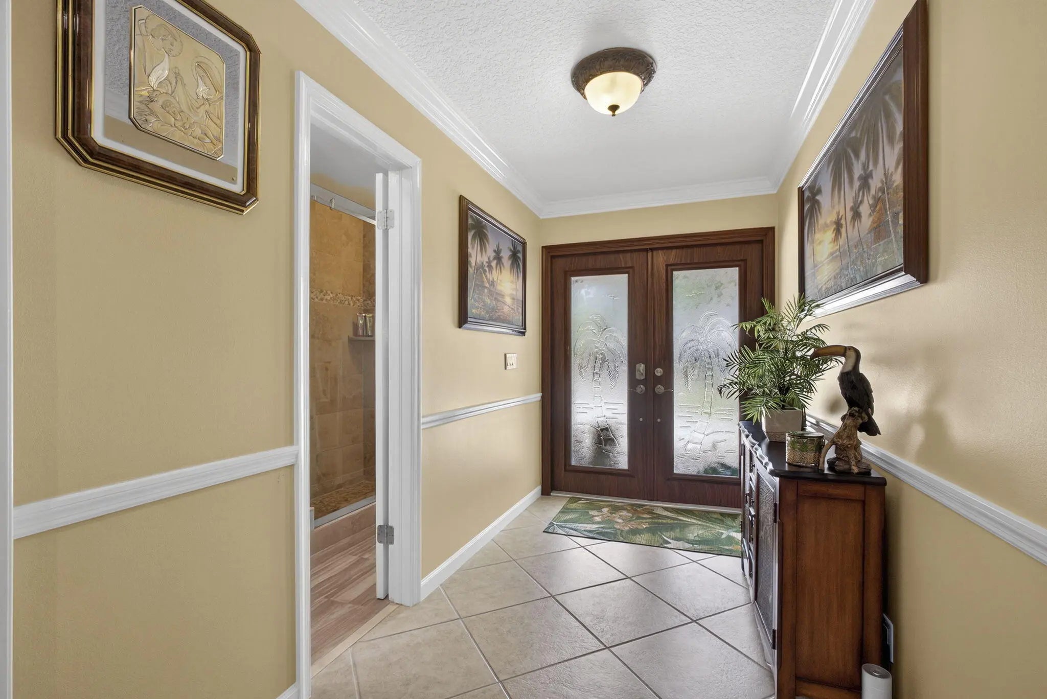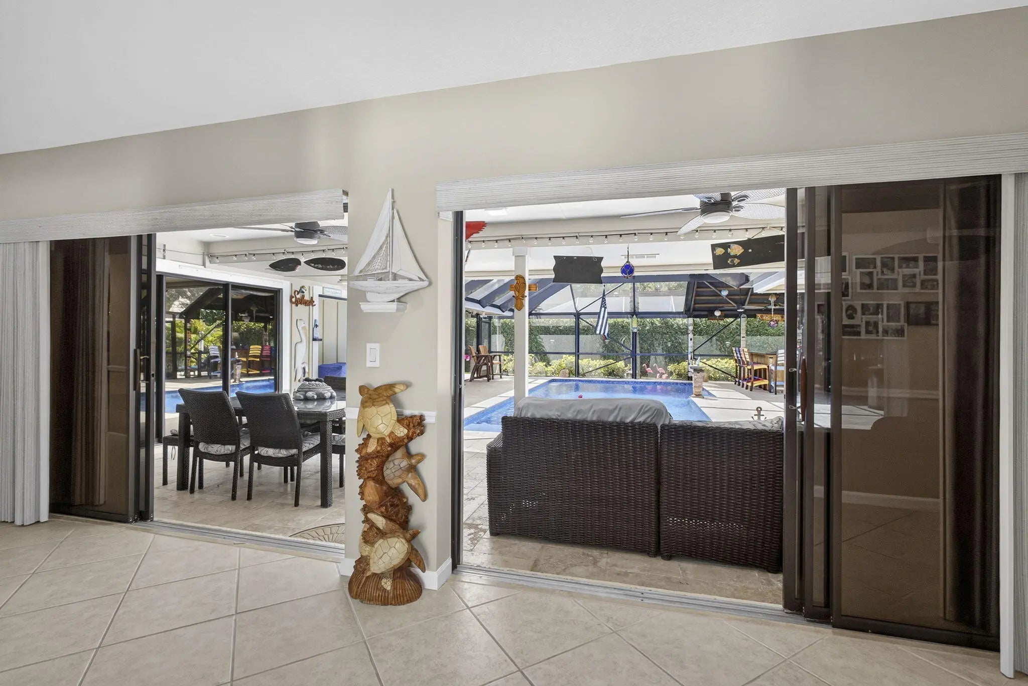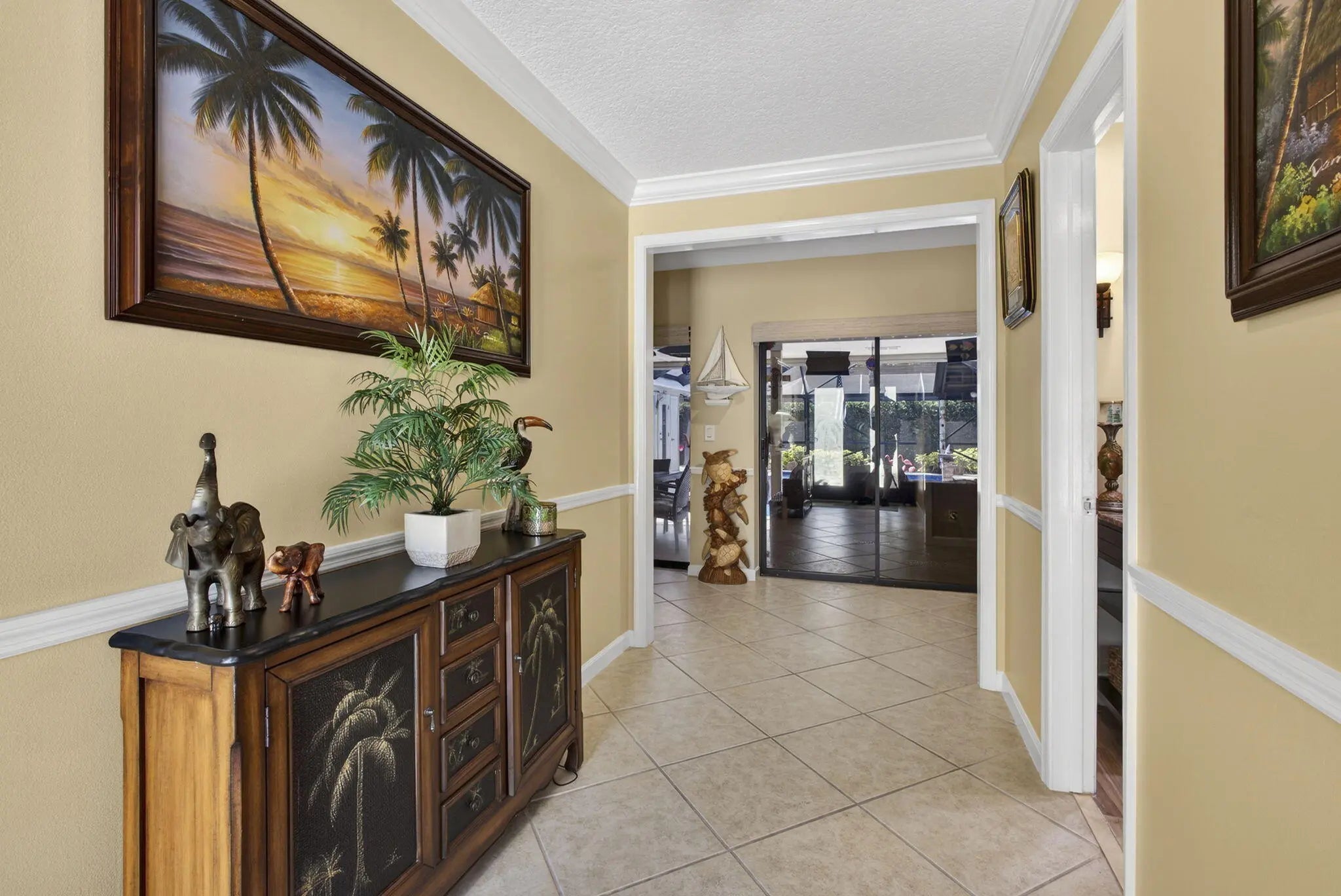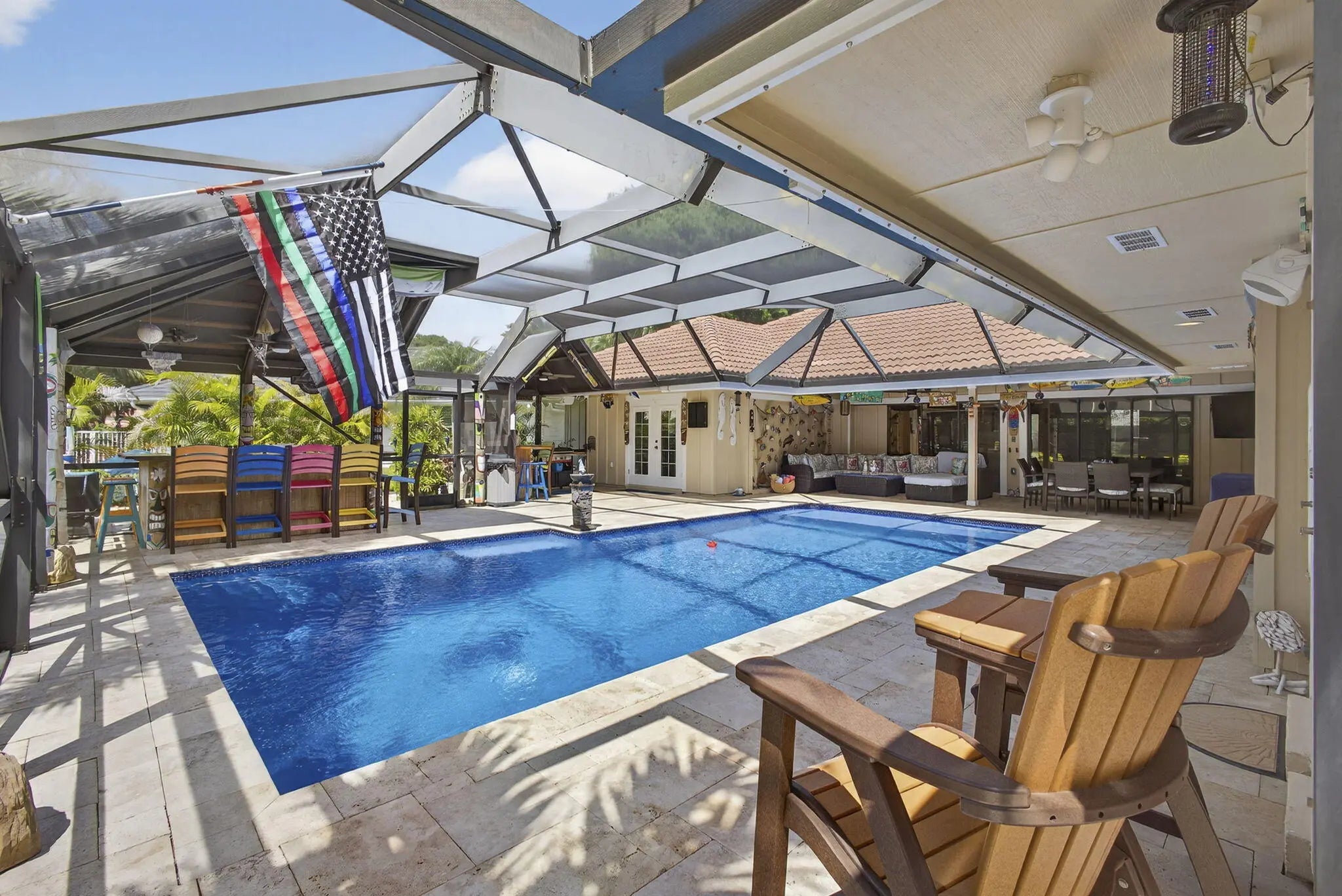 Welcome to 9 Kintyre Road, a beautifully updated custom pool home located in the sought-after Glenngary community within PGA National. This former builder's residence offers 3 br, 2.5 ba, over 2,300 sqft of living space, designed for both comfort and entertaining. Step inside to an open floor plan highlighted by vaulted ceilings, a spacious great room, and a custom-built bar with wine fridge—perfect for hosting. The updated eat-in kitchen features granite and butcher block countertops, maple cabinetry, stainless steel appliances, dual sinks, and a large island with ample storage. Pocket sliding glass doors create seamless indoor-outdoor living, opening to a private, resort-style backyard. Enjoy a screened-in saltwater pool with sun deck, custom tile work, & an expansive patio finished.. with elegant marble pavers—ideal for relaxing or entertaining year-round. Additional highlights include a formal dining room, split-bedroom layout, attached 2-car garage, and a prime location within a gated golf community offering world-class amenities. Built in 1984 and situated on a generous lot, this home combines timeless design with modern upgrades in one of Palm Beach Gardens' most desirable neighborhoods.