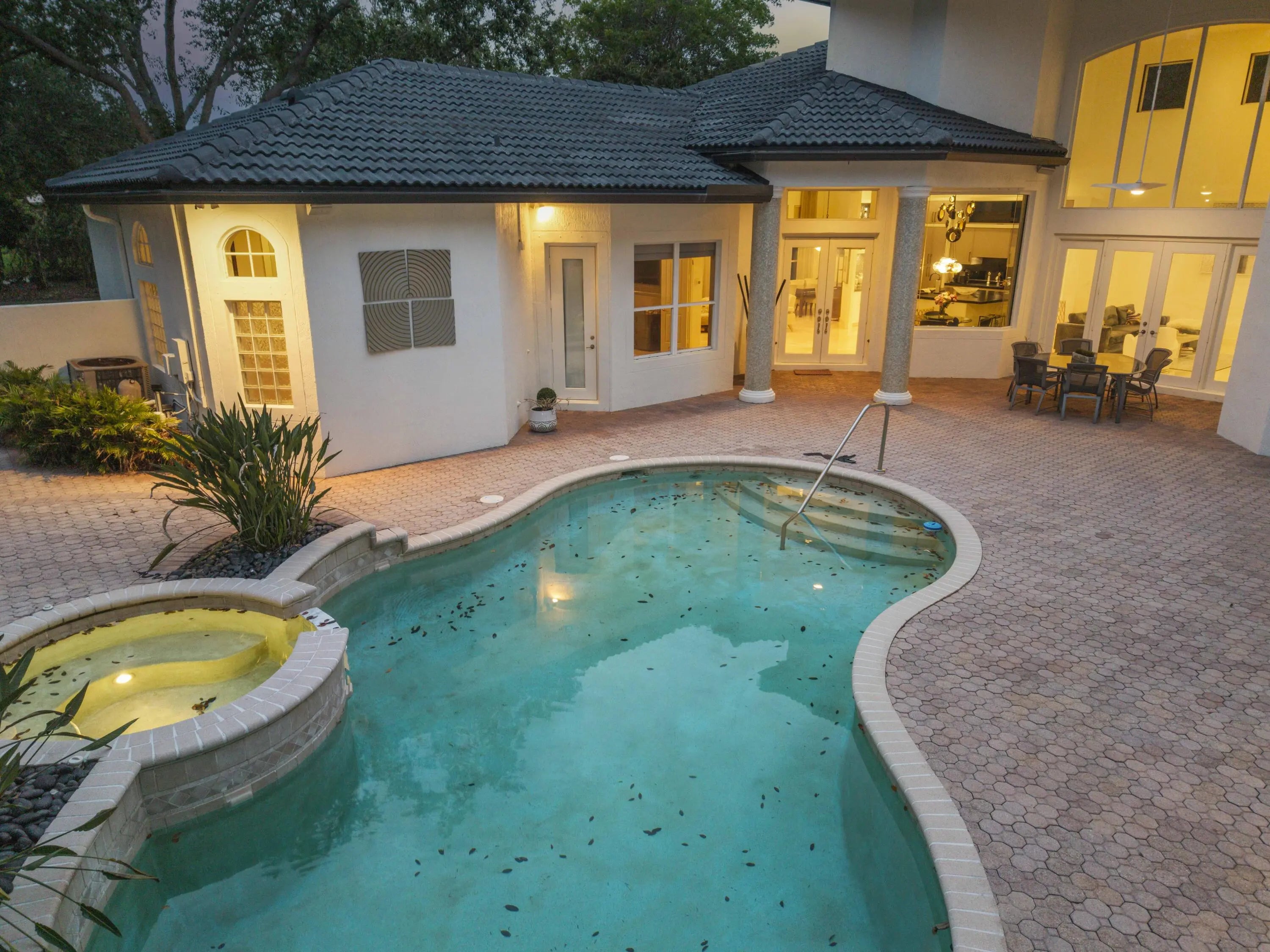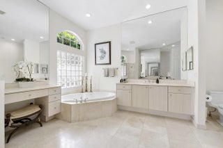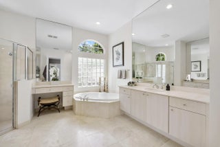 Rare opportunity in the private, gated community of In The Pines—only 17 homes! Stunning courtyard entry with pool/spa and a separate guest house with full bath perfect for office, gym or guests. Circular driveway and double door entry set the tone for this elegant estate. Inside, the home features 6 bedrooms + 4.5 baths with marble floors throughout. The stunning, newly remodeled chef's kitchen impresses with leathered granite counters, large center island, wine refrigerator, soft close cabinetry, double oven, and convection microwave. Brand new guest bath. The primary suite is on the main level, offering a custom walk in closet and spa style bath with jacuzzi tub, separate shower, and separate vanity area. Upstairs includes 4 bedrooms with Jack and Jill bathrooms.
