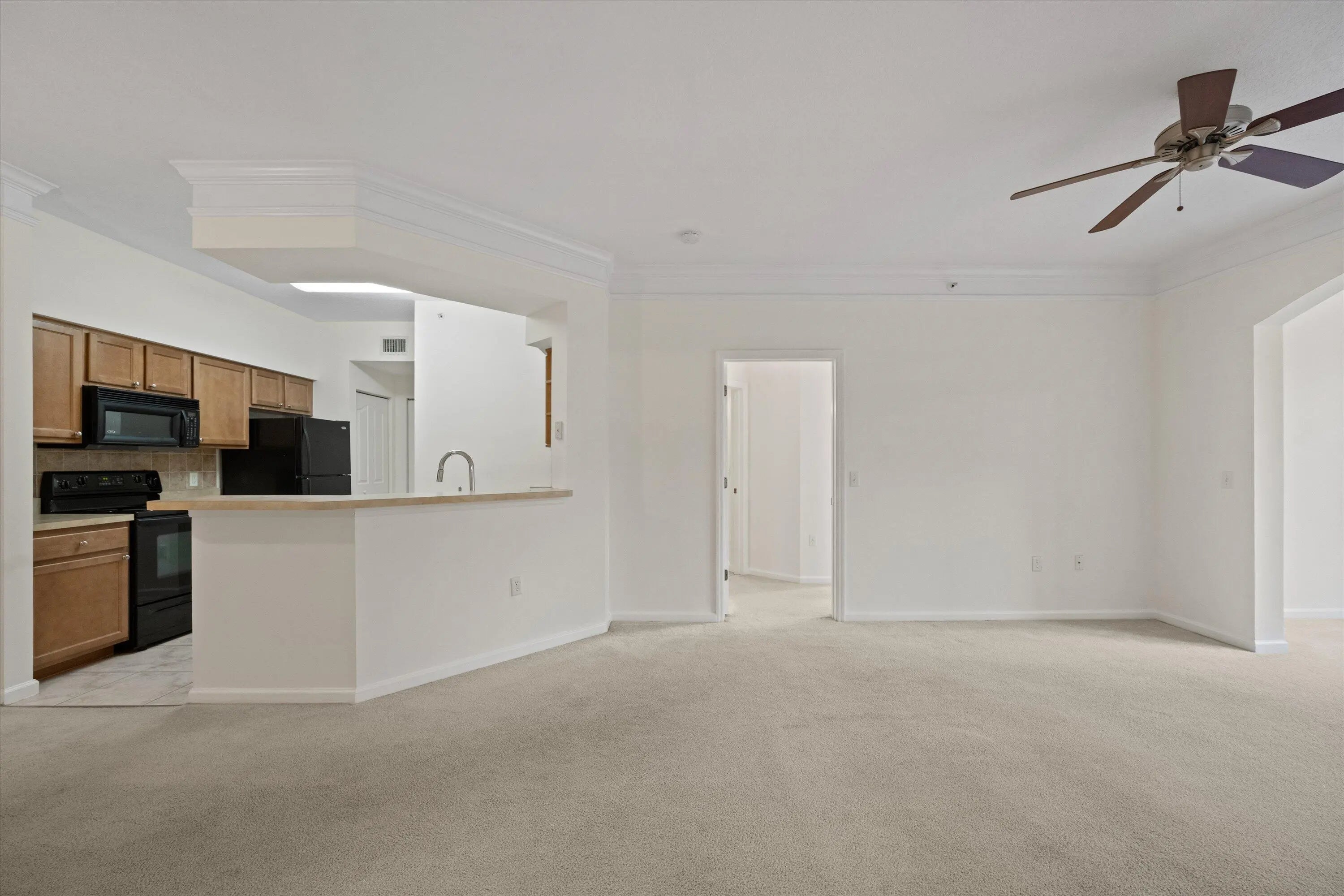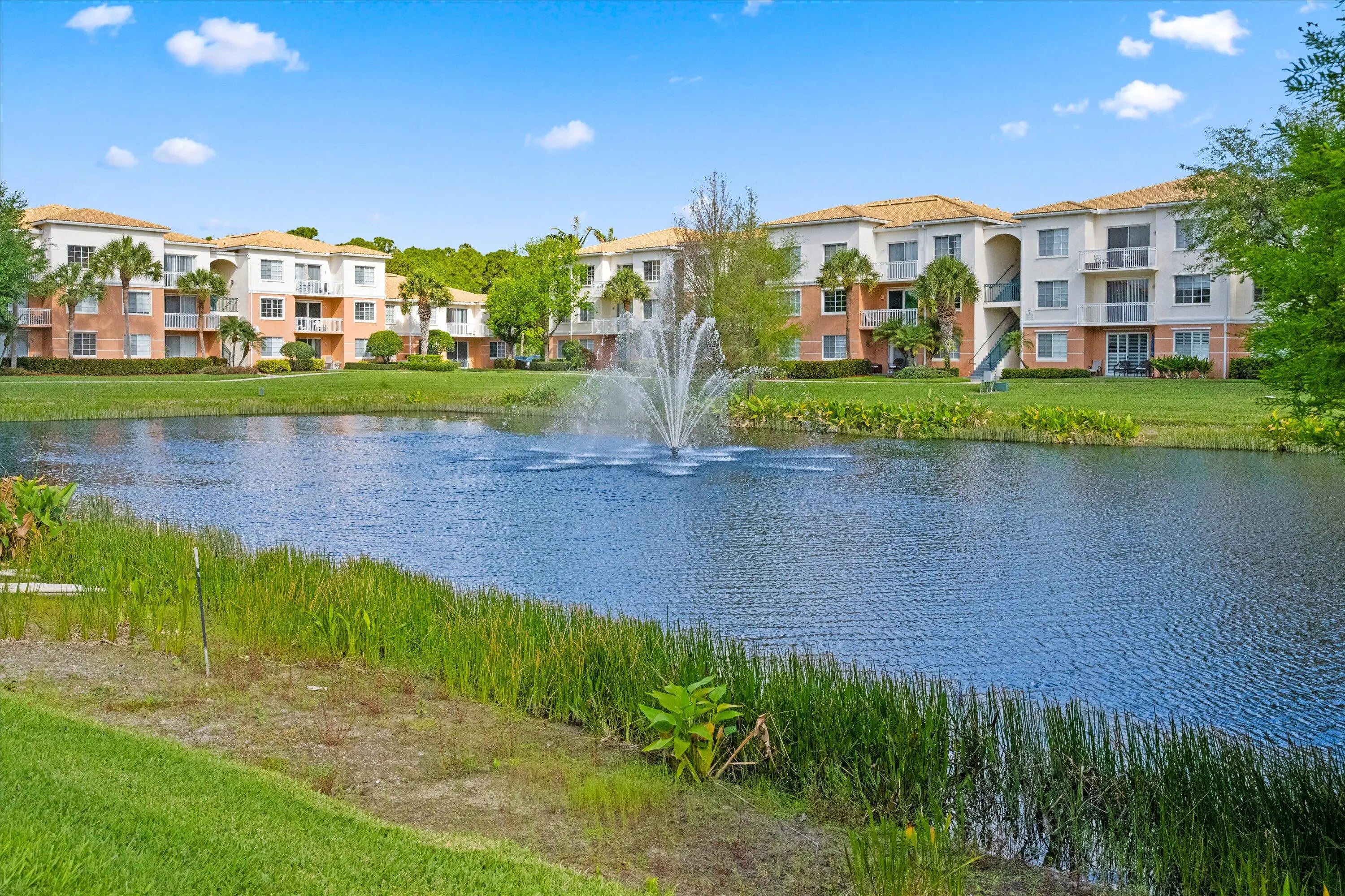 Spacious and freshly updated 2-bedroom, 2-bath condo with rarely available private 1-CAR GARAGE. The bright living area opens to a sunroom/Florida room, creating the perfect space for relaxing or working from home. The interior has been freshly painted and features professionally cleaned carpets throughout. The kitchen is well-equipped with a full-size refrigerator, oven and range, microwave, dishwasher, and ample cabinetry, with a full-size washer and dryer conveniently located in the adjacent laundry closet. The primary suite offers a walk-in closet and an en-suite bath complete with a garden tub. Residents enjoy access to a community pool, fitness center, playground, and beautifully maintained grounds. Ideally located near top-rated schools, shopping, and dining.
