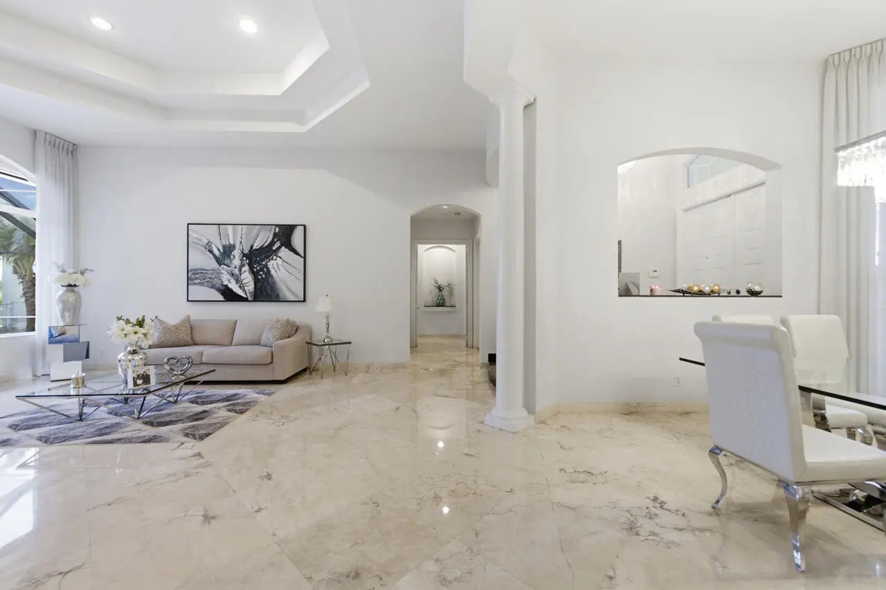 Spectacular Elegant home for everyday living or Entertaining w/ Style. This home just Sparkles! Polished Marble Floors + Soaring Ceilings make the light dance from the huge Windows and sparkling Chandeliers with Designer finishes and Floor to Ceiling Drapery. The Lake and Green views make you believe there is no else in the world... Screened Infinity Edge Pool w Huge Paver Patio is Perfect for Family fun or Lazy days on a raft, soaking up the Sun and Sky.. The Floorplan is perfect with lots of space to create your own design, XLarge Living Room / Dining Room and Family Room w/ Breakfast area and Gourmet Kitchen feel Open and still connected. THis home has several Flex spaces that encourage "Work from /Home" days. Open Houses Sat/Sun, we'd love to see you, please stop by for yummy treats