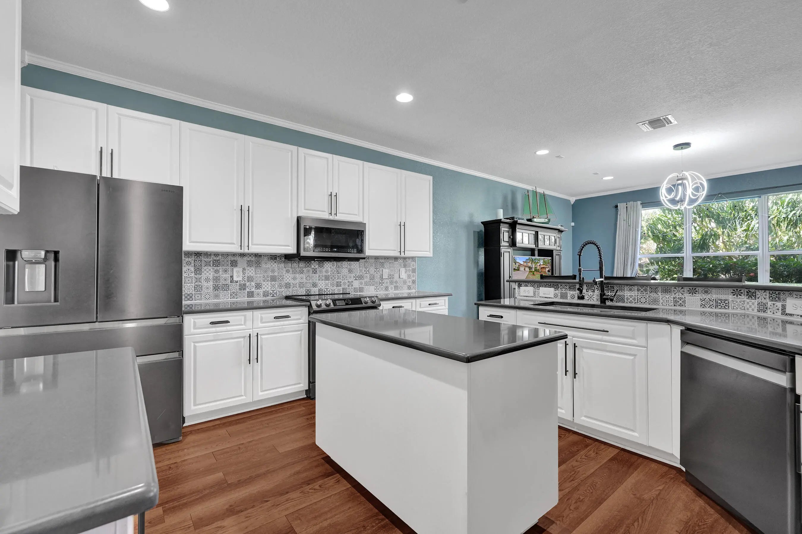 Experience this spacious 5BR/4BA lakefront home in a guard-gated community. The layout is ideal for multi-generational living with a convenient 1st-floor bedroom and full bath. The main bedroom offers dual walk-in closets. And the main living areas feature premium vinyl flooring and a gourmet kitchen with a custom accent island and designer backsplash. Upgraded French doors lead to a fenced lake-view backyard with a private pond and room for a pool. Includes a 3-car tandem garage with custom organization and full storm protection (accordion shutters up/panels down). HOA covers full lawn maintenance and resort-style amenities. The best value per sq. ft. in the neighborhood! EXTENSIVE RECENT UPGRADES: Front door with designed stained glass enhanced for style and peace of mind. The gourmet kitchen features professional-grade appliances. The main bedroom with two walk-in closets and main bathroom with spa-tub, dual sinks, and spacious shower. The flooring (except bedrooms) and the staircase have been upgraded to high-end, durable vinyl flooring. The family room now opens through elegant French doors. The backyard features a new fence, a serene patio with a decorative pond, and ample room to add a custom pool. Storm protection upgraded with accordion shutters on the 2nd level. Residents enjoy a HOA that includes lawn maintenance, Guard-gated Community, playground, pickleball and tennis court, and a clubhouse with a resort-style pool and fitness center.