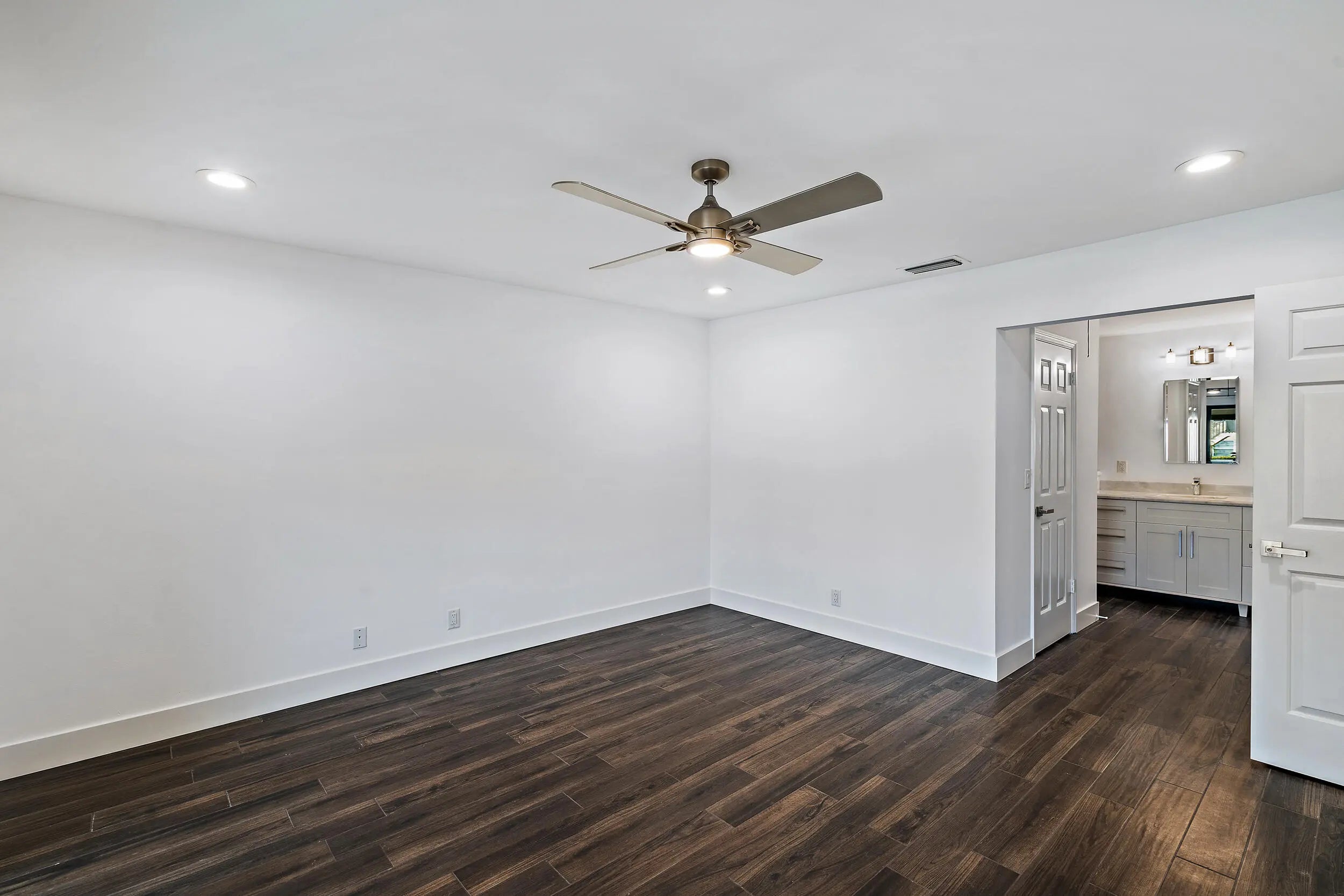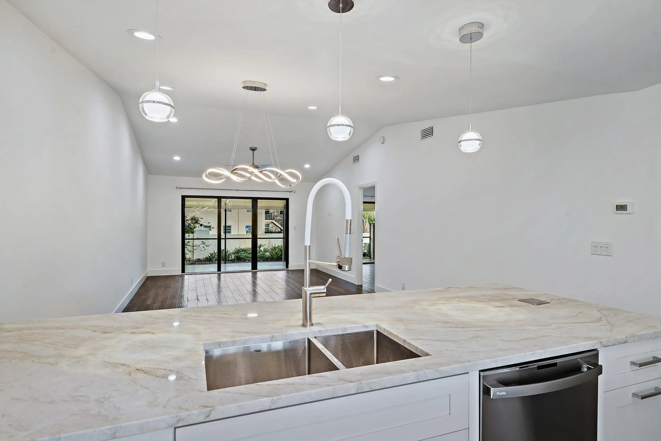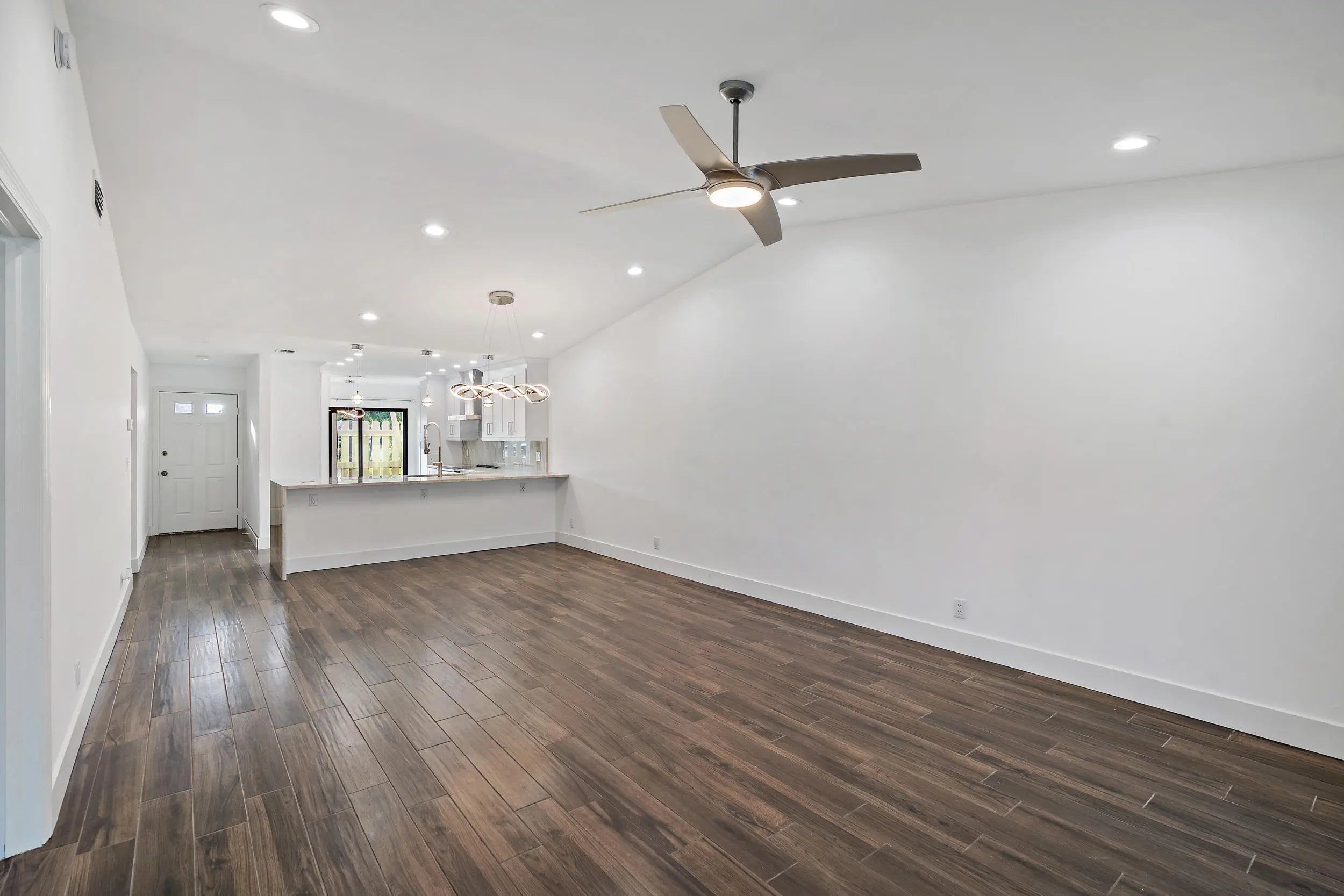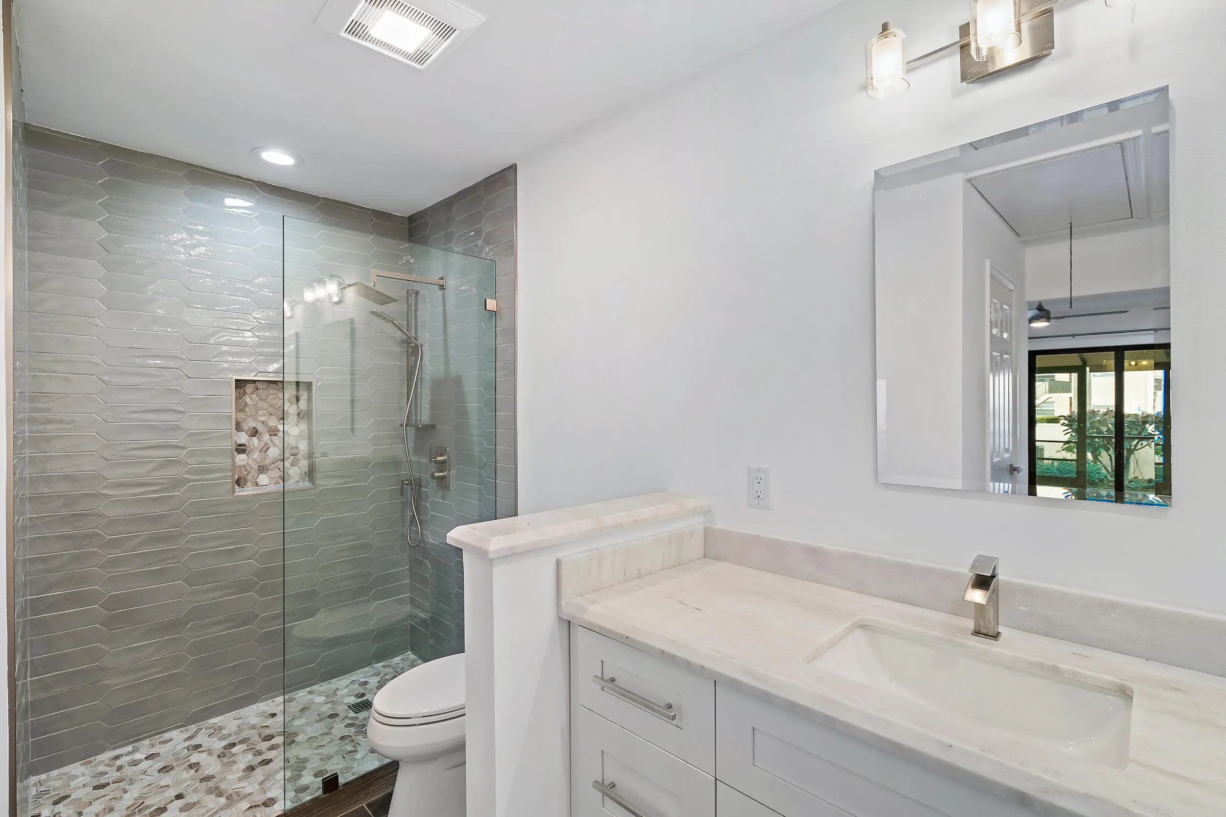 Immaculate and completely remodeled beach villa with 2 bedrooms 2 full baths and 1 car garage. Backing up to Carlin Park and walking distance to areas finest beaches, restaurants and shopping. If you appreciate quality then you will not be disappointed. Wood plank tile flooring throughout, chefs kitchen with quartzite waterfall counters, quality white wood cabinetry and GE Profile stainless steel appliances. Modern open floor plan with quality LED lighting. Hurricane impact windows and doors. Generous master suite and bath with double vanity and rain shower head. Back covered screened patio perfect for entertaining. Beach living at its finest. Available 6/1