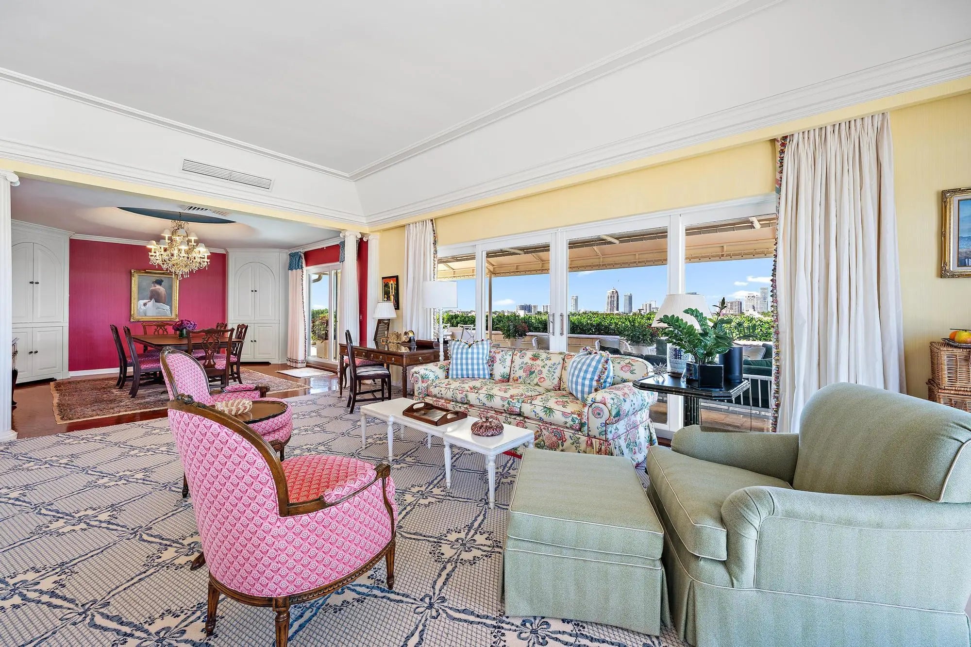 Breathtaking and truly unparalleled, the panoramic views from this Oceanfront Penthouse set it apart from anything else in Palm Beach. Coming to market for the first time in more than 33 years, this expansive 3-bedroom, 3-bath residence offers approximately 2,730 square feet of interior living space and an extraordinary ~3,000+-square-foot wraparound terrace with sweeping exposures to the east, north, and west. Flooded with natural light, the home features high ceilings, generous room proportions, and wonderfully open living spaces. Enjoy radiant sunrises over the Atlantic and majestic sunsets that illuminate the island--an ever-changing backdrop of sky and sea. 100 Royal Palm Way is an iconic, Howard Chilton-designed boutique building, prized for its coveted location directly across from the beach and just a few blocks from Worth Avenue's world-class dining and shopping. A rare and remarkable offering in the heart of Palm Beach.