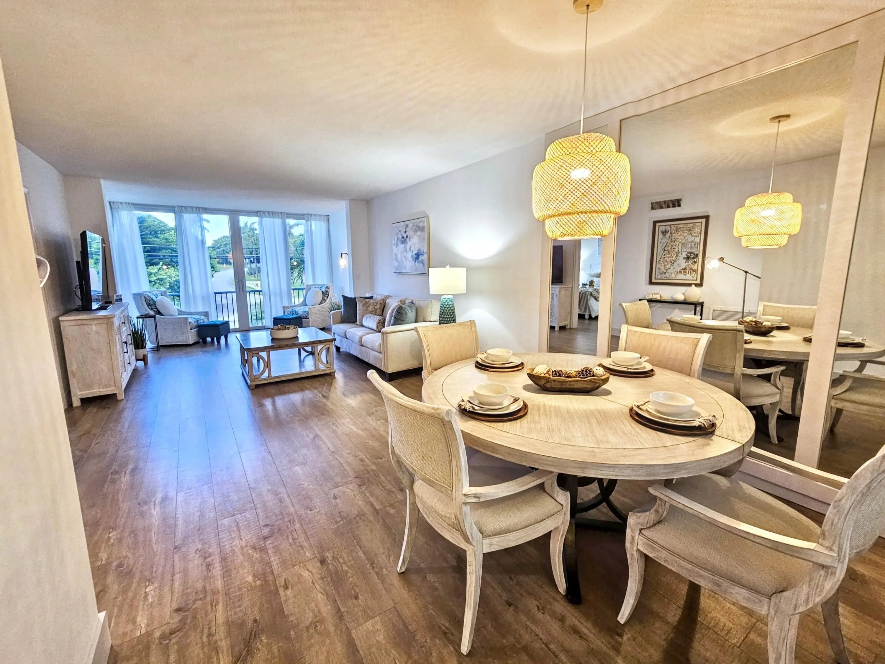 NEW AC, Impact Windows & Modern Upgrades! Nestled between the Intracoastal Waterway and the Atlantic Ocean in the exclusive town of Ocean Ridge, this beautifully updated 2-bed, 2-bath condo offers a rare blend of modern comfort and serene coastal living. Whether you're sipping your morning coffee as the sun rises over the water or unwinding with breathtaking sunsets, this home offers a front-row seat to Florida's natural beauty. Step inside and be welcomed by sun-filled interiors and a spacious open-concept layout. The renovated kitchen is a standout, featuring new stainless-steel appliances (2024), granite countertops, modern tile backsplash, and crisp white cabinetry with polished gold hardware. Enjoy remarkable water views as you prepare delicious meals for your friends and family. The open concept flow of the kitchen connects seamlessly to the dining area and living room, making it perfect for entertaining. Beautiful honey luxury vinyl plank flooring flows throughout the main living area and evokes a modern yet beachy aesthetic. Hurricane-impact windows and doors wrap the home in security and peace of mind, while luxurious window treatments and custom Zebra blinds add privacy and style as natural light floods the entire home. The spacious master suite includes a generous walk-in closet and an updated ensuite bathroom with a modern vanity and shower/tub combo. The second bedroom with a spacious walk in closet, located at the front of the unit, is ideal for guests or a home office. A second full bathroom features a walk-in tiled shower and contemporary finishes. New, modern ceiling fans keep the bedrooms cool. Being offered fully furnished or unfurnished ensuring the home is move-in ready for new owners. The unit is easily accessible via both elevator and stairway for added convenience. Wellington Arms residents enjoy a well-maintained community with resort-style amenities: a waterfront pool, BBQ area, seawall fishing, a recreation room, library, kayak/bike storage, private lockers, and convenient on-site laundry. Just across the street, explore the sand dunes of Ocean Front Beach Park or wander the nature trails of Ocean Ridge Hammock Park. Boaters and fishing enthusiasts will love the proximity to the Boynton Beach Inlet, just 10 minutes away, providing direct access to the ocean. Located minutes from upscale shopping and dining in Manalapan, vibrant downtown Delray Beach, and Palm Beach, with easy access to I-95, Palm Beach International Airport, and the Brightline train station. Milestone Structural Safety Inspection has been completed with no required repairs, and all assessments have been paid in full. Live your coastal dream in Ocean Ridge, where every day feels like a vacation. Owners are considering all reasonable offers.