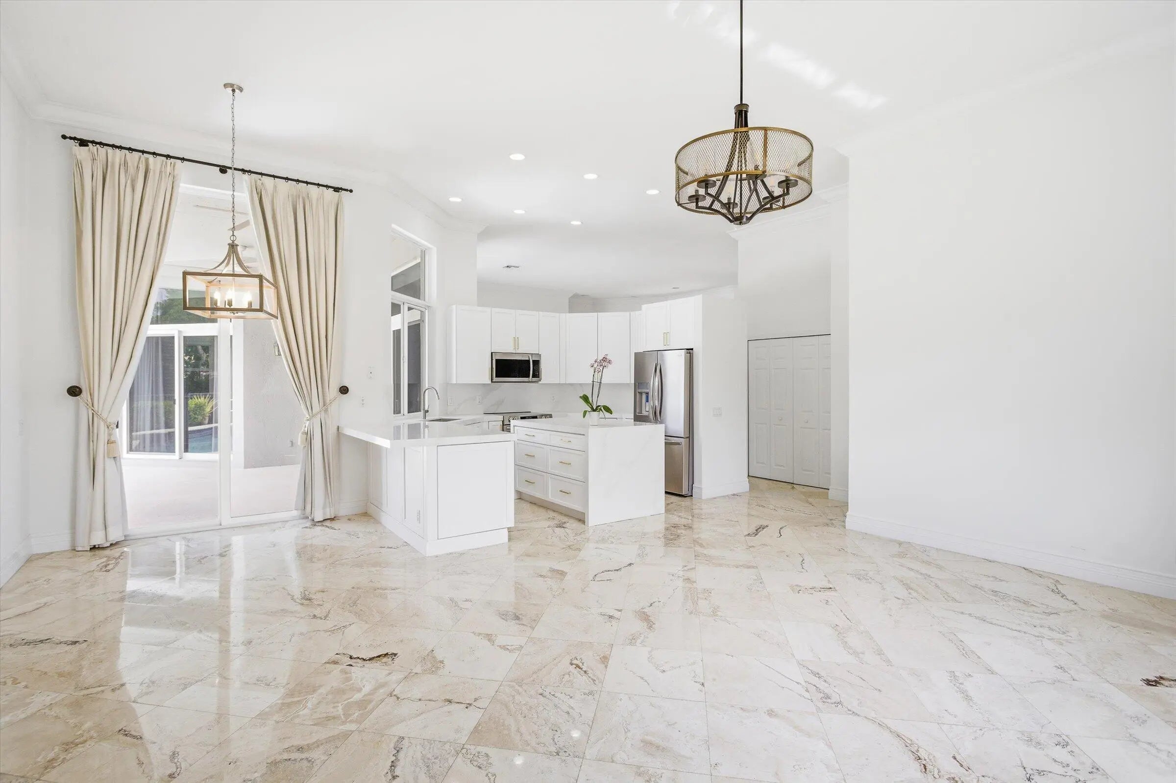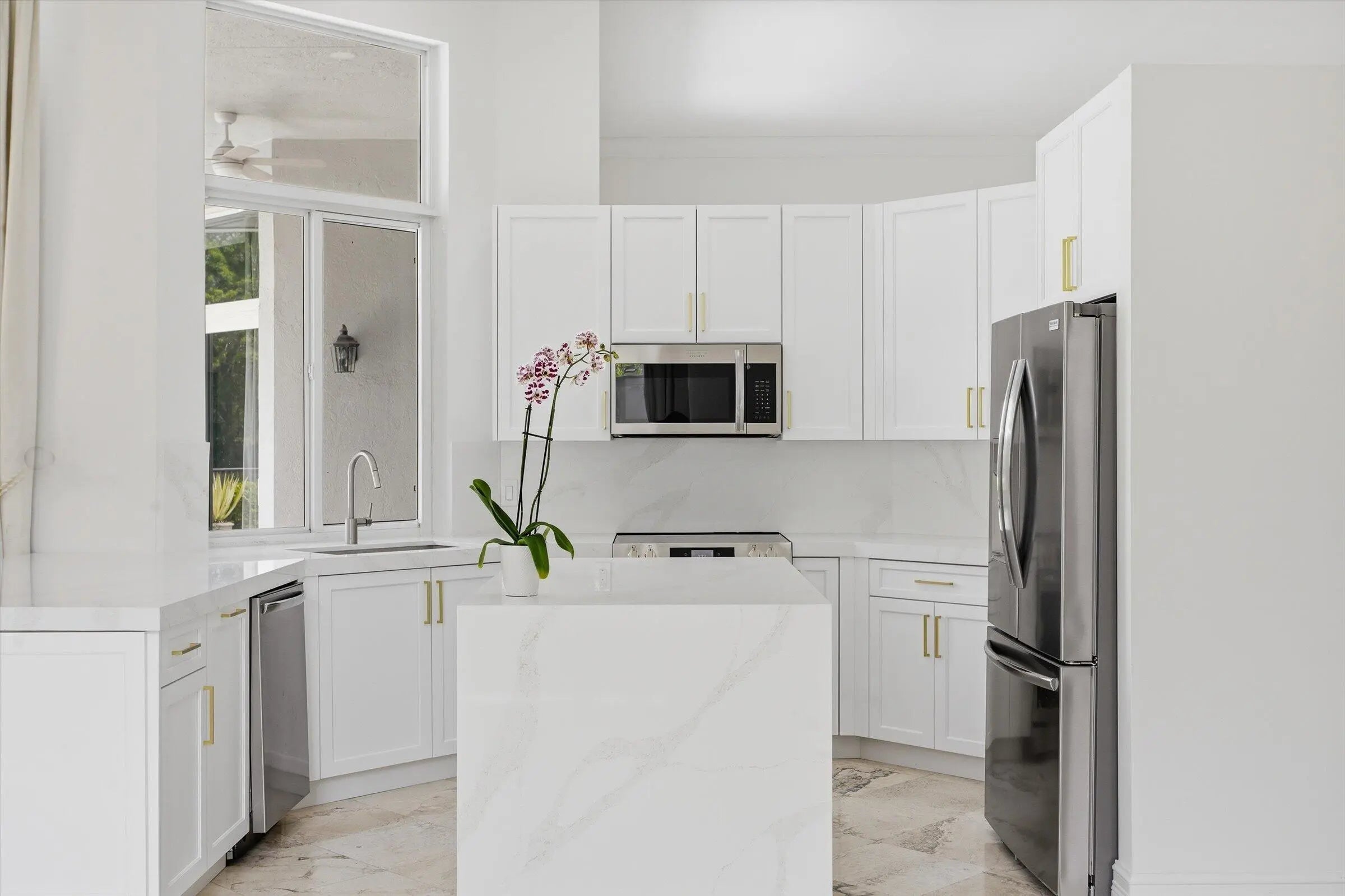 Beautifully renovated and move-in ready, this sought-after Carolina model offers 4 bedrooms + den and 2.5 baths, ideally located in the exclusive Islands in Weston. Situated on an oversized lot with private lake views, this home checks all the boxes. Features include marble floors throughout the living areas and new luxury vinyl flooring in the primary bedroom. Brand new kitchen showcases quartz countertops, stainless steel appliances, and a stunning center island. Renovated bathrooms, fresh interior paint, 2013 Roof and impact windows add to the home's appeal. A perfect combination of space, style, and location.