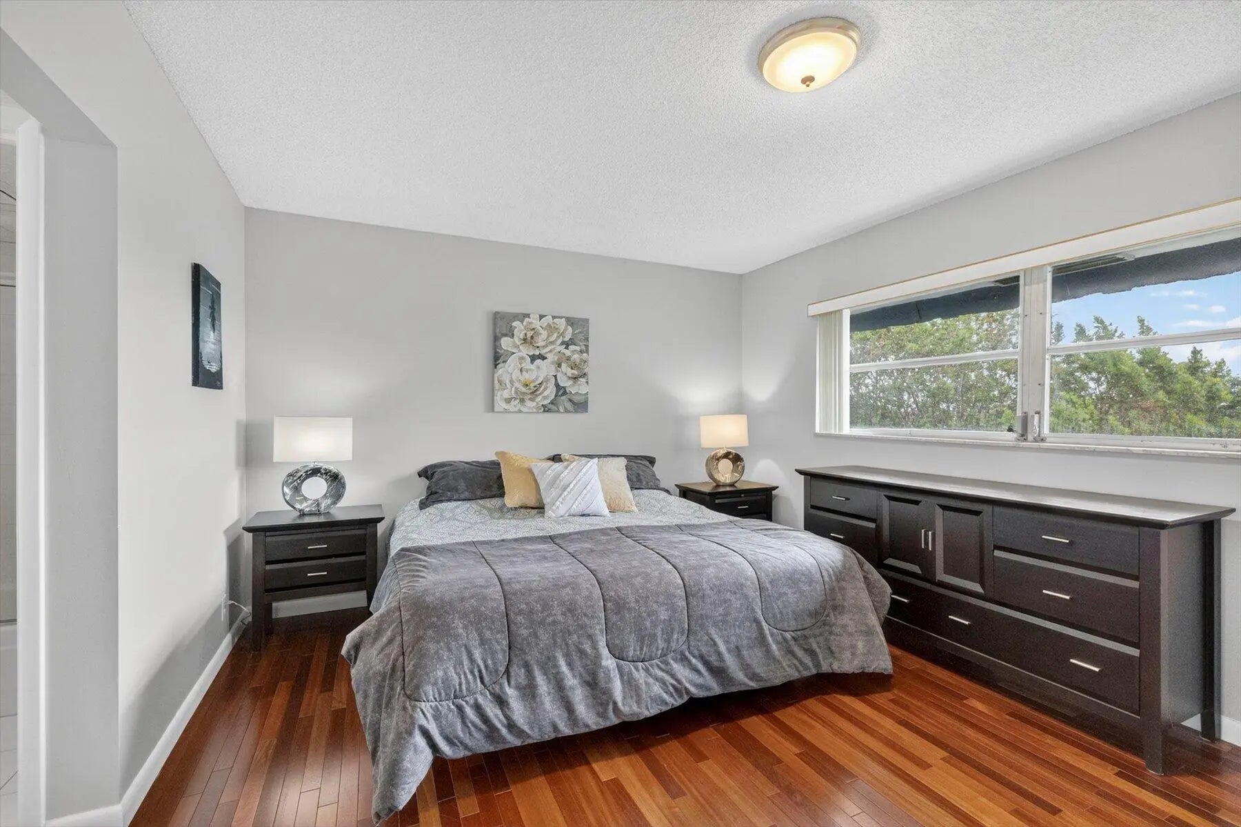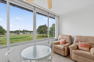 Turnkey and fully furnished, this beautifully maintained 2-bedroom, 2-bath golf course view condo is located in an active 55+ lifestyle community offering resort-style amenities and low-maintenance living. Bright and inviting, the home features gleaming hardwood floors, spacious living and dining areas, and an enclosed Florida room perfectly positioned to enjoy peaceful views of the golf course. The kitchen offers generous counter space and cabinetry, ideal for everyday living and entertaining. The primary suite includes hardwood flooring and a private en suite bath, while a second bedroom and full bath provide comfortable space for guests or a home office. Residents enjoy a clubhouse, heated pool, sauna, library, game room, shuffleboard courts, and social activities. Conveniently located near shopping, dining, parks, golf, and just a short drive to South Florida's beautiful beaches—perfect for seasonal or year-round living.