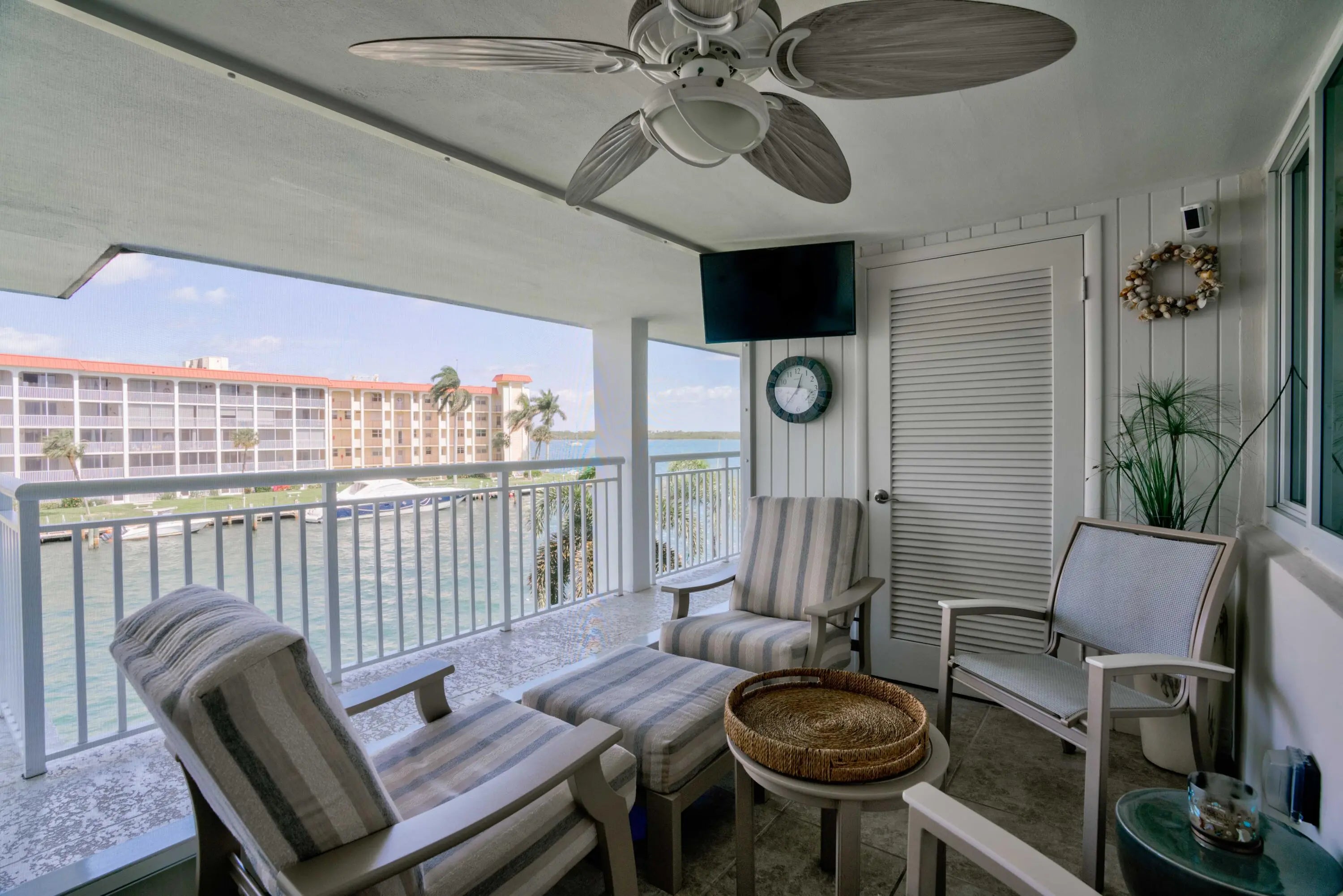 MIllion Dollar Views!! Enjoy the balmy breezes & spectacular intracoastal water views! This Beautifully Designer Renovated 3rd floor 1 bedroom 1 bath condo offers laminate & tile floors, crown molding, grass cloth wall accents, custom windows treatments, custom lighting fixtures, impact windows & door. SS appliances, induction range, granite counter tops and NEW AC. This light & bright condo offers beautiful intracoastal views from your screened in lanai. Bldg. C has a new roof, elevator, railings, tiled entrance, and laundry facilities. Shore Club is an active 55+ community with a social clubhouse, heated saltwater pool, BBQ grills and fishing dock. Minutes to NPB Golf & Country Club! Close to great shopping, restaurants, beaches & golf courses. 20 mins to PBIA. No leases No pets