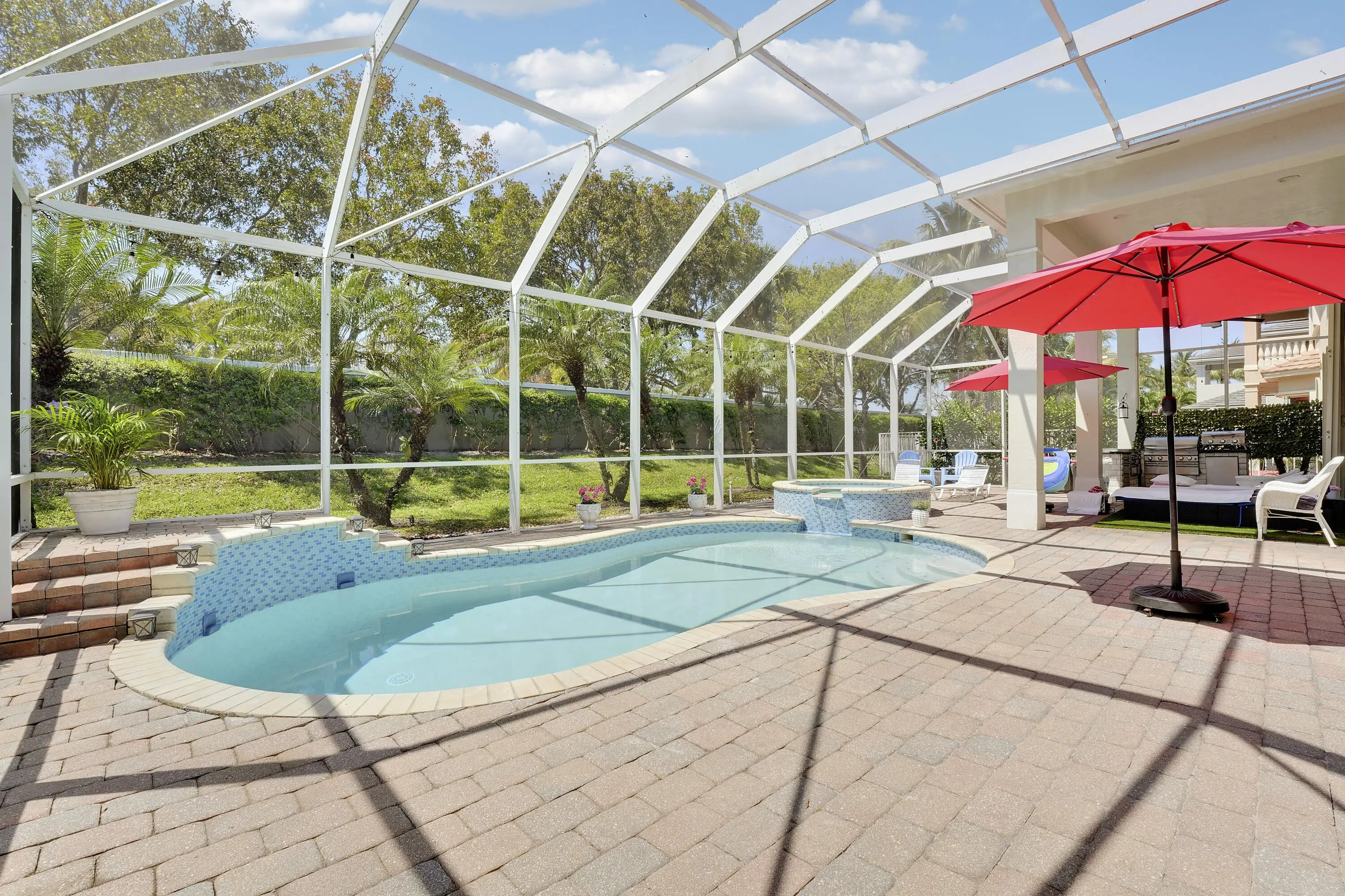 Welcome to this stunning 5-bed, 5-bath, 2-story sanctuary in the coveted Greenwood Manor. Boasting a brand-new roof and exceptional natural light, this home delivers immediate peace of mind and undeniable curb appeal. The layout is masterfully designed for modern living, featuring a massive downstairs primary suite alongside additional first-floor bedrooms, offering supreme convenience. Entertain seamlessly in the formal dining room or the expansive, open-concept kitchen. The second floor provides a dedicated guest retreat with spacious bedroom and an entertaining area. Step outside to your private tropical oasis, complete with a spectacular heated pool and spa. Complete with a 2.5-car garage, this property effortlessly blends luxury and practicality for the discerning buyer. Location is everything. Centrally situated in Palm Beach, you're minutes from PBI, Wellington equestrian events, downtown West Palm Beach, and major highways. Residents enjoy exclusive access to Palm Beach Plantation's elite amenities: a resort-style pool, fully equipped gym, and a sprawling clubhouse. Stay active with basketball and tennis courts, playgrounds, and pet-friendly walking trails. Enjoy the ultimate security and privacy with a gated entrance and 24/7 roaming patrols.