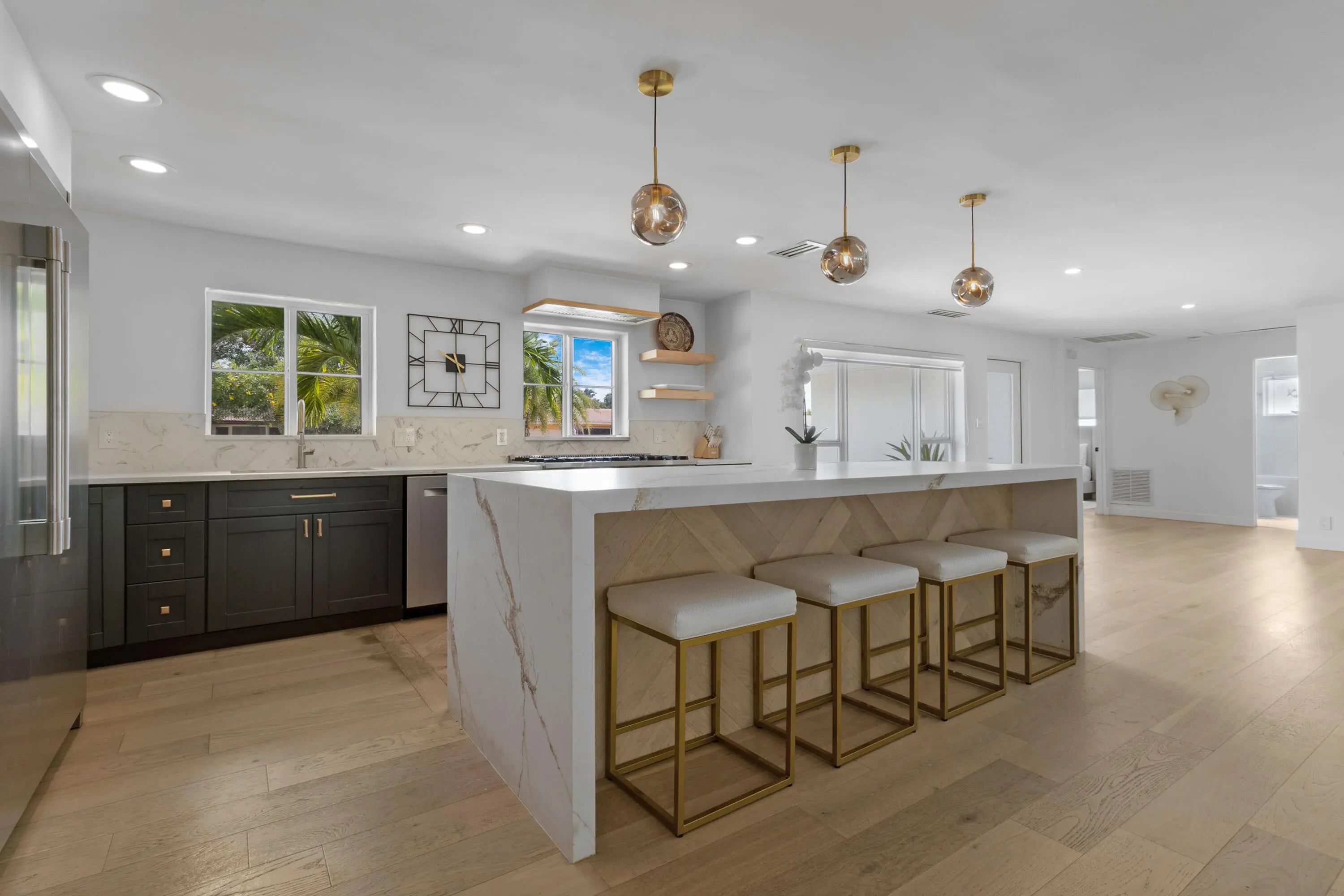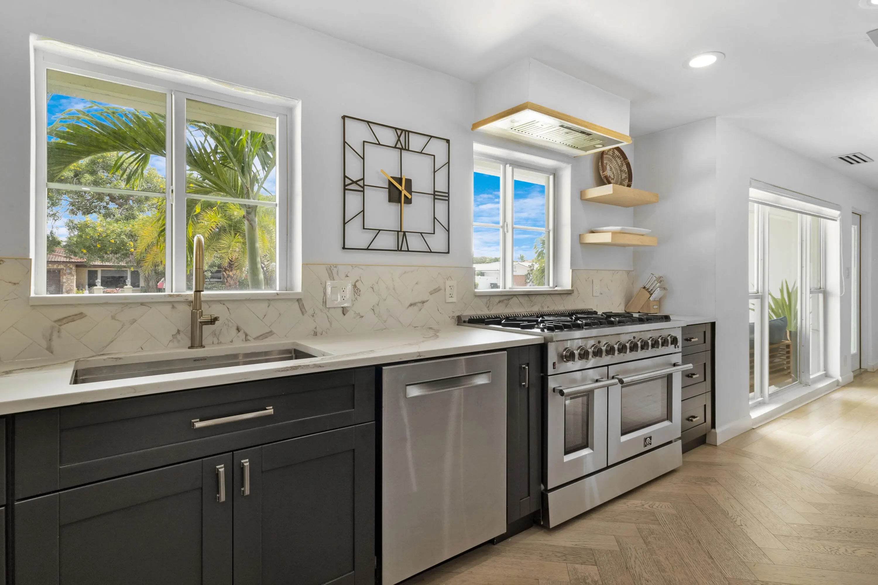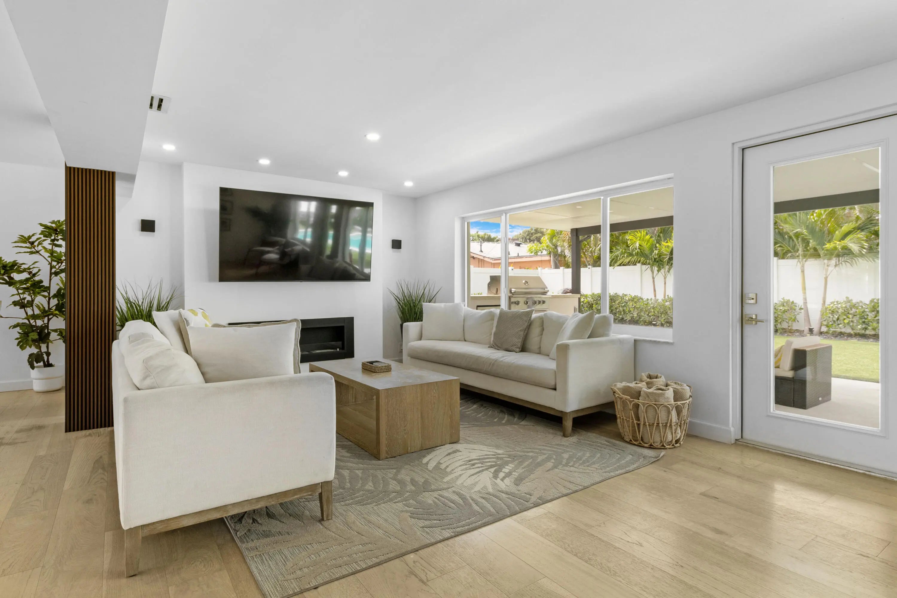 Luxury furnished rental with pool, solar backup power, EV charging, and designer finishes in the heart of Lighthouse Point. This 4-bedroom, 4-bath home offers 2,607 square feet of thoughtfully designed living space and is available now for a 6, 12 or month to month lease. The home is fully furnished and combines modern efficiency with elevated coastal comfort. Inside, the chef's kitchen is equipped with a leathered honed quartz island, an 8-burner gas range, an oversized 66-inch built-in refrigerator and freezer, a Miele built-in coffee system, and a wine fridge. Bright open-concept living spaces feature white oak engineered hardwood flooring, creating a warm and inviting setting for both everyday living and entertaining. The home also offers impact windows, updated electrical panels, PVC plumbing, dual A/C systems, two tankless water heaters, high-capacity backup batteries for extended outages, and a 220V EV charging station. Step outside to a private south-facing backyard designed for relaxation and entertaining, complete with premium synthetic turf, a 3-hole putting green, heated saltwater pool, insulated pergola, and a full outdoor kitchen. Located just moments from Cap's Place and Frank McDonough Park, this home offers a rare opportunity to enjoy comfort, convenience, and the best of the South Florida lifestyle in one of the area's most desirable neighborhoods. Cats and small dogs are welcome.