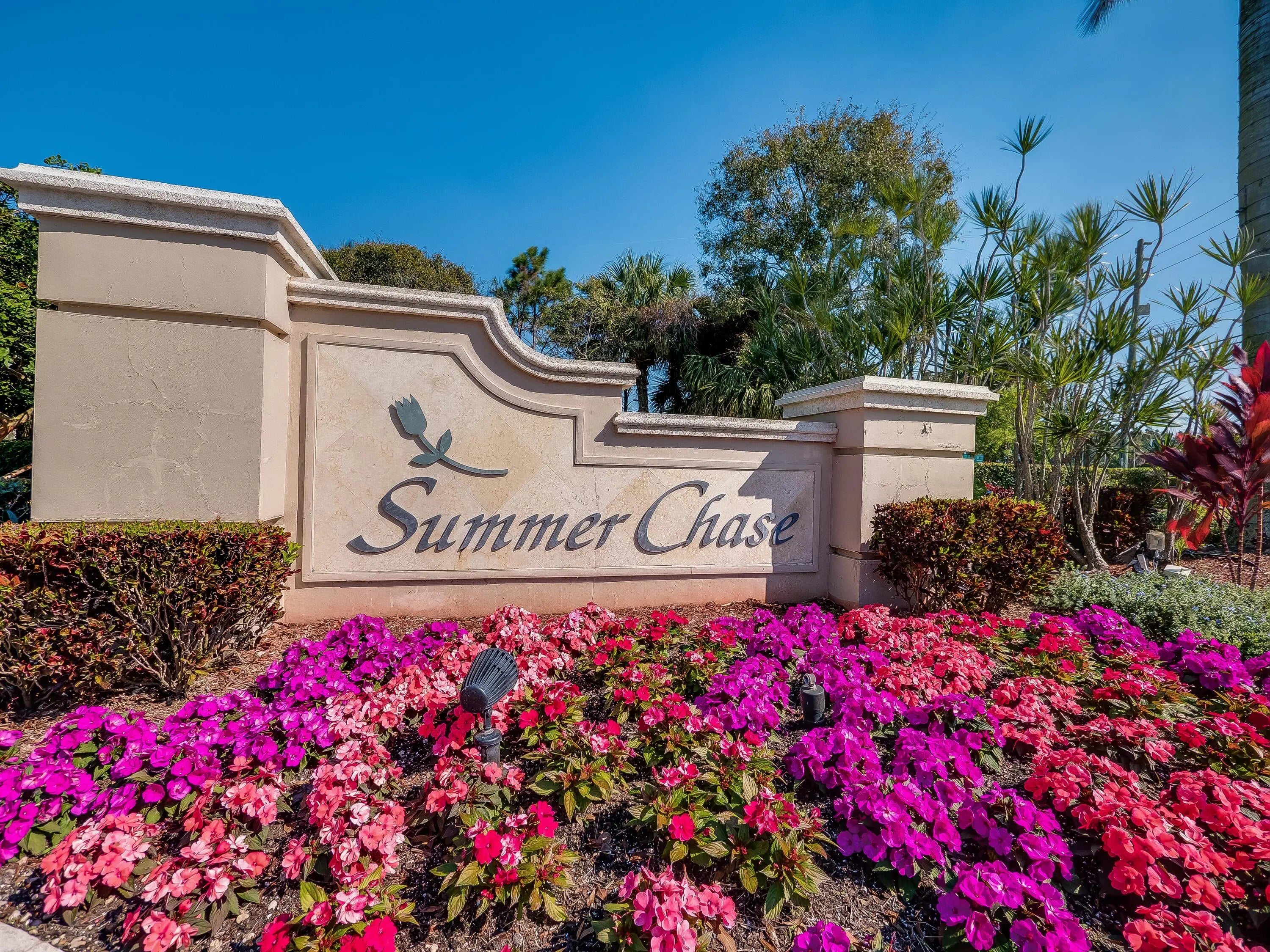 Charming, well-maintained home offers a welcoming blend of elegance & comfort. Step inside to discover arched passages, 10-ft ceilings & light-filled, open floorplan. Dining Rm w/beautiful crystal chandelier, can accommodate small or large gatherings. Roof ~ 2020. Updated Kit features eat-in breakfast area, granite countertops & an abundance of raised-panel cabinetry (42" wall cabs). Separate laundry rm offers extra storage & sep pantry. Spacious Owner's suite w/updated ensuite bath features soaking garden tub, separate shower & dual sink vanity. Both bathrms enhanced by custom stain glass window panel adding a touch of artistry. 3-panel sliding glass drs in Fam Rm floods room w/natural light. Tile/Laminate flrs. Large priv bkyard is fenced & features patio & mature landscaping. Summer Chase is a premier, highly sought-after 55+ Gated Community with 221 homes. The Community Clubhouse offers Outdoor Pool (Cooled in Summer/Heated in Winter), Spa, Sauna, Tennis/Pickleball Cts, Billiards, Fitness Facility, Shuffle/Bocce & more. Active Social Committee. Located near Lake Worth Beach, PBI Airport & Wellington amenities. Minutes to the Florida Turnpike. HOA fee includes Cable TV/Internet (Currently with Comcast but switching to Hotwire in near future), Yard maintenance, ADT Home Security and Community Amenities.