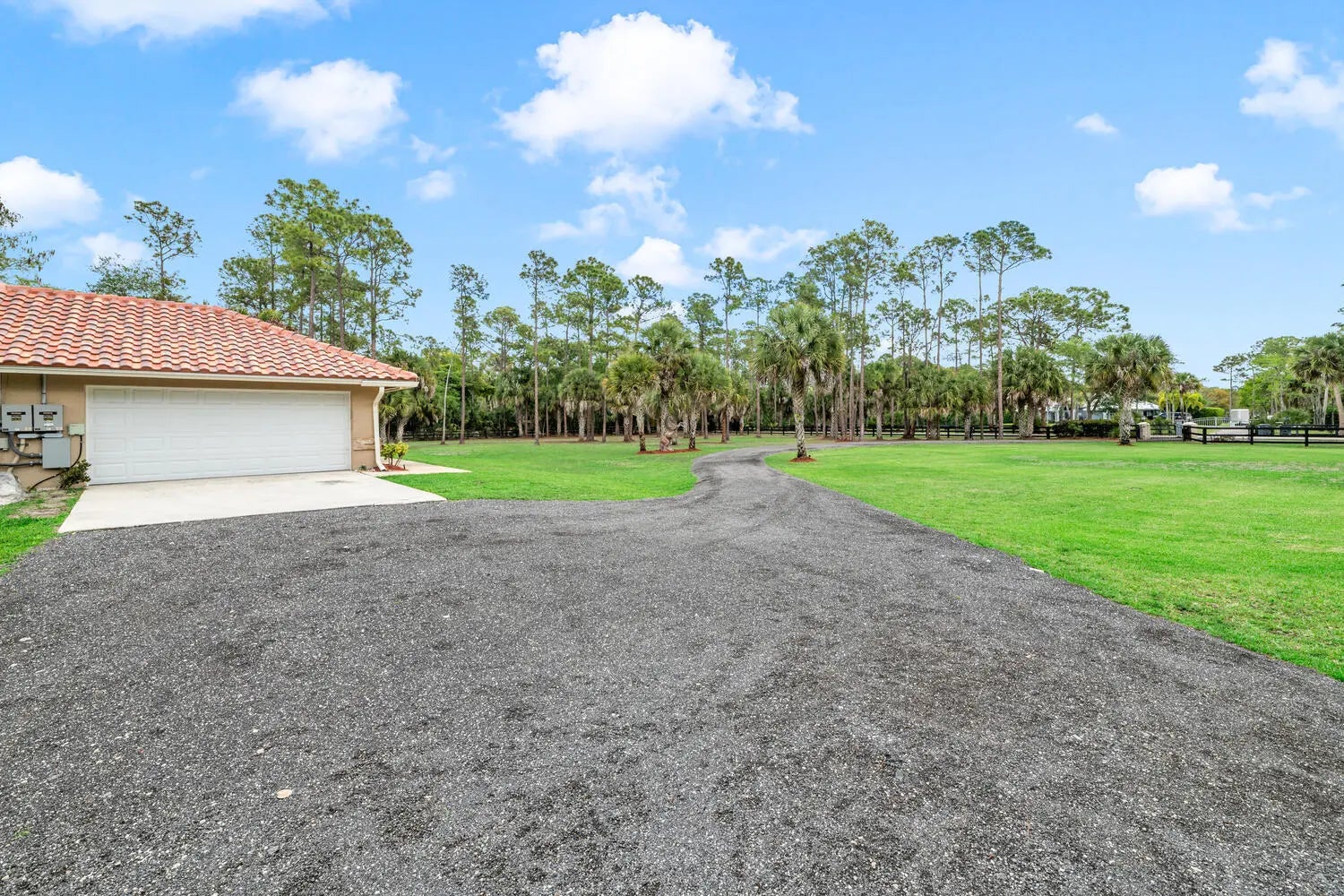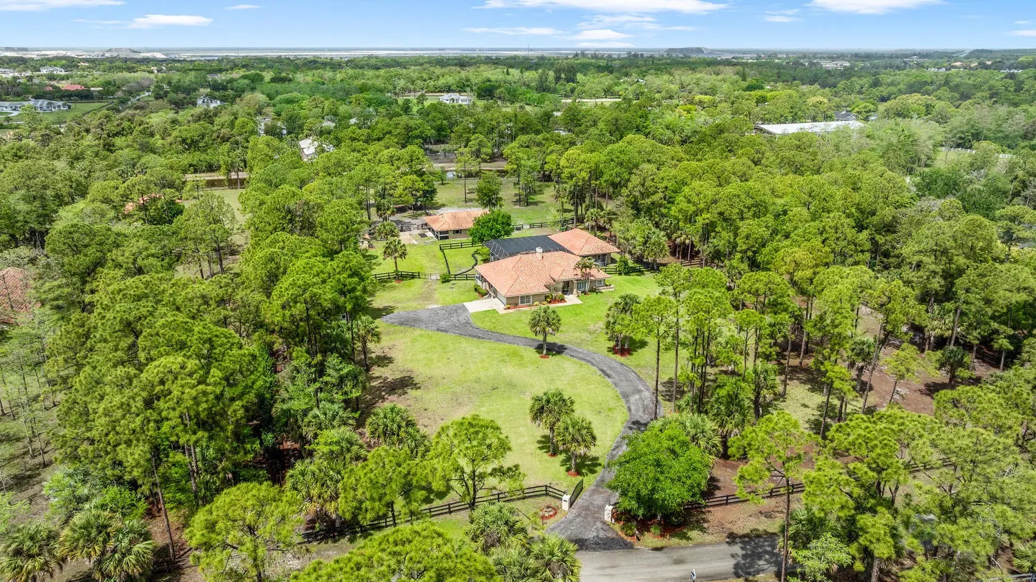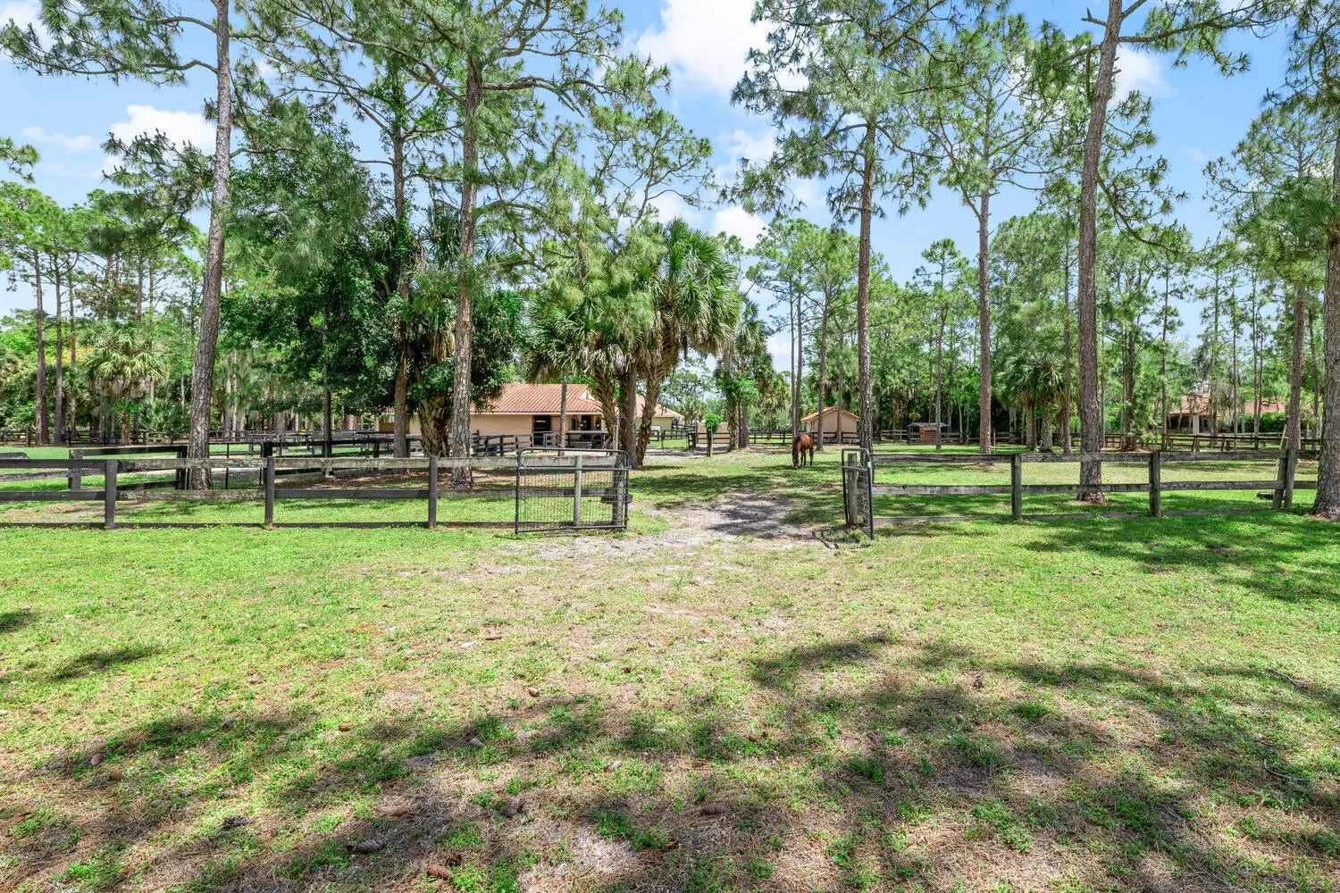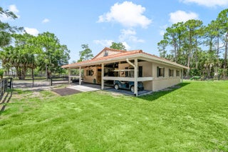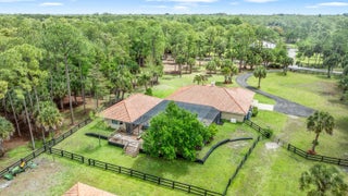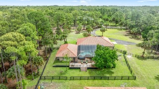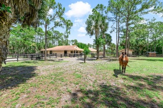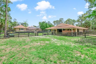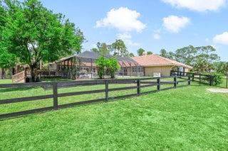 Nestled on 5 pristine, fully fenced acres in the exclusive gated equestrian community of Deer Run. This exceptional property offers the perfect blend of family living and premier equestrian amenities. The beautifully updated main residence features 3 bedrooms plus large office (can be 4 bedrooms), 2 bathrooms, and a 2+ car garage, showcasing new flooring, renovated bathrooms, and a spacious, open-concept layout. A large kitchen flows seamlessly into the expansive family room, complemented by a formal dining space ideal for entertaining. Step outside to an oversized screened patio overlooking a stunning pool with a waterfall feature and fire pits—creating a true private oasis. A fully equipped 1-bedroom, 1-bathroom guest house with full kitchen and impact glass provides the perfect space for visitors, staff, or rental income potential. This property has been thoughtfully upgraded for efficiency and peace of mind, including new hurricane impact double front doors, new house roof (2025), top of the line Bora Steel tile roof with cooling insulation and 225 wind mitigation, updated pool and irrigation pumps (2025), new AC (2025), and a whole-farm generator supported by two underground propane tanks (1,000 and 500 gallons). The home also features a top-of-the-line reverse osmosis water system and remarkably low monthly electric costs. Equestrians will appreciate the professionally designed 5-stall center aisle barn with an oversized 14-foot aisle. Barn features a tack and feed room with washer/dryer, fly spray system, fridge/freezer, easy fill water system for each stall, and stall runouts. Additional features include four covered tack-up areas, a CBS manure bin, storage shed with electric, and a resurfaced driveway (2025). A new wraparound deck (2024) overlooks the barn, perfect for relaxing or entertaining after a ride. Ideally located less than one mile from White Fences Equestrian Center, riders can easily access schooling and recognized shows year-round. Gate access at rear of property leads to miles of scenic trail! Located just 4 miles to local shopping, and only 13 miles from Wellington International and Global Dressage Festival. This is a rare opportunity to own a turnkey equestrian estate in one of South Florida's most desirable riding communities.