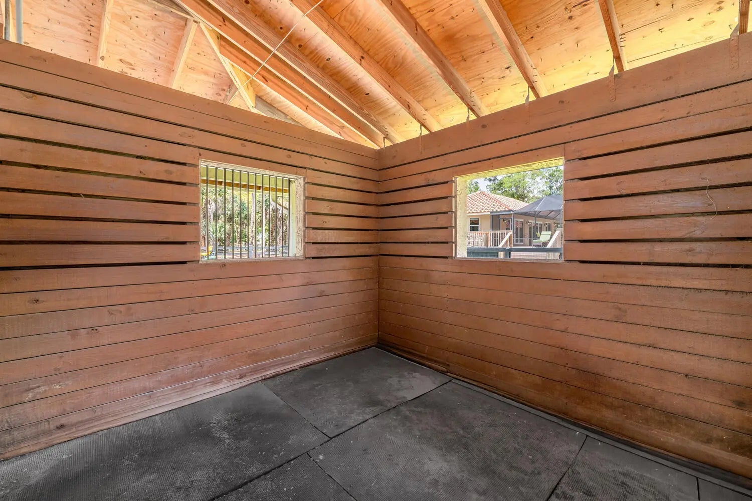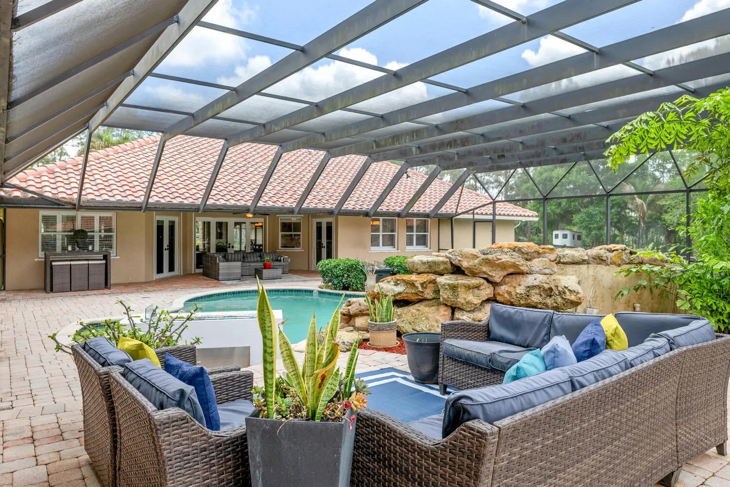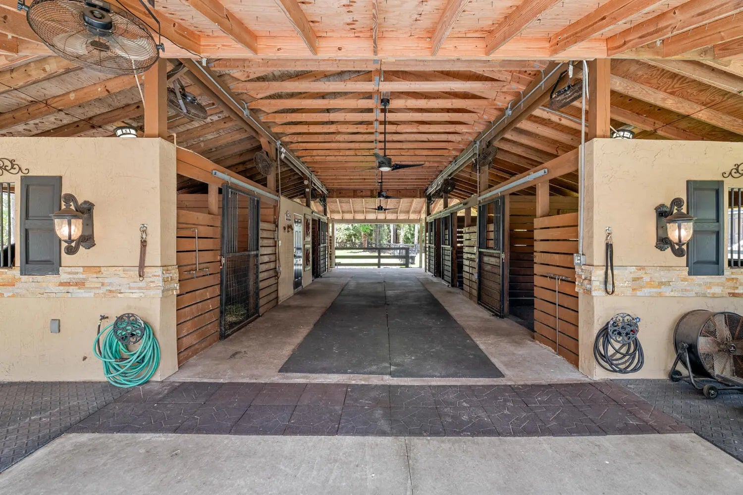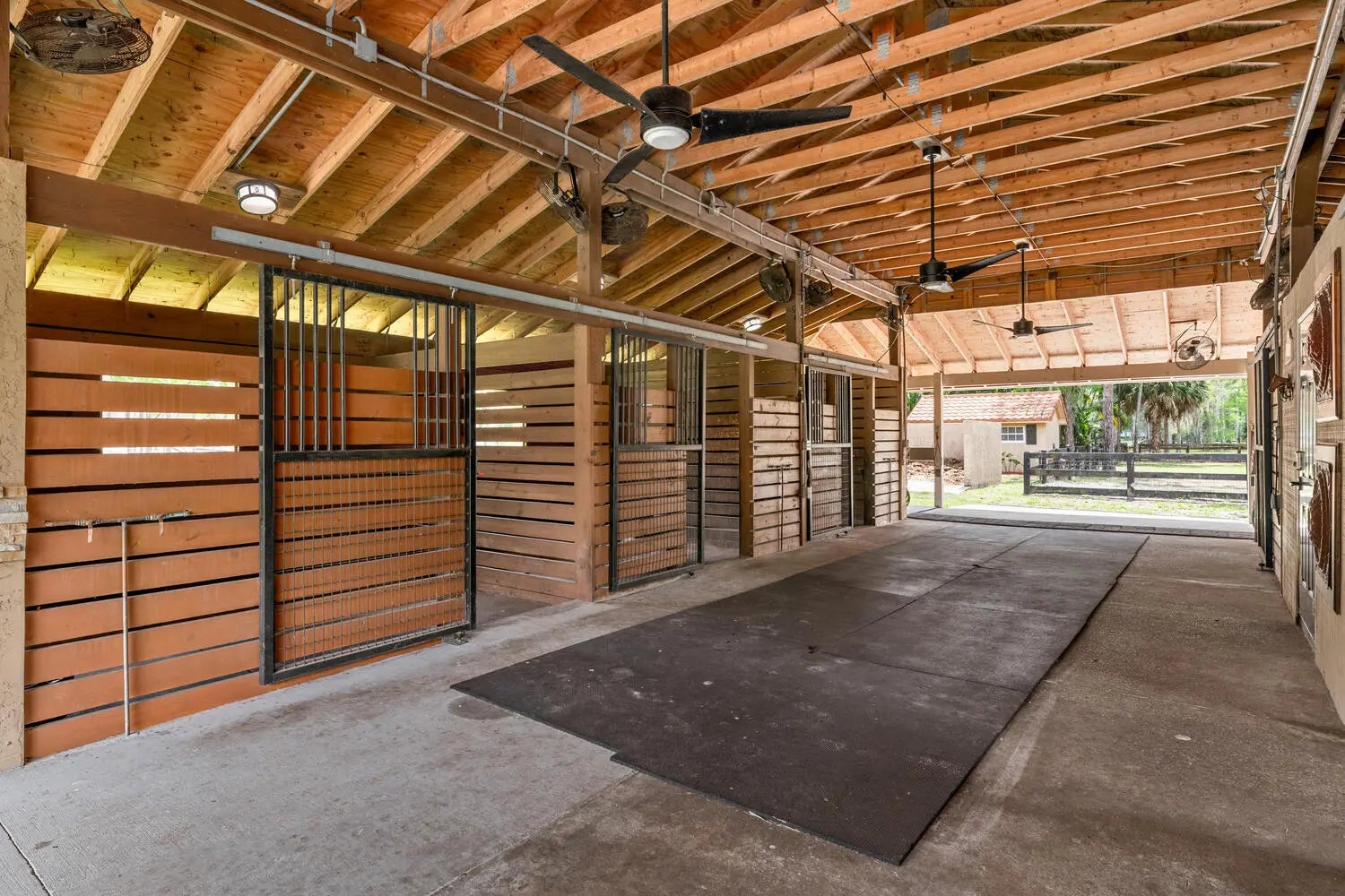 Nestled on 5 pristine, fully fenced acres in the exclusive gated equestrian community of Deer Run. This exceptional property offers the perfect blend of family living and premier equestrian amenities. The beautifully updated main residence features 3 bedrooms plus large office (can be 4 bedrooms), 2 bathrooms, and a 2+ car garage, showcasing new flooring, renovated bathrooms, and a spacious, open-concept layout. A large kitchen flows seamlessly into the expansive family room, complemented by a formal dining space ideal for entertaining. Step outside to an oversized screened patio overlooking a stunning pool with a waterfall feature and fire pits—creating a true private oasis. A fully equipped 1-bedroom, 1-bathroom guest house with full kitchen and impact glass provides the perfect space for visitors, staff, or rental income potential. This property has been thoughtfully upgraded for efficiency and peace of mind, including new hurricane impact double front doors, new house roof (2025), top of the line Bora Steel tile roof with cooling insulation and 225 wind mitigation, updated pool and irrigation pumps (2025), new AC (2025), and a whole-farm generator supported by two underground propane tanks (1,000 and 500 gallons). The home also features a top-of-the-line reverse osmosis water system and remarkably low monthly electric costs. Equestrians will appreciate the professionally designed 5-stall center aisle barn with an oversized 14-foot aisle. Barn features a tack and feed room with washer/dryer, fly spray system, fridge/freezer, easy fill water system for each stall, and stall runouts. Additional features include four covered tack-up areas, a CBS manure bin, storage shed with electric, and a resurfaced driveway (2025). A new wraparound deck (2024) overlooks the barn, perfect for relaxing or entertaining after a ride. Ideally located less than one mile from White Fences Equestrian Center, riders can easily access schooling and recognized shows year-round. Gate access at rear of property leads to miles of scenic trail! Located just 4 miles to local shopping, and only 13 miles from Wellington International and Global Dressage Festival. This is a rare opportunity to own a turnkey equestrian estate in one of South Florida's most desirable riding communities.