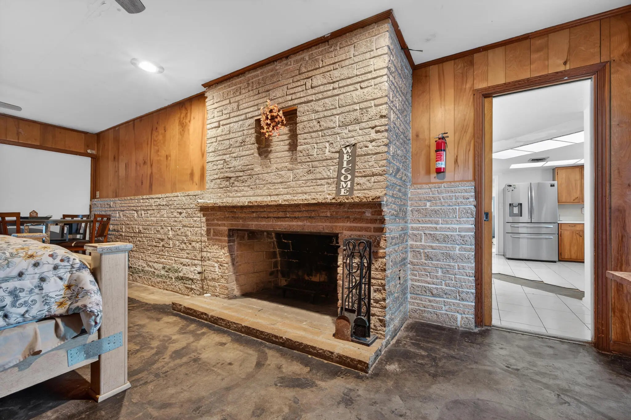 This 3-bedroom home features 3-baths and two separate living areas, including one with a beautiful fireplace. Laundry Room and a converted two-car garage with two mini-split AC units, perfect for a gym, storage, or added space. Covered patio overlooking resurfaced heated pool. Recent updates include new windows, exterior impact doors, and renovated bathrooms, new white kitchen cabinets ready to be installed. Situated on .43 acres the property also presents a unique opportunity with an additional .72 acre parcel directly behind home available for separate purchase; while property does not currently have direct ingress or egress, it may offer added privacy, expansion or long term value when bought in conjunction with property. Buyer to verify access and use.