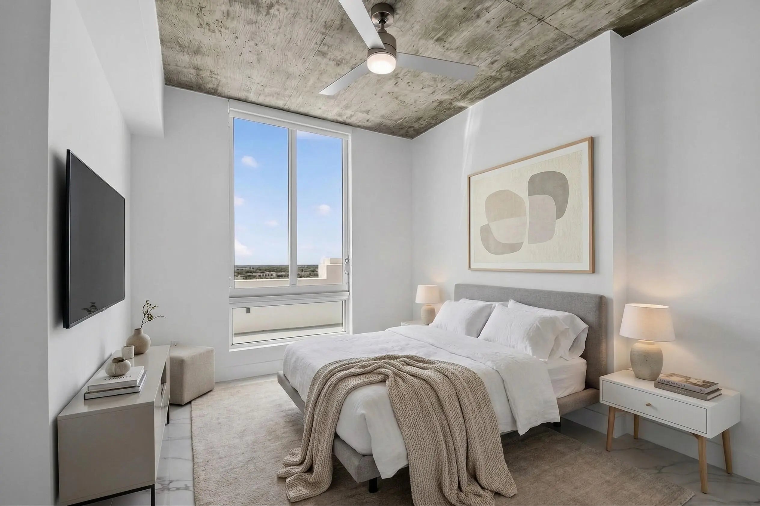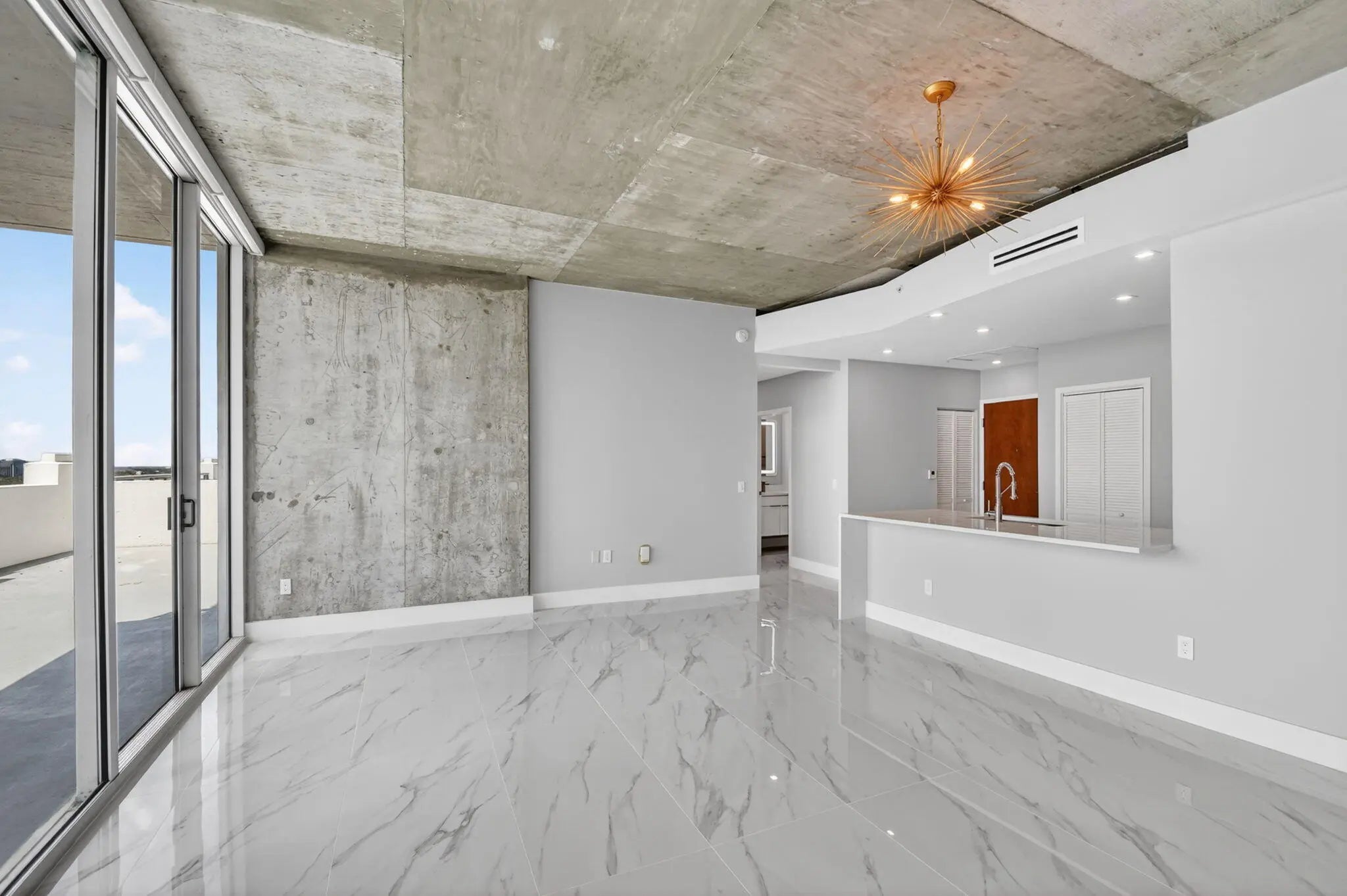 Gorgeous, fully Renovated New York loft style residence with 2 bedrooms, located on the 11th floor of the Edge Condominium. Enjoy 10-foot ceilings with floor to ceiling impact glass that open up to your 500+ sq ft sq ft private extra-large terrace with expansive lake and sunset views . This unit is 1 of only 3 in the Edge building with this feature.The newly renovated spacious kitchen features brand-new stainless-steel appliances, granite countertops and cabinets. The Edge is a pet friendly building located in Downtown West Palm Beach with a 24-hour attended lobby and resort style amenities, including a rooftop Olympic size pool, clubhouse, fitness center, zen room and spa. This residence comes with 2 garage spaces 370 and 397.Ac is 2023,New Water Heater March 2026. The Edge Offer's Resort style amenities on the 6th Floor with Wifi througout and an expansive pool,Cabana's ,Hot Tub,3 BBQ's and ample Lounging and seating.The clubhouse has a Pool Table,TV Lounge,Fitness room and Business center.