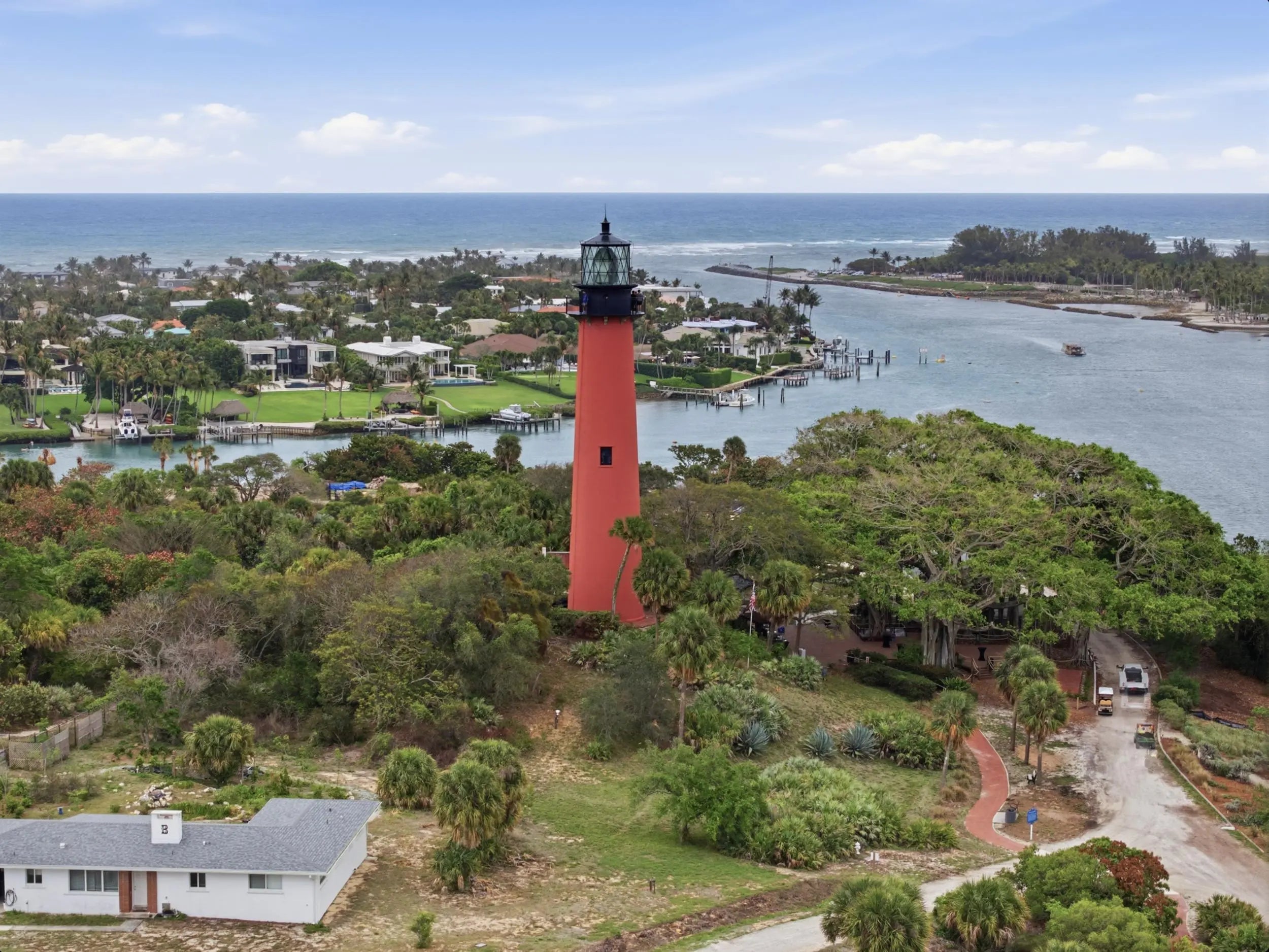 To mark the reef lying off the Jupiter Inlet, Congress in 1853 appropriated $35,000 to construct a lighthouse. At the top of the Jupiter Lighthouse, you can see the Loxahatchee River.