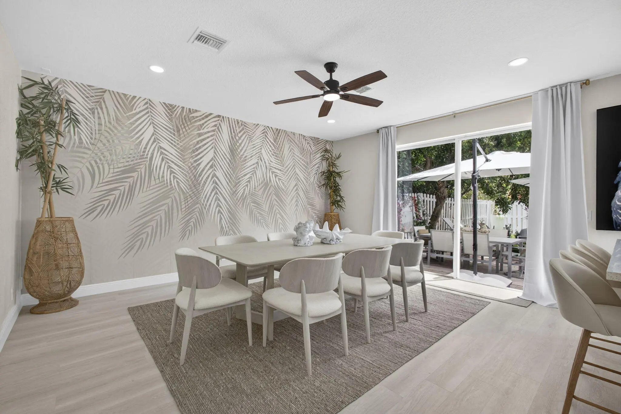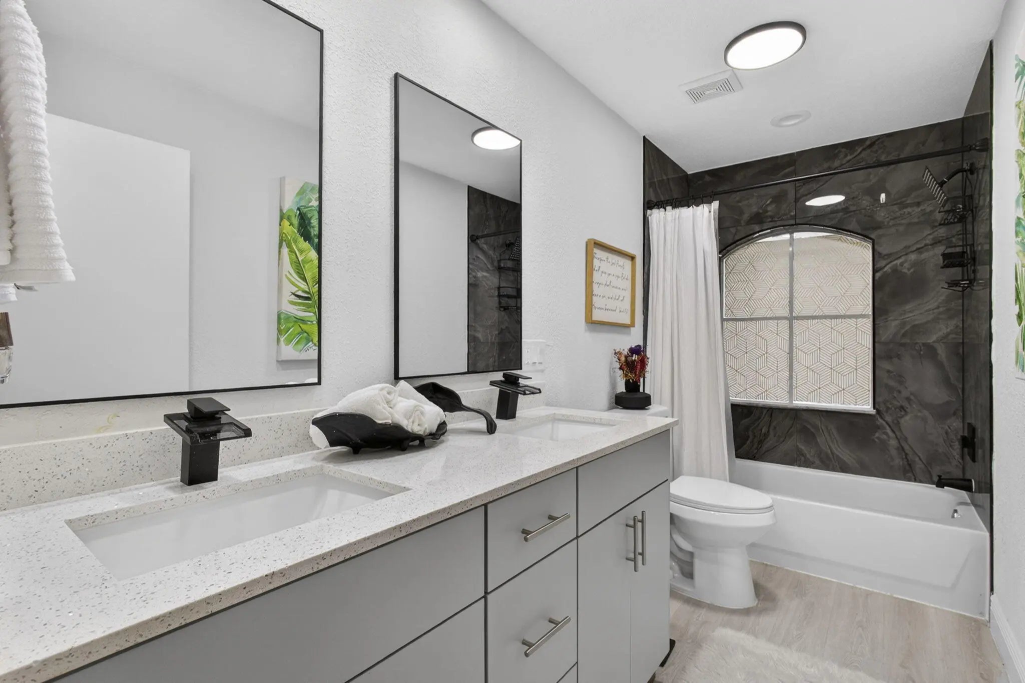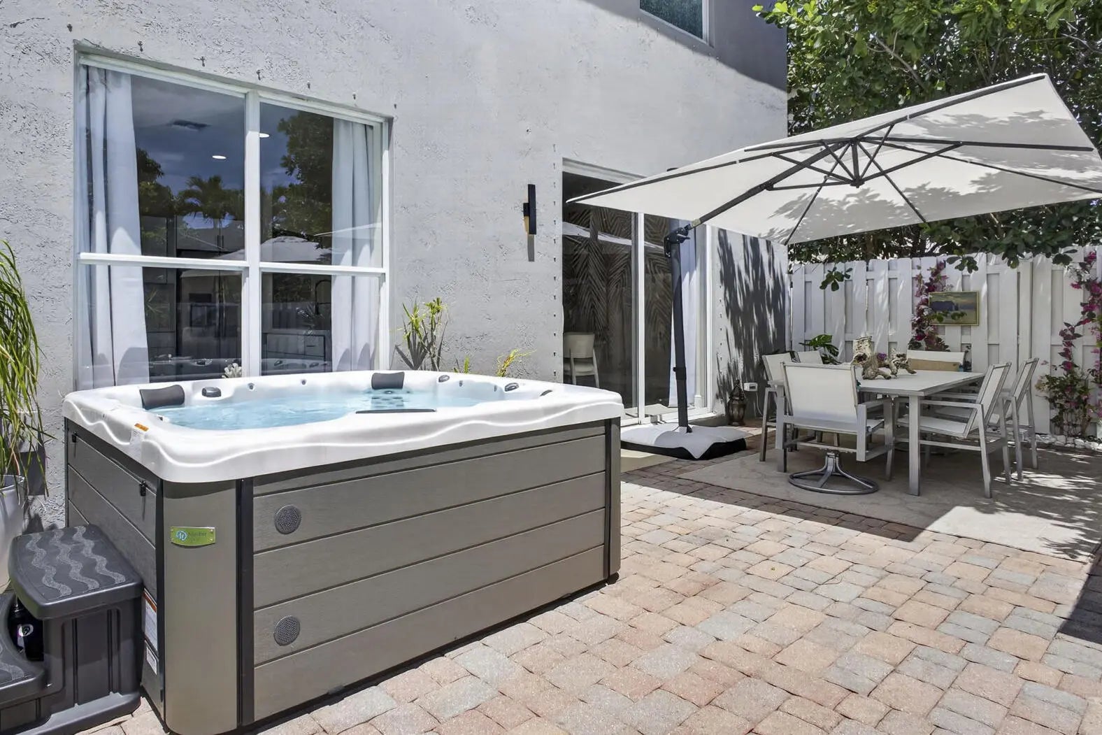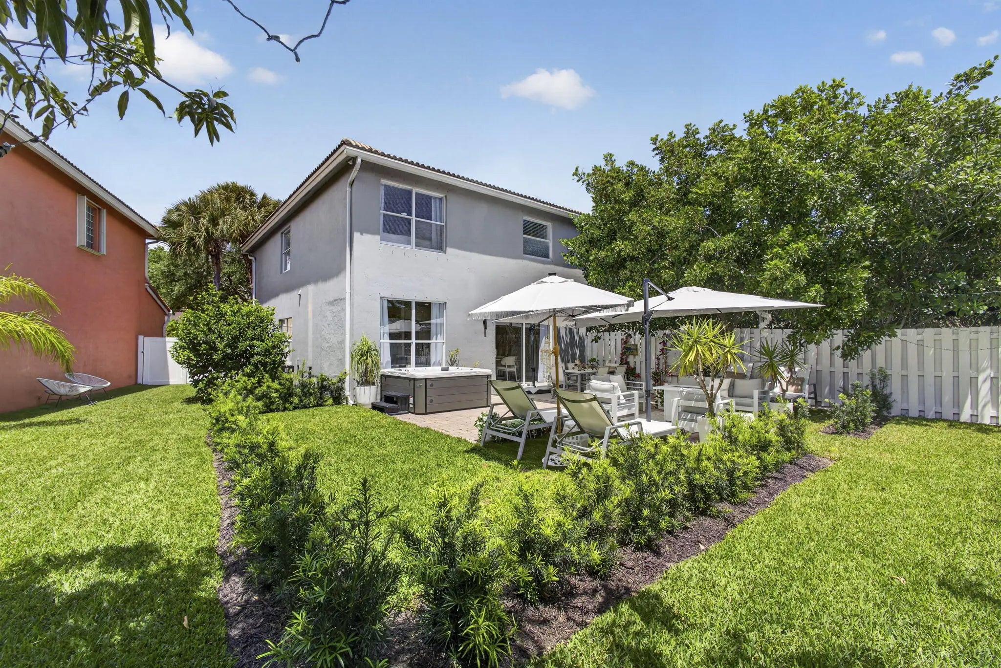 Enjoy indoor-outdoor living in this beautifully updated home in Lakes of Laguna, set on one of the largest lots with room for a pool. The fully fenced backyard features a mature mango tree, extended brick paver patio, and a brand new 5-person hot tub, perfect for relaxing or entertaining. Inside, a modern white kitchen with sleek cabinetry and quartz countertops is complemented by luxury vinyl plank flooring throughout. Bathrooms, lighting, and fixtures are tastefully updated. Improvements include a new A/C, Water Heater, Kitchen Appliances, Vinyl fencing, Irrigation system, Fresh Sod, Landscaping and added Garage Storage. Furniture negotiable. Gated community with 2 pools, tennis, pickleball, and more, minutes to shopping, dining, beaches, and PBI Airport.