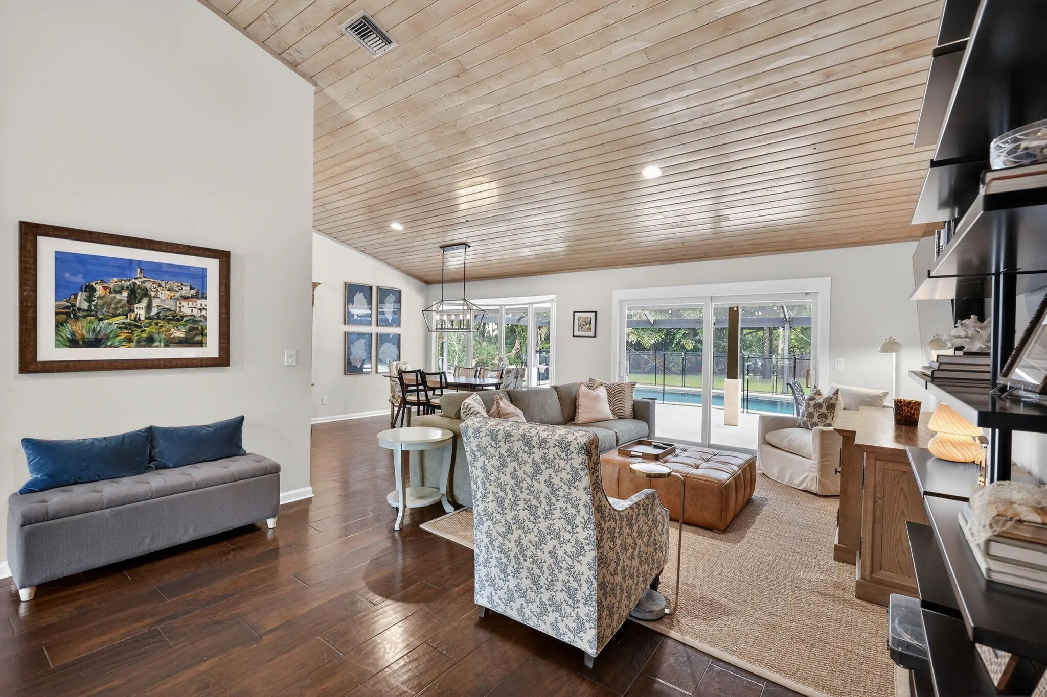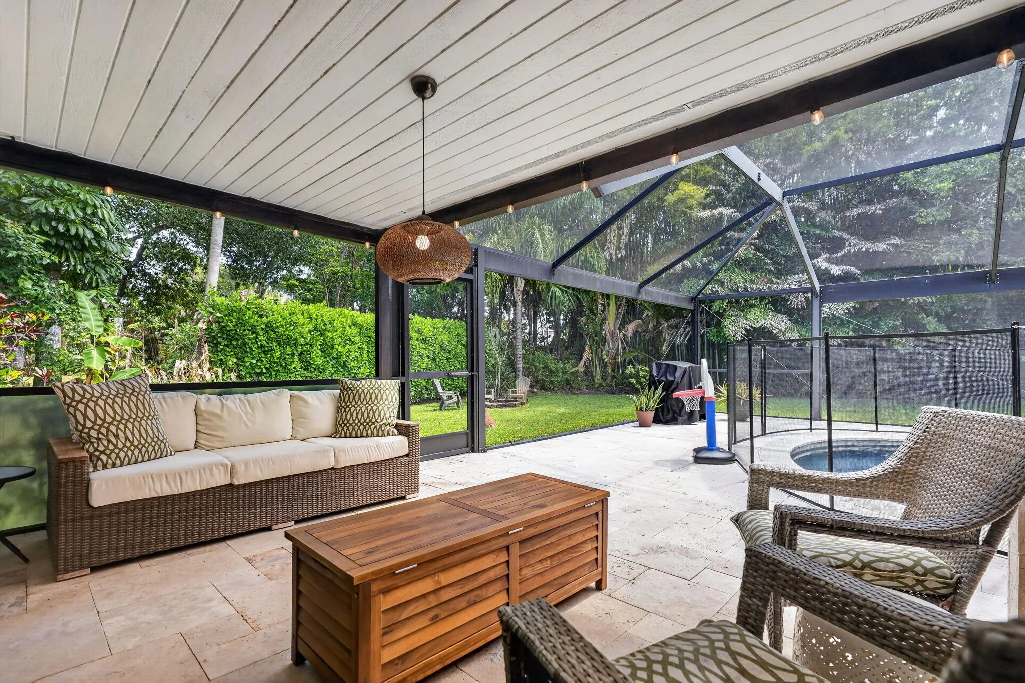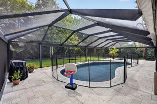 Amazing custom home nestled on a beautiful, private 1/2 acre lot with lush tropical landscaping. Fantastic outdoor patio area featuring a renovated pool, salt system, large screen enclosure with clear view panels, and travertine decking. Other features include 2022 roof, impact windows, 2023 garage door, and exterior cedar-wood siding. Interior is accented with high vaulted ceilings, tongue & groove finishes, and wood flooring. Zoned in the A-rated Jupiter school district. This property is a must see!