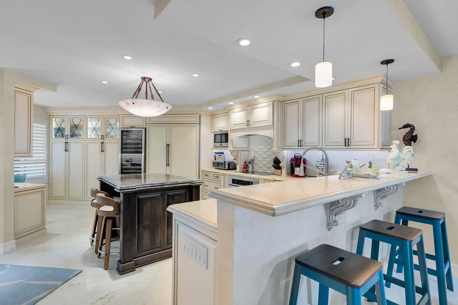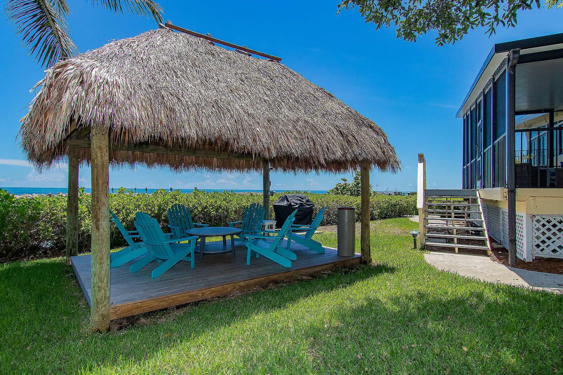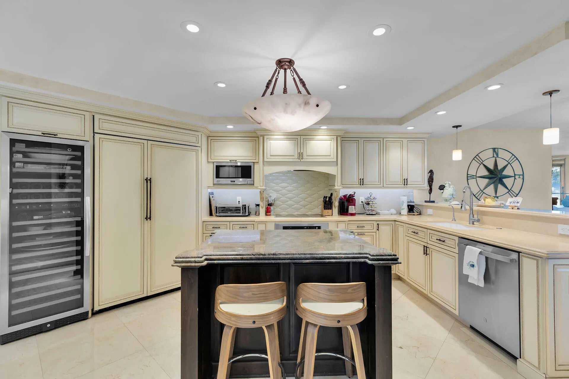 A New Standard of Paradise - Live with views of the Atlantic Ocean everyday. This home has been updated and beautified from top to bottom. Marble flooring throughout living areas. Eat in kitchen offers large island, snack counter and full size wine cooler. Dishwasher installed 12/25. There is also a hot water dispenser. Dining area and living area open to enclosed patio with private spiral staircase leading to resort styled amenities. Impact glass on all windows. Primary bedroom offers more spectacular views, built in furnishings and is 14x14. Modification in primary bathroom leads to large walk in closet. Washer replaced 2025, dryer 2024, AC 2021. Building inspections complete with no pending assessments. Private Marina dredged 2025. Outside storage cage included. RARE covered parking. Enjoy resort style pool, hot tub, tennis, pickleball, nature trails, gazebos, boat ramp, clubhouse with fitness, pavilion with ice machine, docks rentable for up to 30ft boat (almost always available), tiki huts, electric vehicle chargers, guest parking, open lot for boat storage, and private marina. Chandelier in dining area excluded. Beach area overlooks marina. Owner agent.