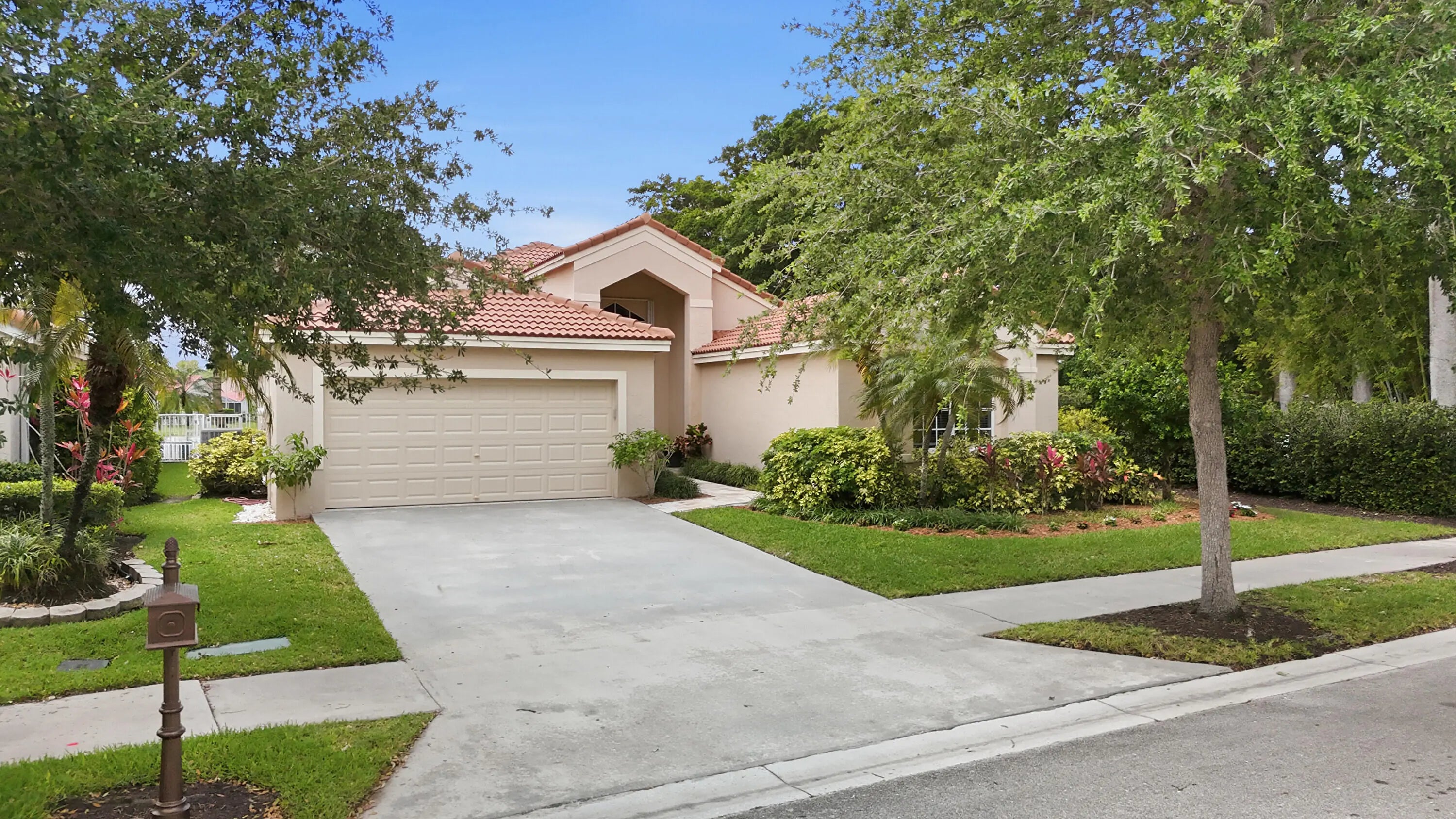 Desirable Bloomfield model with long, sparkling lake view and lush landscaping with neighbor on one side only*Roof new in 2017*Brand new entrance way tiles*Light-filled home with vaulted ceilings, neutral floors and paint throughout*beautifully remodeled kitchen*convenient split floor plan incl. large primary suite, also with vaulted ceiling*separate laundry room with window*highly-rated Weston schools*guard gated community yet with excellent access to highways, stores, houses of worship, parks and all Weston has to offer*see today!