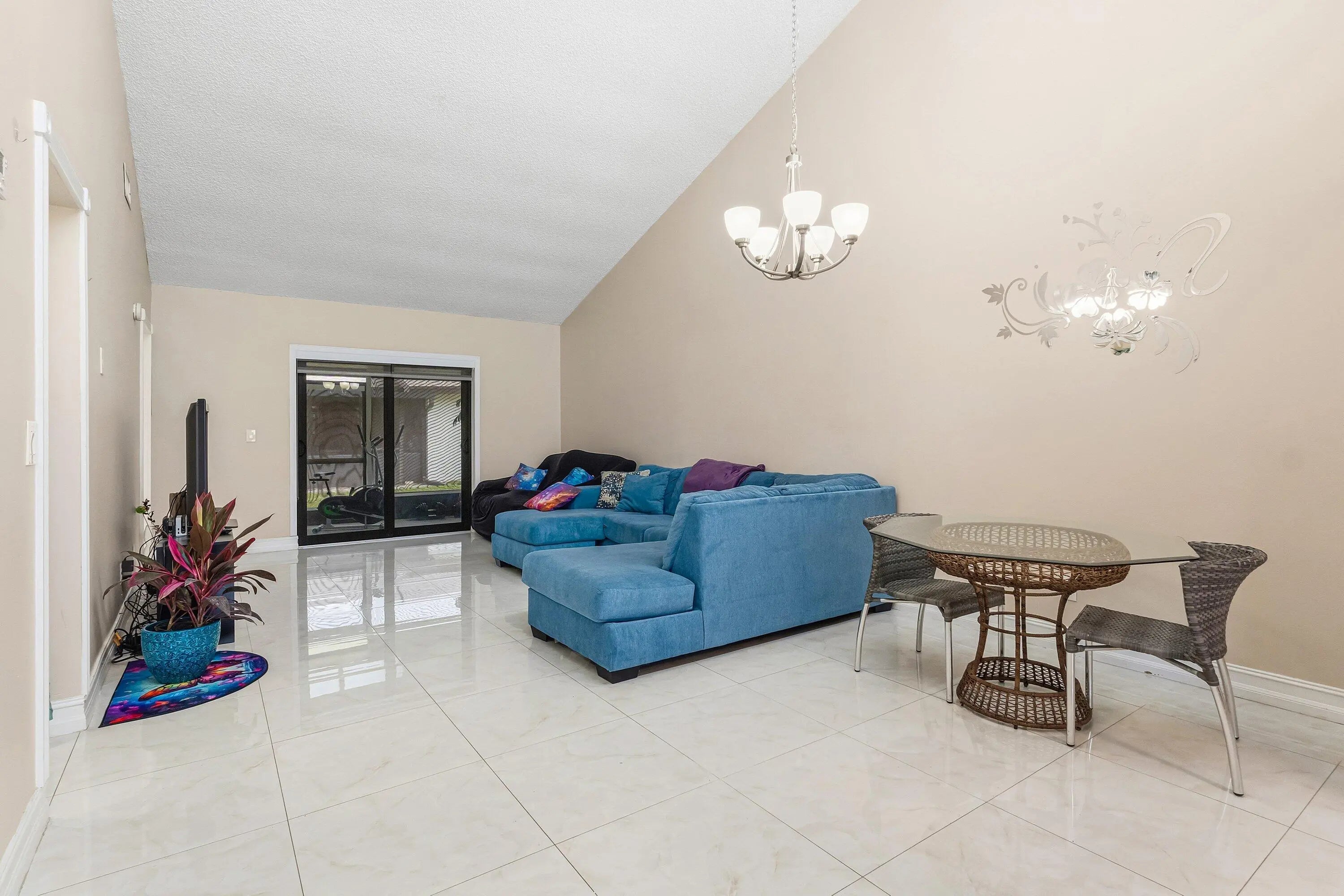 Beautiful move-in ready home with hurricane-impact windows and doors in a pet-friendly community with pool. Bright, open layout features vaulted ceilings, tile flooring, and abundant natural light. Upgraded kitchen includes granite countertops, dark cabinetry, and Calacatta marble tile, plus stainless steel appliances and washer/dryer included. Enjoy LED lighting, energy-efficient HVAC, and a whole-home water filtration system + water softener. Spacious primary suite offers walk-in closet, dual closets, and private bath with vanity. Bedrooms feature dimmable lighting for added comfort. Relax in a private screened patio, with additional storage in two sheds (new roofs). Newer roof adds value and peace of mind. Conveniently located near shopping, dining, major roads, and peace of mind. Conveniently located near shopping, dining, major roads, and everyday amenities.