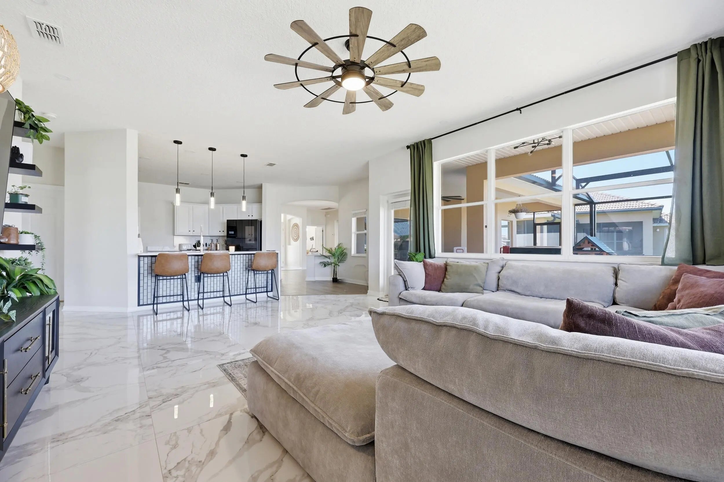 Welcome to luxury living on a private cul-de-sac in one of the area's most sought-after communities. This move-in ready home features numerous upgrades, including new roof, water heater, new lighting, ceiling fans, appliances (refrigerator, microwave, washer & dryer), and a renovated laundry room with custom cabinetry. A versatile flex room can serve as an office or additional bedroom. Enjoy outdoor living with a panoramic screened enclosure, new lanai, extended patio, and fenced yard. Smart home features include a doorbell camera, floodlight security, and upgraded garage system. HOA amenities offer resort-style living with clubhouses, pools, fitness centers, sports courts, waterfront dining, lake access, and a scenic 5-mile trail. Community also is home to a school, Bellalago Academy