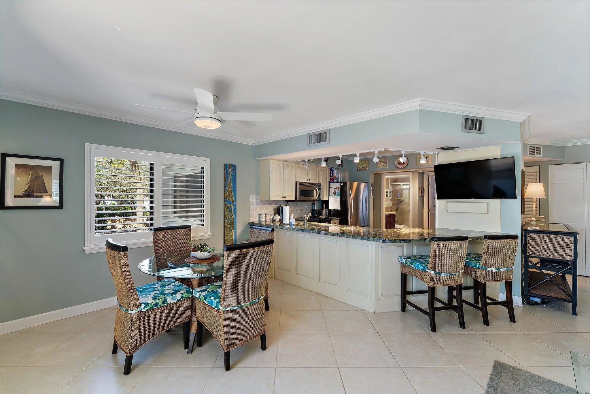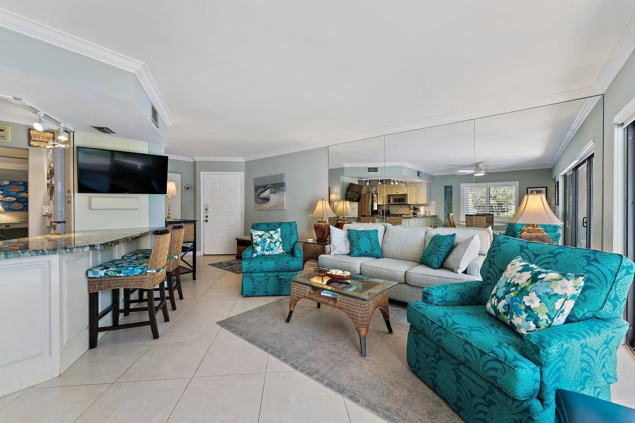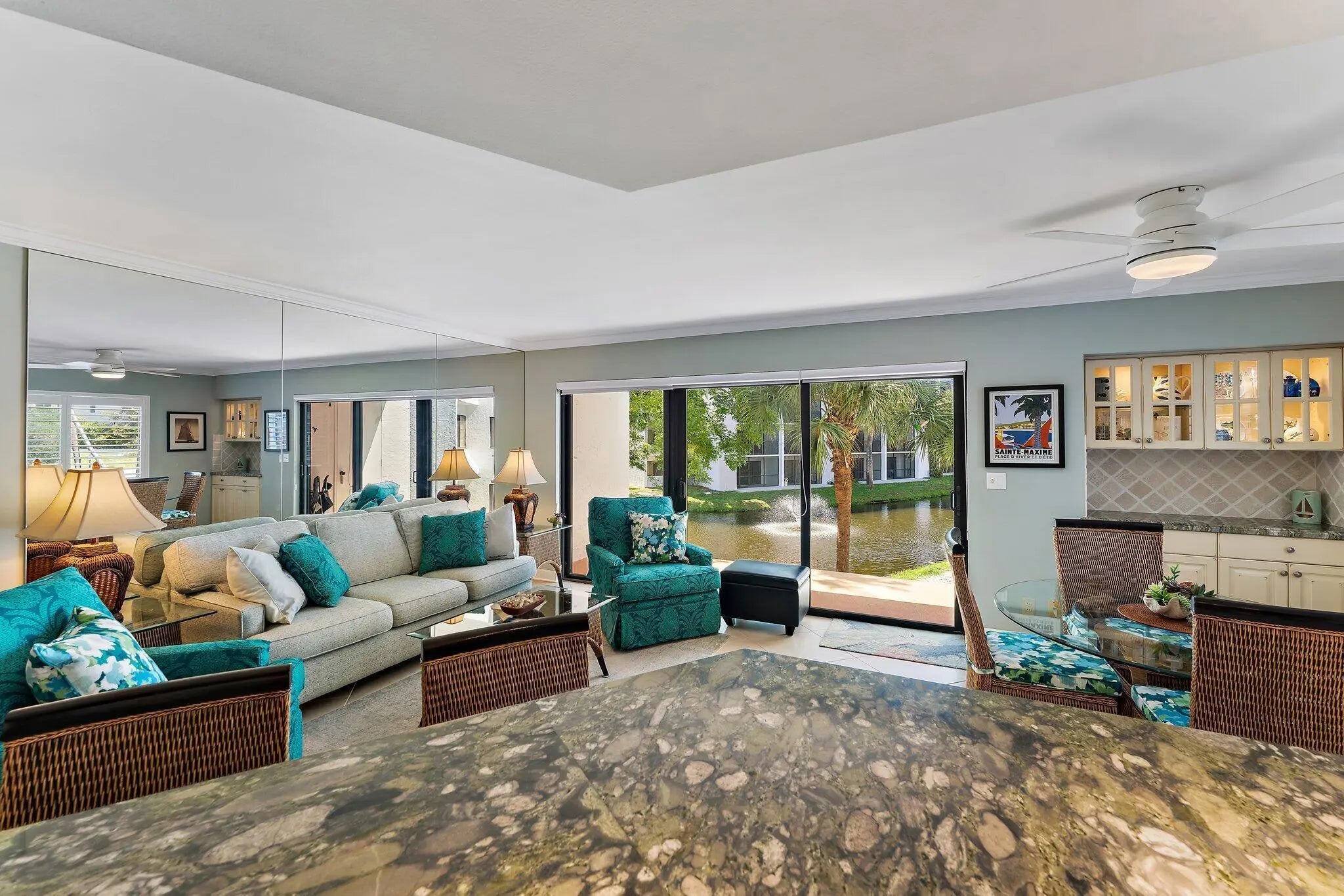 Available 1/1/27-4/30/27 - fully furnished & appointed 2nd floor end unit. Walking distance to Jupiter Beach & Riverwalk along the Intracoastal to shopping, restaurants. Comm Pool & Tennis Memberships available. IMMACULATE! King bed in Primary & ensuite. 2nd Bedrm has twin beds. Newer furniture throught. Smart TV's. Tile floors. Screened Balcony overlooking pond. 12.5% tax on rent; $300 Exit Clean Fee; $100 JLR Compliance Fee. Includes: Wifi, basic cable, $100/mo electric allowance; pest control.