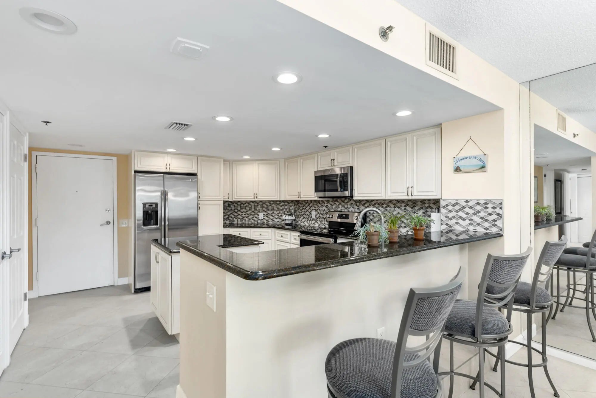 Available for SEASON. Northeast OCEAN views from the 9th floor at Aquanique Ocean Club. This beautiful condo is fully renovated and furnished with everything you need to enjoy your winter escape. The primary bedroom has a king bed, walk in closet and en-suite bathroom with large step-in shower. The guest bedroom has a queen bed. The large 184 s/f balcony can be accessed from the living room and both bedrooms. Includes GARAGE parking. Aquanique Ocean Club offers private beach access and resort style amenities. Minimum 3 month rental. Tourist tax applies.