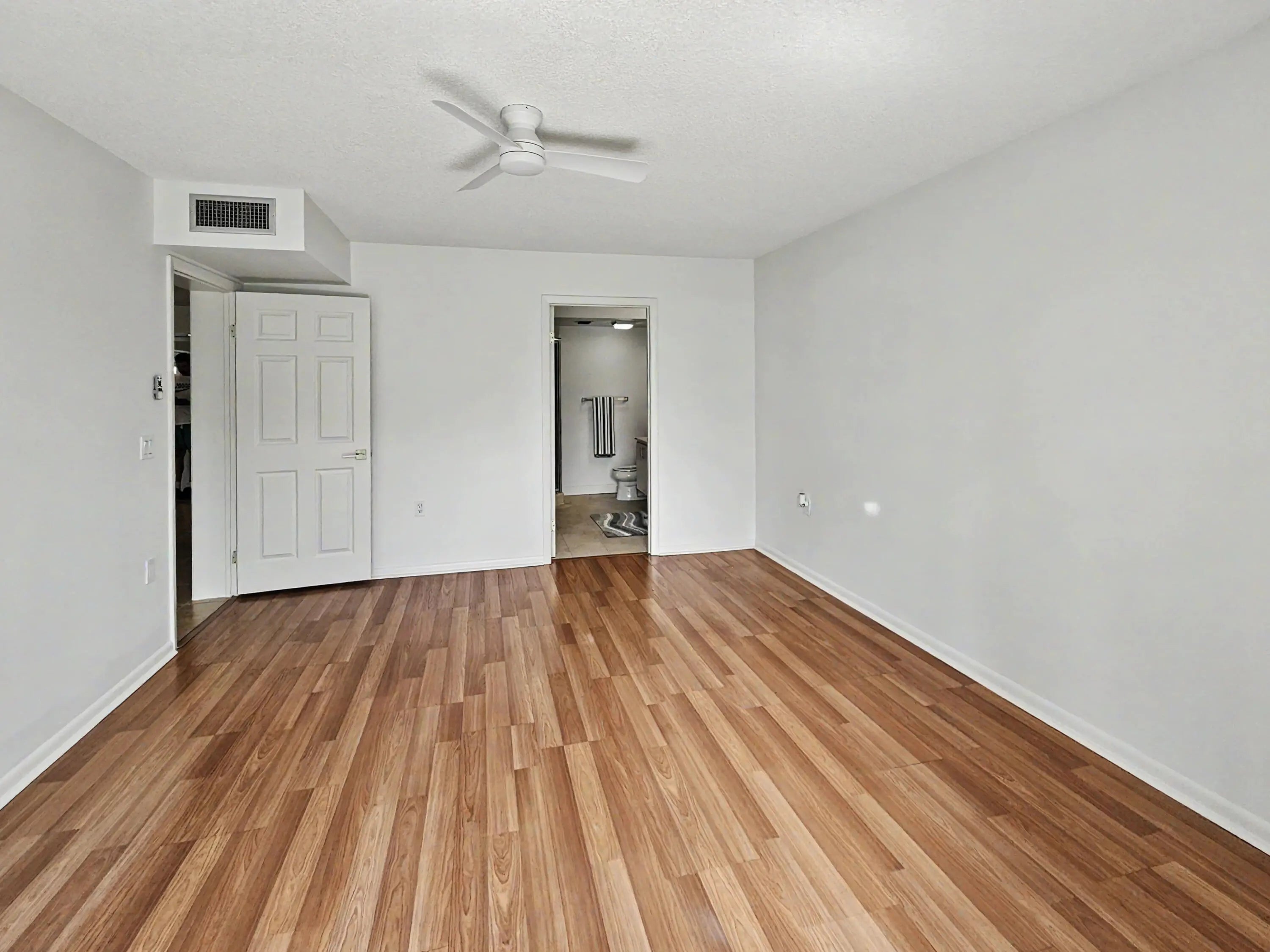 Welcome to your first floor, ground level condo nestled within the vibrant Villages of Palm Beach Lakes community. This spacious 2-bedroom, 2-bath condo offers the perfect blend of comfort and convenience. Step inside to discover a bright, open floor plan seamlessly connecting the dining room, kitchen, and living room. The well-appointed kitchen boasts ample cabinet space and a pantry for additional storage. The living room invites you to relax and unwind. Slide open the patio doors to walk directly into the Florida sun and enjoy your quiet, outdoor space. A large laundry room, complete with a washer and dryer, offers additional space perfect for a home office or extra storage. Across the hall from the kitchen, you'll find a spacious guest room and a full bathroom featuring a shower/tub combo. Indulge in your private retreat within the oversized master bedroom, complete with a walk-in closet, substantial vanity, and a walk-in shower. The master bedroom also offers a private patio. As a tenant of this Whitehall condo, you'll enjoy numerous amenities including 4 heated saltwater pools, a fitness center, clubhouse, reading/game room, stocked fishing pond, and even a convenient location to wash your vehicle. Centrally located, this property is only a short drive to Tanger Outlets (2.7 miles), world renowned Palm Beach and Worth Avenue (6 miles), Palm Beach International Airport (6.7 miles), Ballpark of the Palm Beaches (3.4 miles), trendy SoSo District (5.3 miles), Downtown West Palm Beach & Cityplace (4.6 miles), Brightline Train Station (4.9 miles), Belgrove Hotel and the Dutchman's Golf Pipe Golf Club (4.1 miles) and so much more! Residents have the added benefit of access to three parks featuring saltwater pools, playgrounds, exercise trails, general-purpose fields, as well as facilities for bocce ball, racquetball, tennis, and pickleball. This entire condo has been freshly painted and updated with new fixtures, flooring, and more. It's meticulously clean and comfortable for the new tenant.