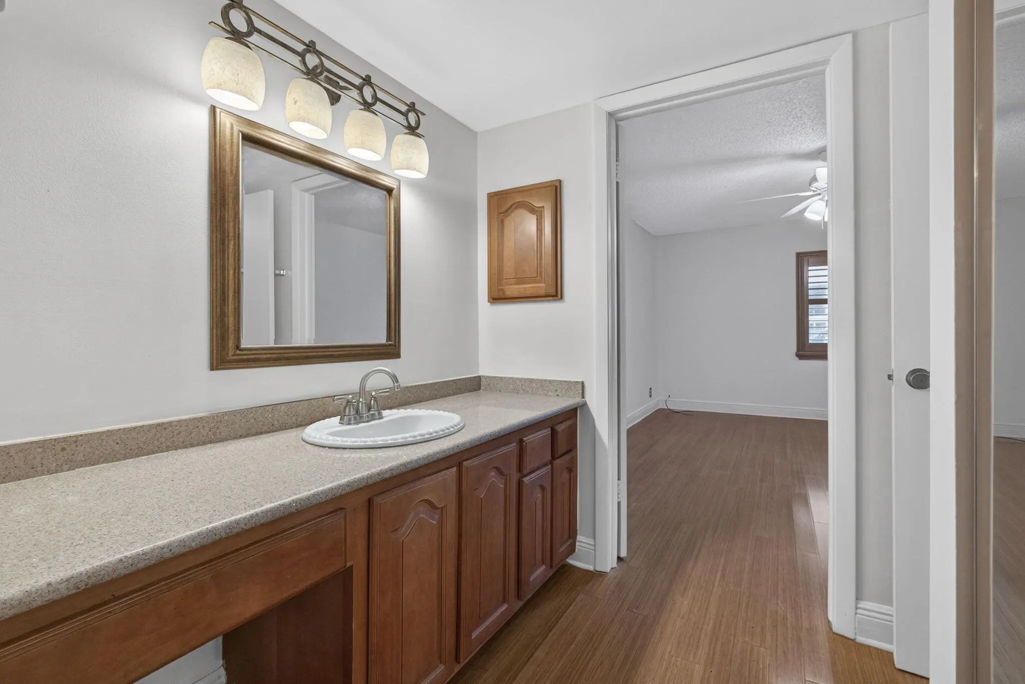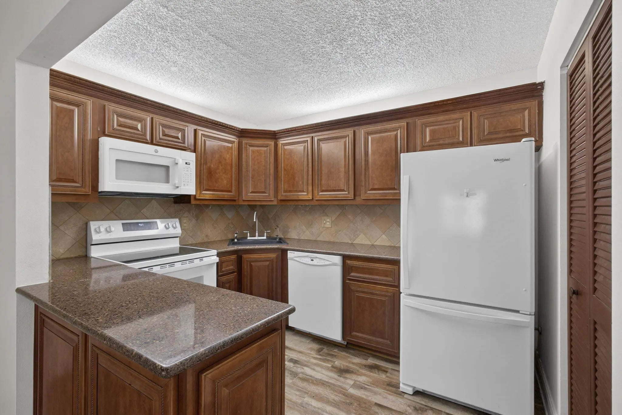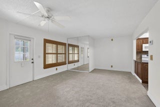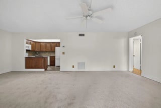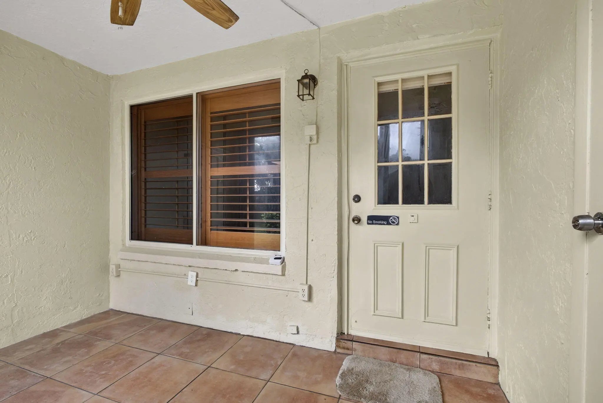 Welcome to Pine Ridge III, a vibrant 55+ no-pet community. Residents enjoy a clubhouse, sparkling pool, shuffleboard, bocce, and pickleball courts, with a scenic lake, complete with a walking trail. This updated 2-bed 1-bath first-floor corner unit offering comfort, style, and convenience. This move-in ready condo features a 2018 A/C system, updated kitchen cabinets and countertops, Whirlpool dishwasher, and garbage disposal. Interior upgrades include updated flooring throughout and fresh paint in every room. The remodeled bathroom showcases an updated vanity, toilet, and a tiled walk-in shower with elegant glass door and floor-to-ceiling tile finishes. Enjoy the charm of Bahama shutters. Ideal first-floor location with corner-unit privacy and easy access.