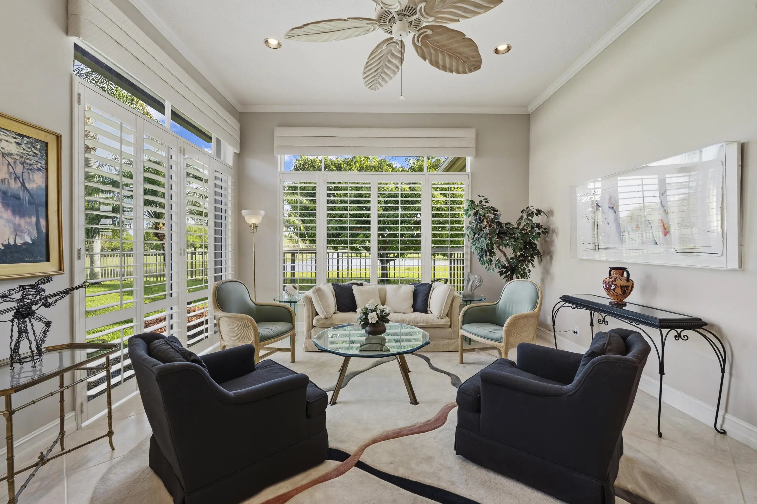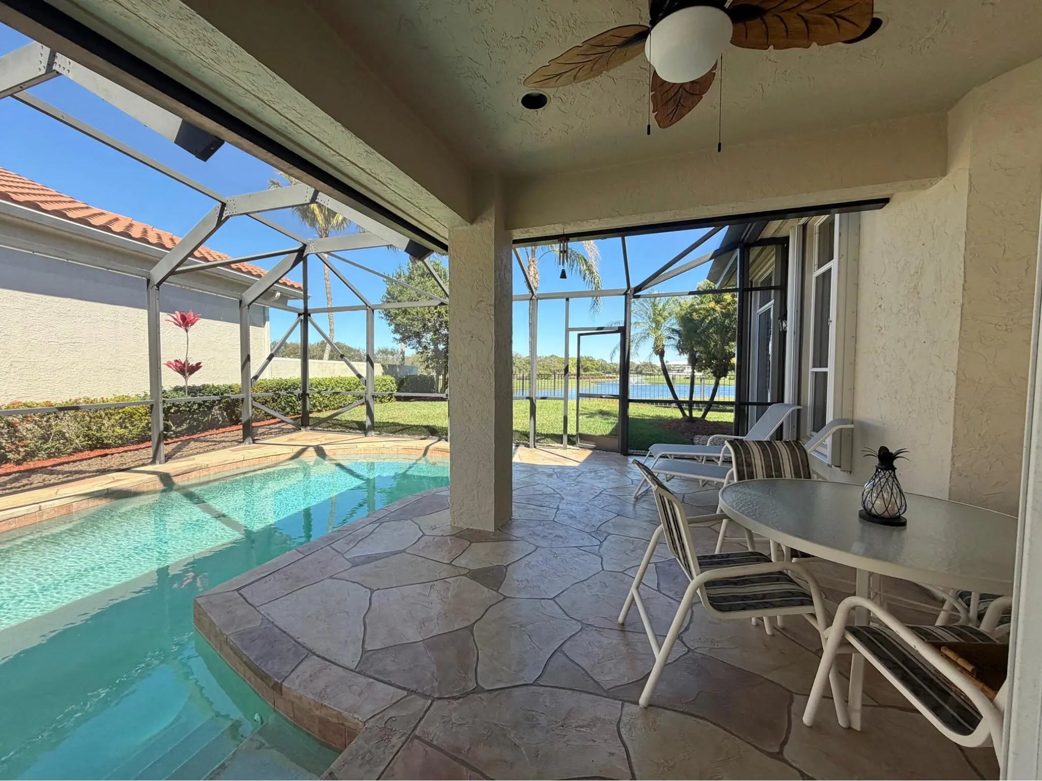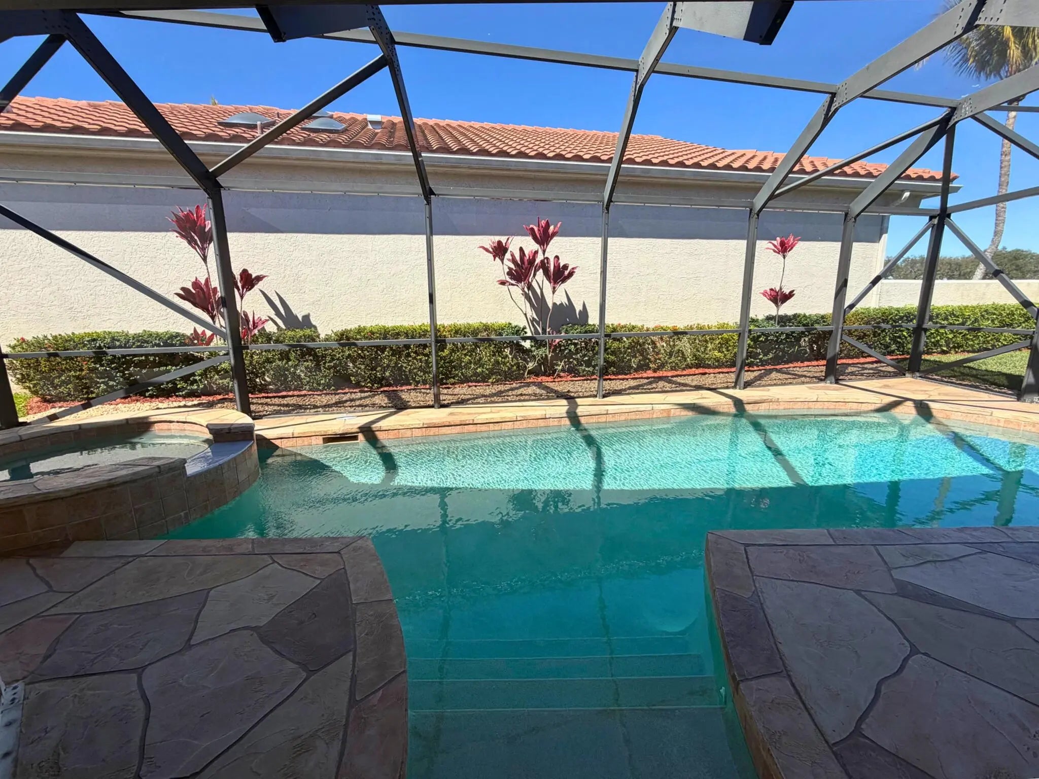 Rare opportunity to own a single-story Pool Home with peaceful water and golf course views, tucked within a small gated enclave of just 39 homes in West Palm Beach. Enjoy effortless entertaining and a year-round Florida lifestyle with a screened, spacious covered patio, sparkling pool and heated spa, open paved patio deck, and a fully-fenced backyard - directly overlooking the 11th hole of Bear Lakes Country Club and beautiful lakes with fountains. This residence offers nearly 2,000 square feet of open-concept living space, with soaring ceilings and a split floor plan for extra privacy. Featuring 3 bedrooms, 2 full-bathrooms, 1 powder-bath (cabana bath), a 2-car garage, and 2,620 square feet total. The home has been impeccably cared for with major upgrades (Please see Supplement Remarks!) The home has been impeccably cared for with major upgrades including a new 4-ton AC system (2023), newly resurfaced pool deck and patio enclosure (2021), and a concrete tile roof (2013). (full list of improvements under documents tab) Wood floors in all bedrooms, and contemporary coastal plantation shutters throughout. Ideally located in the heart of West Palm Beach, gated Regents Place offers convenient access to the Palm Beach Outlets, Whole Foods, Downtown West Palm Beach, Palm Beach Island Beaches, the Palm Beach International Airport, I-95 and the Brightline train station. With its rare single-story layout, peaceful golf and water views, and exceptional indoor-outdoor living, this home presents a wonderful opportunity to enjoy the best of south-Florida living.