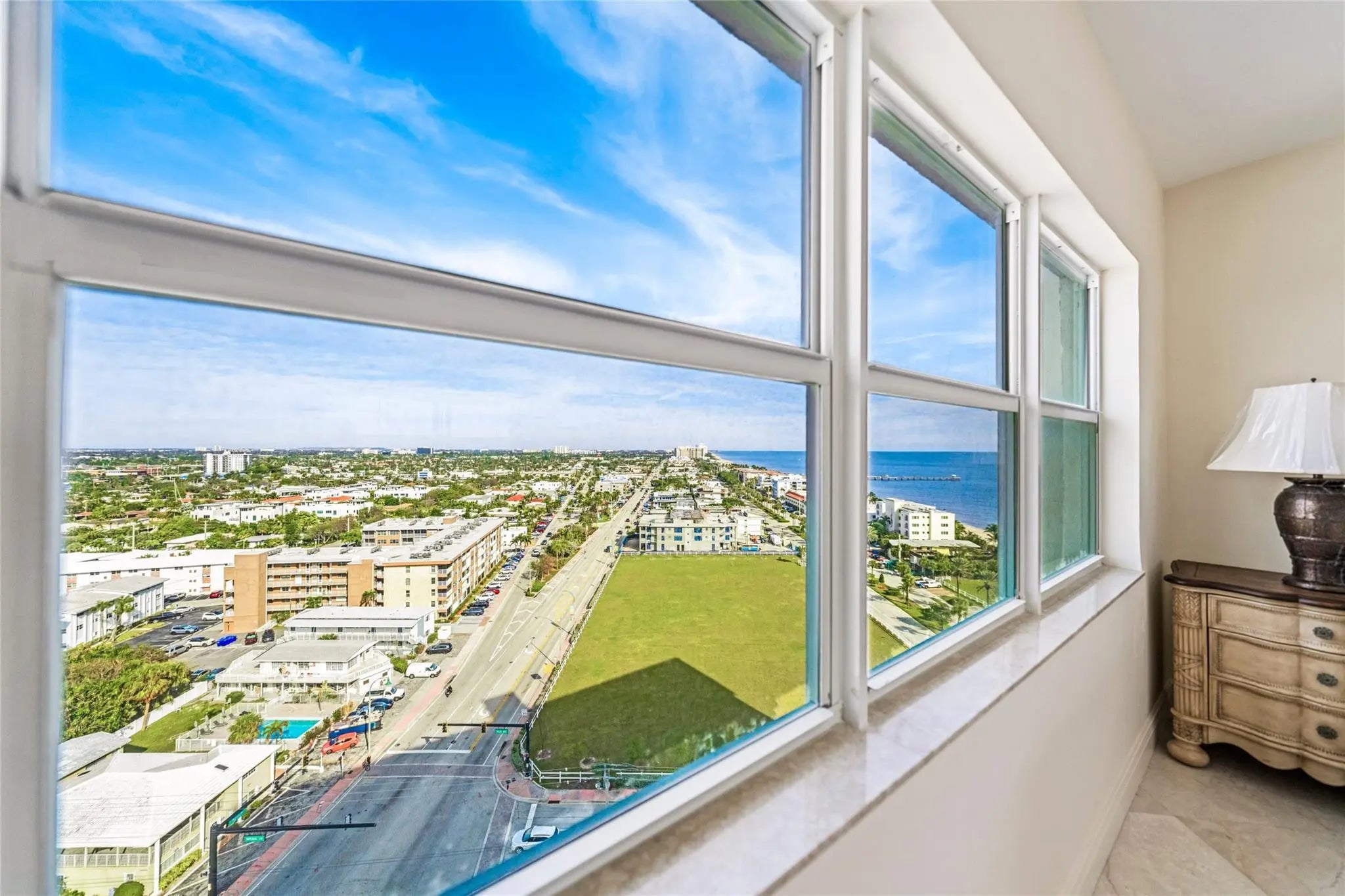 Enjoy this renovated corner unit at Caribe, Inc, and experience opulent seaside living and breathtaking vistas of the ocean, intracoastal, and downtown Fort Lauderdale. Revel in marble flooring, sleek granite counters, and modern stainless appliances, enhancing the sophisticated interior. Ideally situated near the bustling Commercial Pier in Lauderdale By The Sea, indulge in seaside dining and entertainment options. Direct beach access, savor leisurely strolls along the shore. Resort-style living with an oceanfront pool and sundeck, ideal for relaxation while soaking in the sun's rays and the mesmerizing ocean views. Caribe offers the perfect blend of elegance, convenience, and coastal lifestyle, making it an unparalleled opportunity to embrace Lauderdale By The Sea's vibrant ambiance.