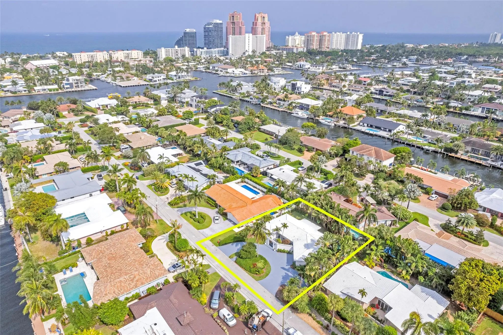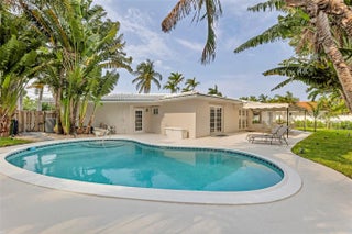 Picture Perfect Coral Ridge Pool Home on beautiful waterfront street east of Bayview Drive! Meticulously maintained, this home features a bright interior w/ windows & doors opening up to the private back yard, pool, and courtyard, bringing the inside & outside spaces together seamlessly. Wood floors, thoughtfully designed kitchen, elegant bathrooms & huge utility room highlight the living area. Private fenced in backyard with covered patio, full size 2-car garage & private walled and gated courtyard accentuate the fascade. Only minutes to the beach, Las Olas, downtown, top rated private and public schools (including Bayview Elementary) and the finest shopping & dining in the city. Easy to show! Please submit all offers on “as-is” contracts with POF, PRE APPROVAL Letter or DU. Call lIsting agent to show.