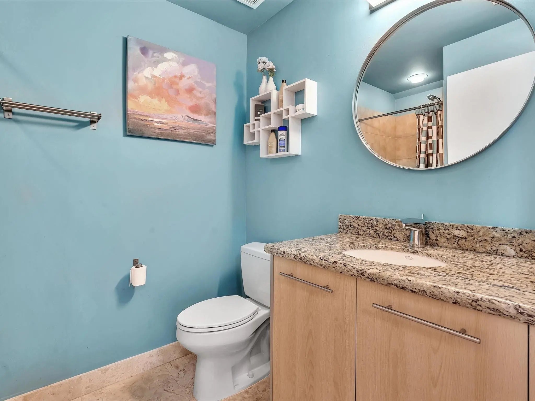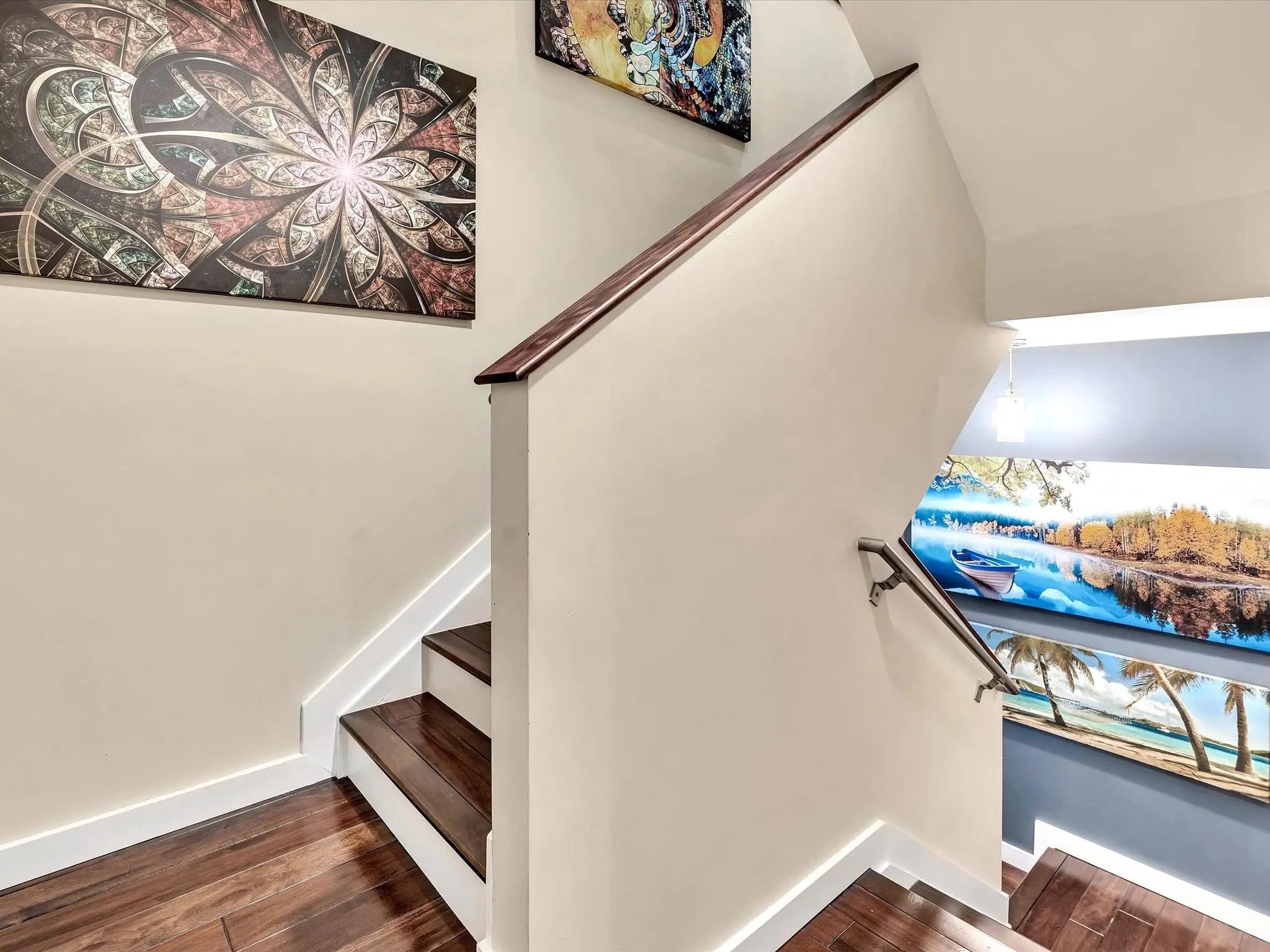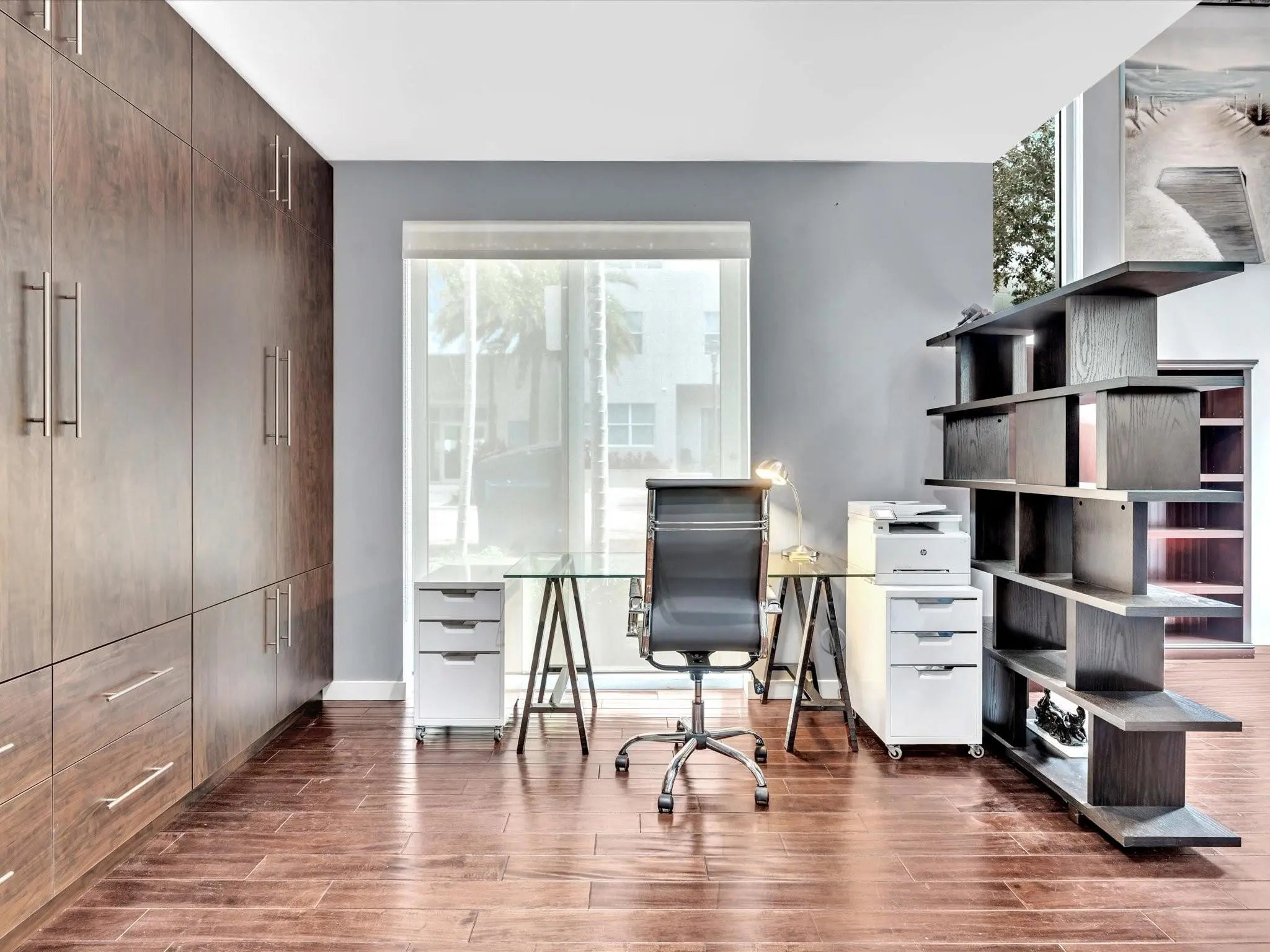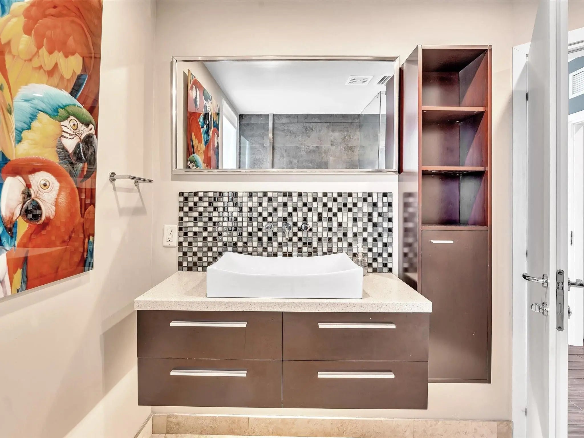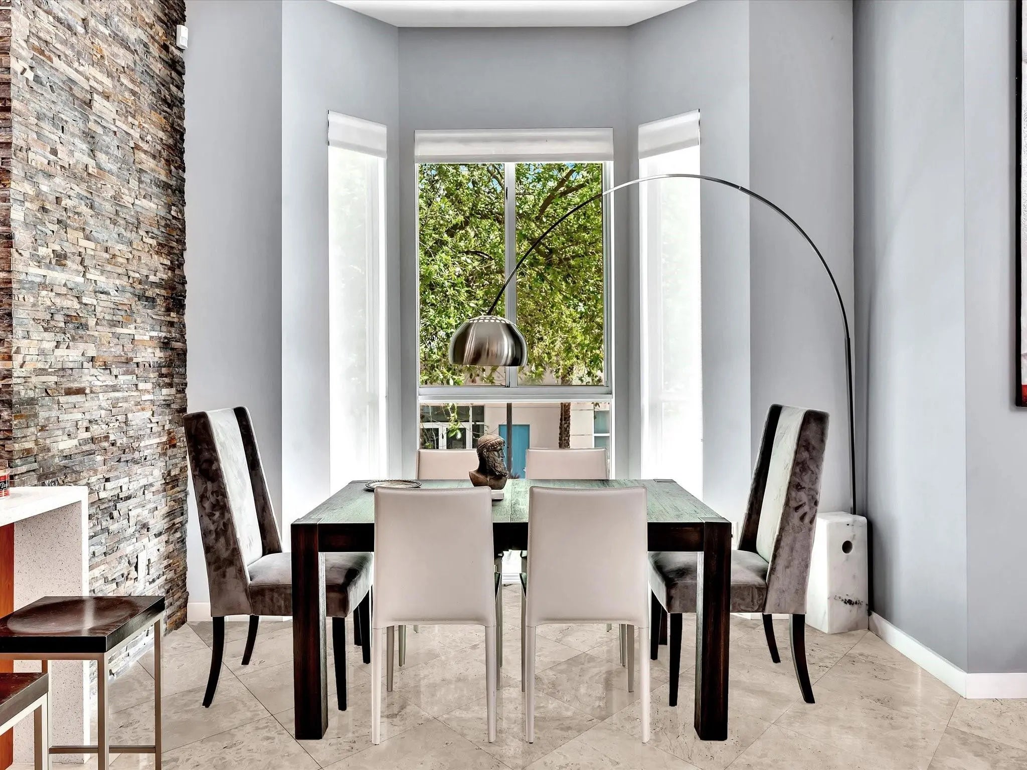 Elegant 4-story, fully furnished townhome with 50 paintings. Bamboo Flats community in the vibrant Flagler Village, downtown FTL. This property features 3 bedrooms, one could be used as office space on the ground floor, 3 full bathrooms, and a half bath, all designed with a modern aesthetic. The home boasts open, spacious living areas with 9 to 11-foot ceilings, large windows, and abundant natural light, complemented by custom-built cabinetry. The layout includes a 2-car garage and an office/den on the 1st floor, a kitchen and living area, plus one bedroom on the 2nd floor, and the master bedroom with ensuite bathroom, walk-in closet, terrace, washer/dryer (3rd floor). A large rooftop terrace (4th floor). Secure, gated community with lush tropical gardens and a beautiful pool area. Fully Furnished with 50 paintings