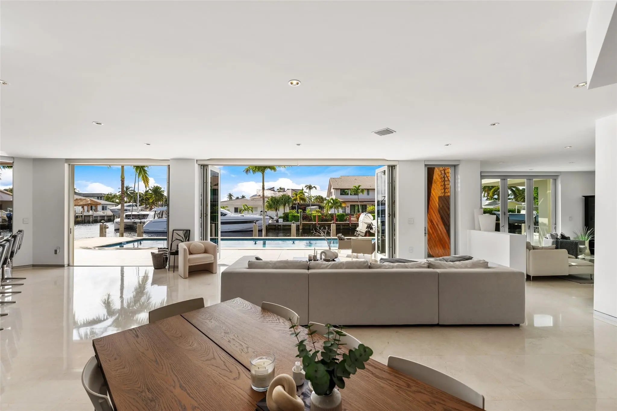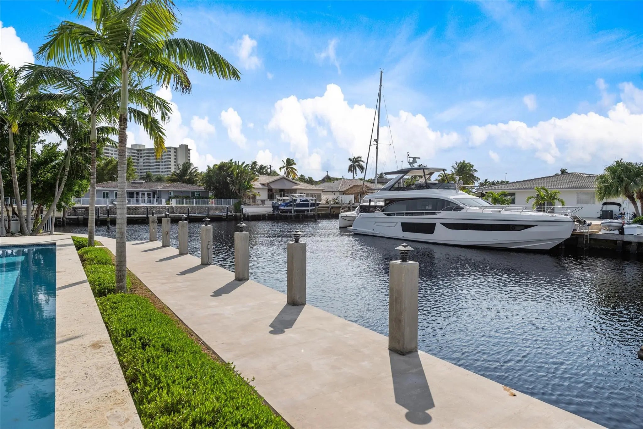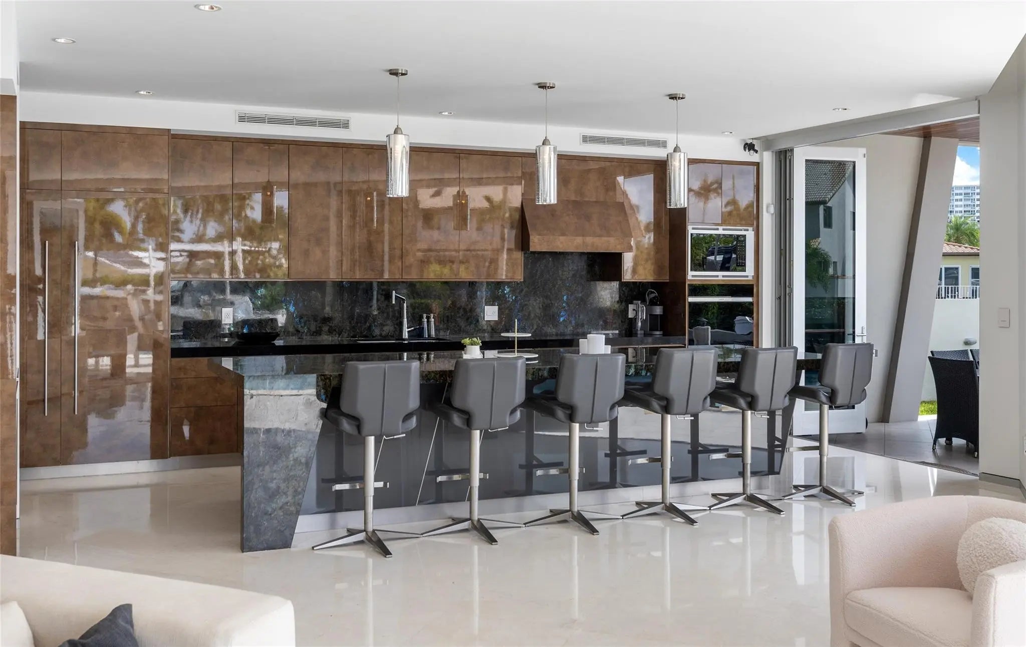 HIGHTLIGHTS: DIRECT INTRACOASTAL VIEWS FROM SEVERAL ROOMS & EXTERIOR | SOLID CONCRETE CONSTRUCTION | IMPACT GLASS | 48K GENERATOR | ELEVATOR TO ALL 3-LEVELS | 50± FT HEATED POOL | SHORT WALK TO THE BEACH. YACHTSMEN: 135± DEEPWATER FRONTAGE | FITS 80-90± FT YACHT AT CANAL TURN|BOAT LIFT. LIVING AREAS: FLOOR-TO-CEILING ACCORDIAN STYLE IMPACT GLASS DOORS | MARBLE FLOORS | INTRACOASTAL VIEWS | CABANA BATH. KITCHEN: PANTRY STORAGE | 14± FT ISLAND TOP WITH IRIDESCENT LEMURIAN BLUE GRANITE | OPENS TO COVERED OUTDOOR DINING & PATIO. PRIMARY BEDROOM SUITE: 2ND LEVEL HAS DIRECT INTRACOASTAL VIEWS | LARGE COVERED TERRACE | UPPER LIVING & SITTING AREA. 2ND LEVEL: 3 BEDROOM SUITES | LIVING MEDIA AREA | PRIMARY BEDROOM | PORCELANOSA TILED DESIGNER BATHROOMS. 3RD LEVEL: CONCRETE ROOF|COMPOSITE DECK
