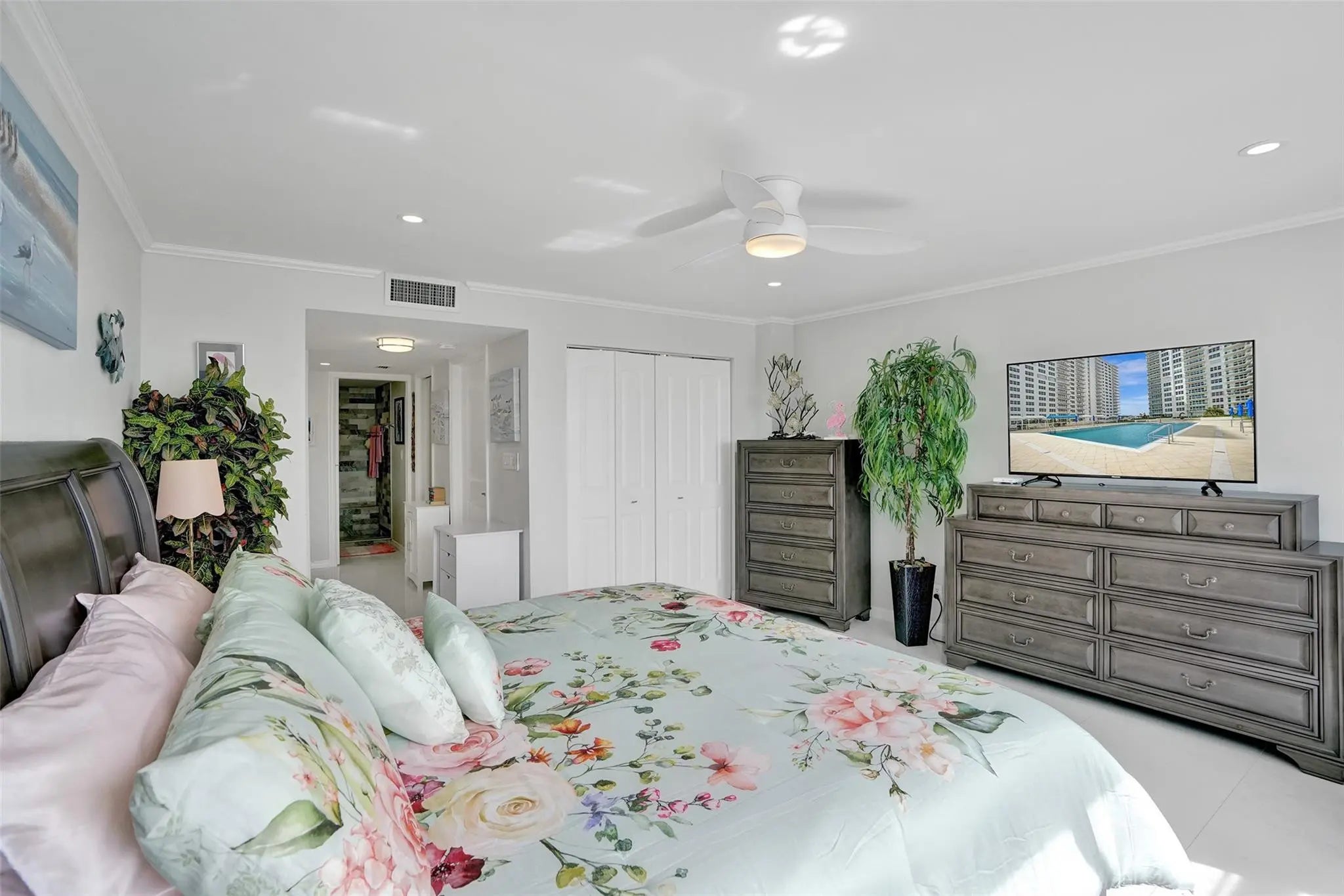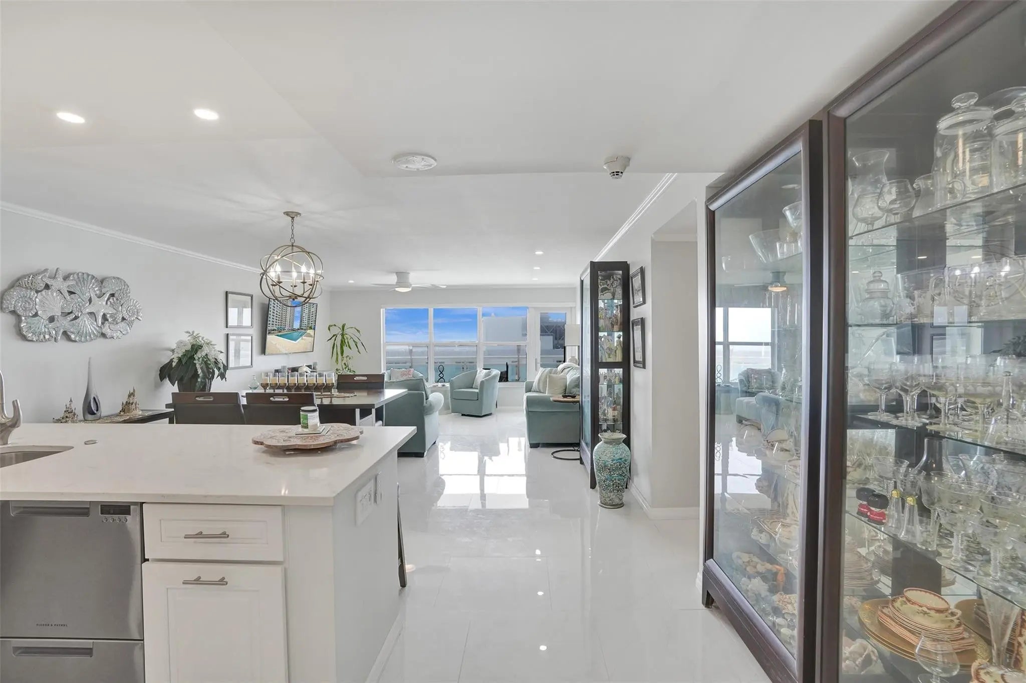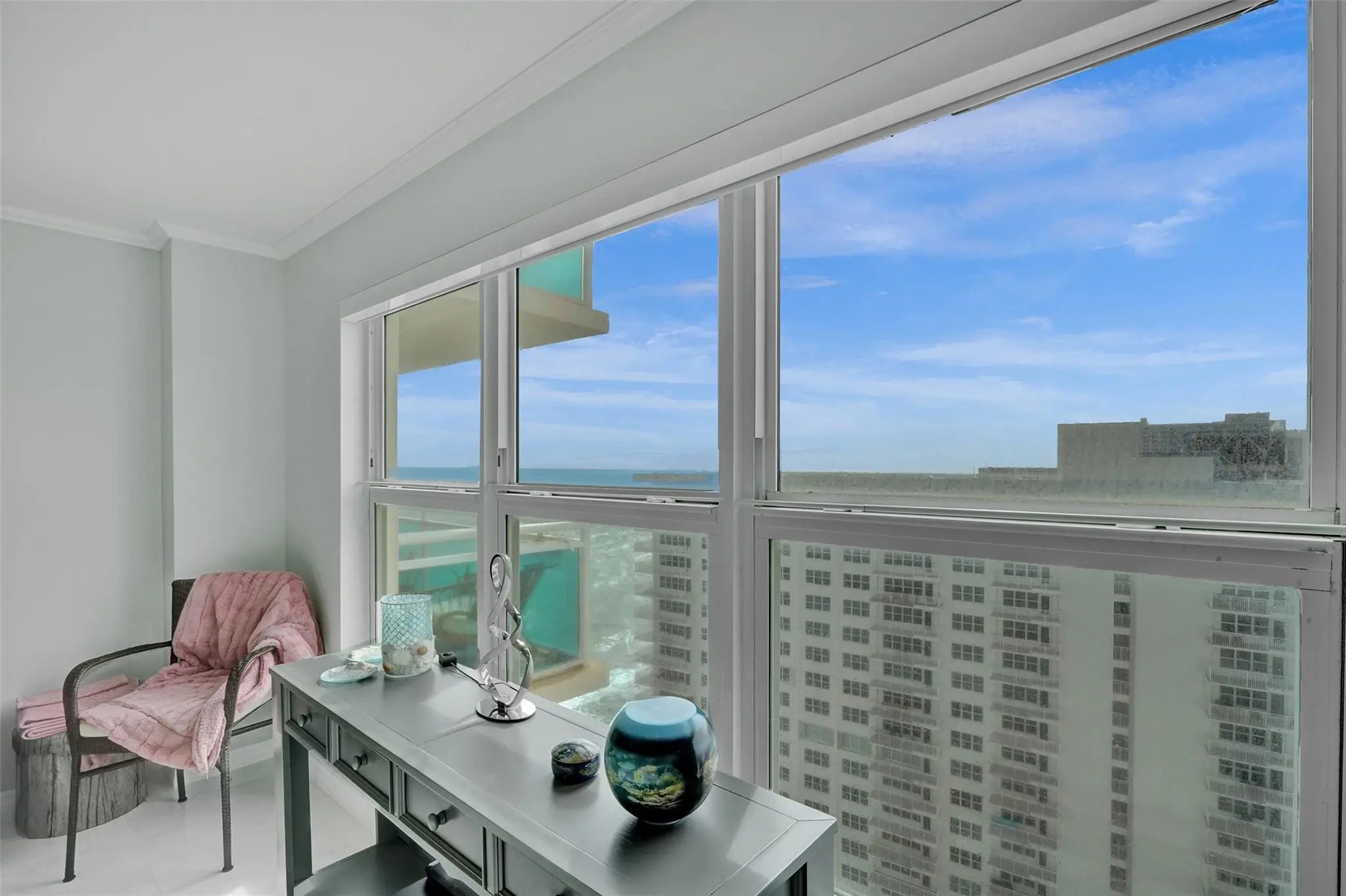 INCREDIBLE SOUTH VIEWS OF OCEAN, INTRACOASTAL, CITY AND POOL AREA FROM THIS TOTALLY RENOVATED 1 BEDROOM, 1.5 BATH UNIT WITH SPACIOUS OPEN FLOOR PLAN. CERAMIC TILE FLOOR THOUGHOUT, NICELY DESIGNED KITCHEN WITH STAINLESS STEEL APPLIANCES, CROWN MOLDING, IMPACT WINDOWS AND DOOR, ELECTRIC BLINDS, RECESSEED LIGHTING THROUGHOUT, PLENTY OF CLOSET SPACE, LARGE PRIMARY BEDROOM WITH ALL CUSTOM CABINETRY, 3 CLOSETS INCLUDING WALK IN CLOSET, WASHER AND DRYER IN UNIT, SECURED LOBBY, GARAGE PARKING, 2 PETS WELCOME UP TO 20LBS. BEAUTIFUL, SPACIOUS POOL AREA WITH BEACH ACCESS, 3 GYMS, CARD ROOM, BILLIARD ROOM, MOVIE ROOM, AND OTHER AMENITIES. EXTRA STORAGE SPACE AND BIKE STORAGE. STEPS FROM MANY RESTAURANTS, GROCERY STORE AND SHOPPING.