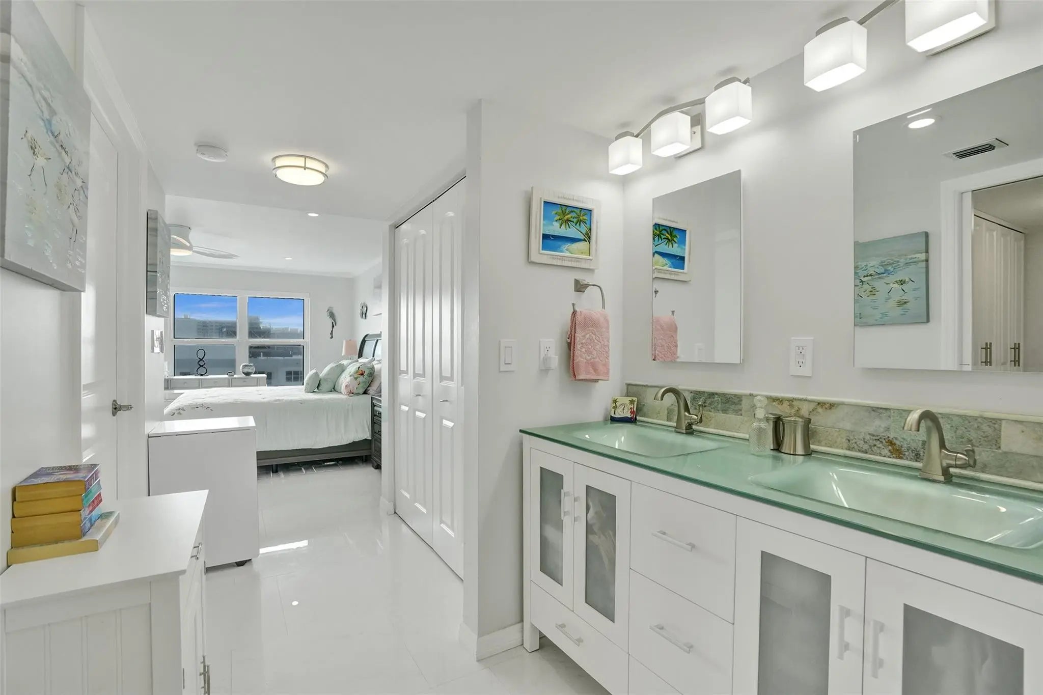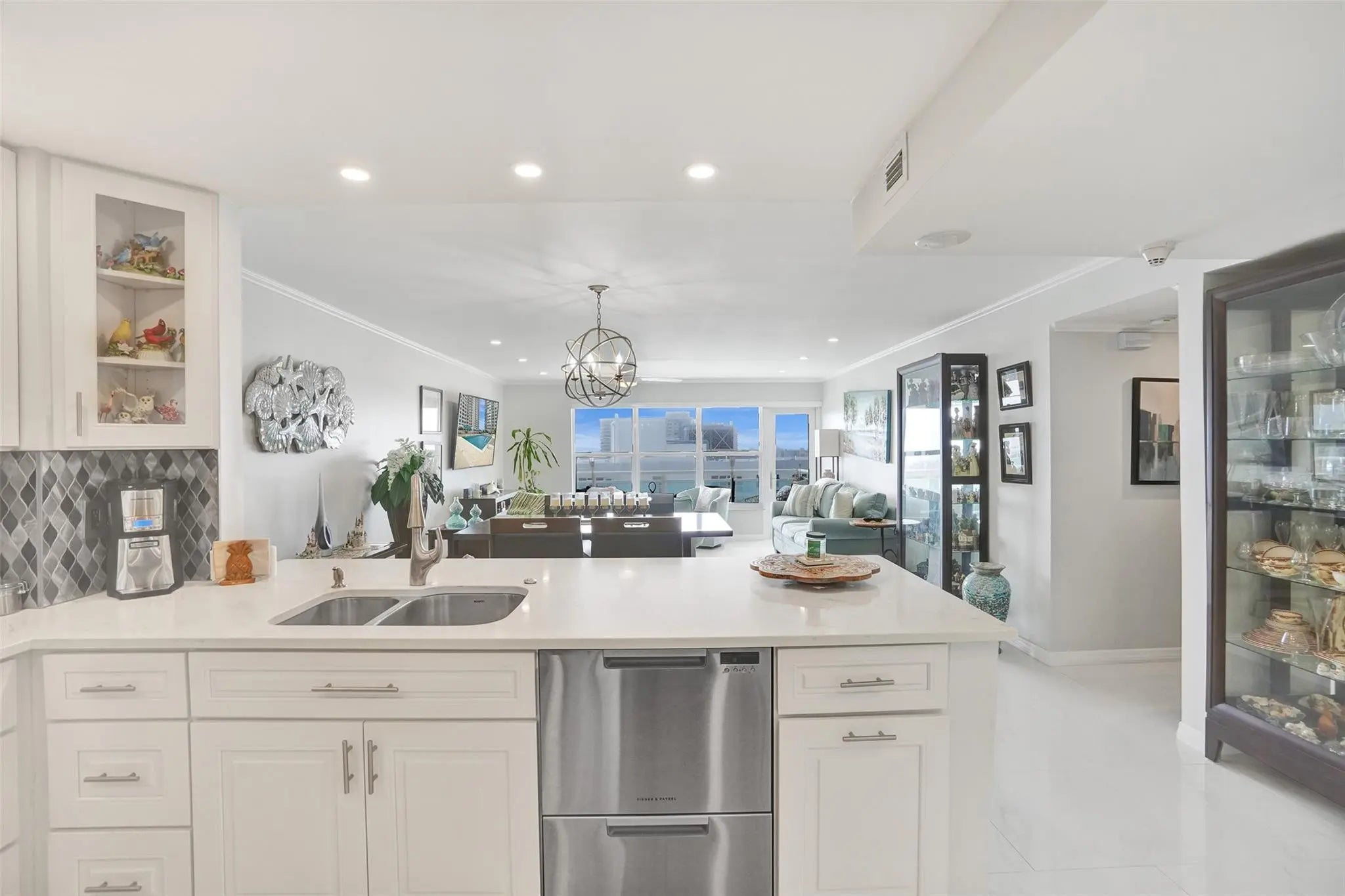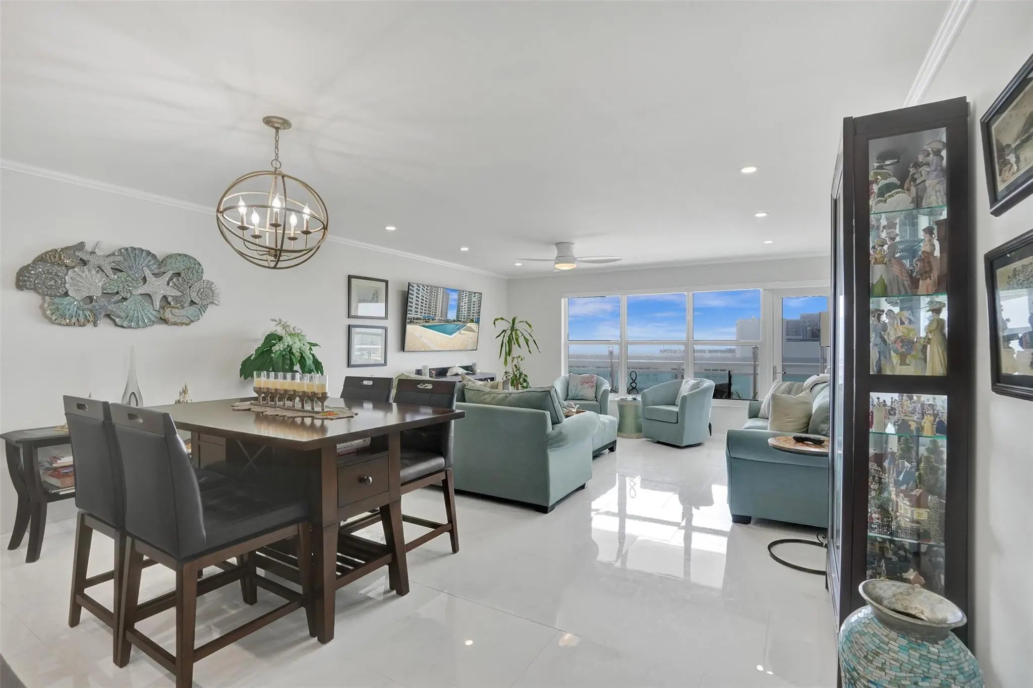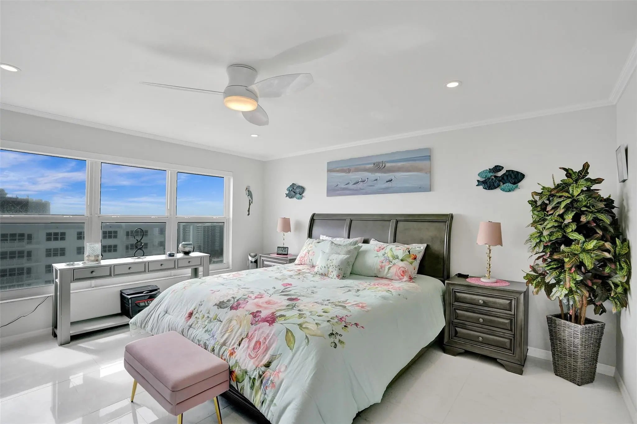 INCREDIBLE SOUTH VIEWS OF OCEAN, INTRACOASTAL, CITY AND POOL AREA FROM THIS TOTALLY RENOVATED 1 BEDROOM, 1.5 BATH UNIT WITH SPACIOUS OPEN FLOOR PLAN. CERAMIC TILE FLOOR THOUGHOUT, NICELY DESIGNED KITCHEN WITH STAINLESS STEEL APPLIANCES, CROWN MOLDING, IMPACT WINDOWS AND DOOR, ELECTRIC BLINDS, RECESSEED LIGHTING THROUGHOUT, PLENTY OF CLOSET SPACE, LARGE PRIMARY BEDROOM WITH ALL CUSTOM CABINETRY, 3 CLOSETS INCLUDING WALK IN CLOSET, WASHER AND DRYER IN UNIT, SECURED LOBBY, GARAGE PARKING, 2 PETS WELCOME UP TO 20LBS. BEAUTIFUL, SPACIOUS POOL AREA WITH BEACH ACCESS, 3 GYMS, CARD ROOM, BILLIARD ROOM, MOVIE ROOM, AND OTHER AMENITIES. EXTRA STORAGE SPACE AND BIKE STORAGE. STEPS FROM MANY RESTAURANTS, GROCERY STORE AND SHOPPING.