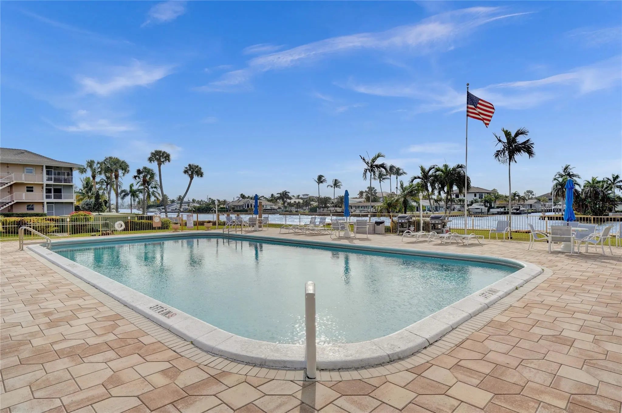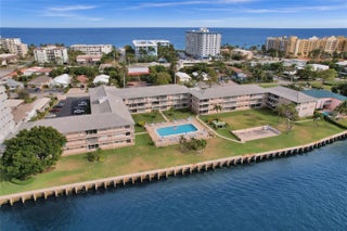 Prime Location! This charming, updated 2-bedroom, 2-bathroom condo is ideally situated on the Intracoastal, just steps from the beach. Located in a sought-after, all-ages community, this unit features hurricane impact windows throughout, including a unique triple-gliding front door. Enjoy the view and the coastal breeze from the comfort of your spacious screened-in porch. Upgrades include baseboards, crown moldings, flooring, and a recently serviced A/C system. The building features a brand-new roof, a heated pool, and the unit comes with an additional storage space. Current assessment already paid by the sellers. The building is well-maintained. 3-month minimum rental policy after 2 years of ownership. Close to fine dining, shopping, entertainment, and more! Florida Living at its finest.